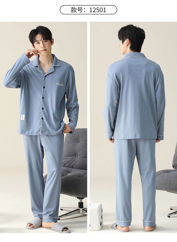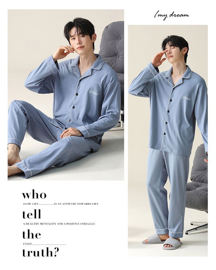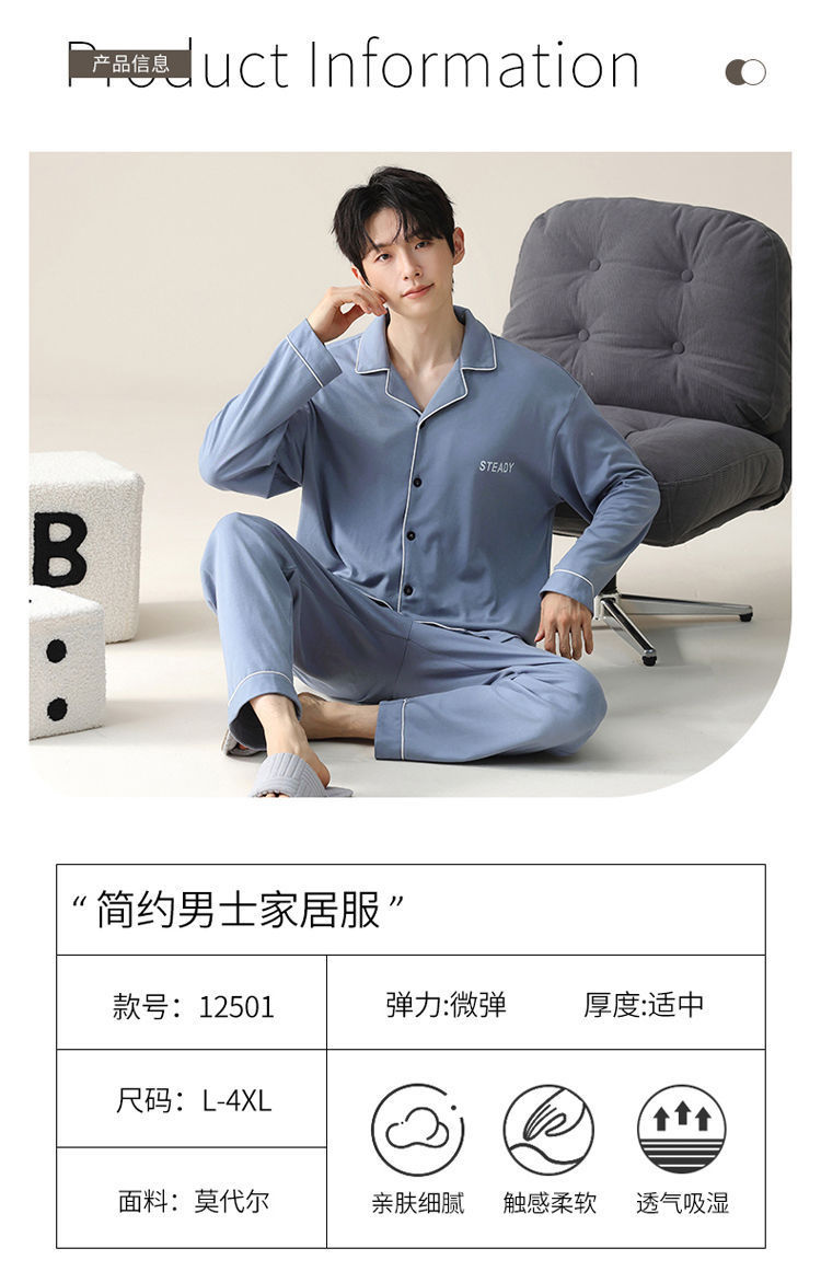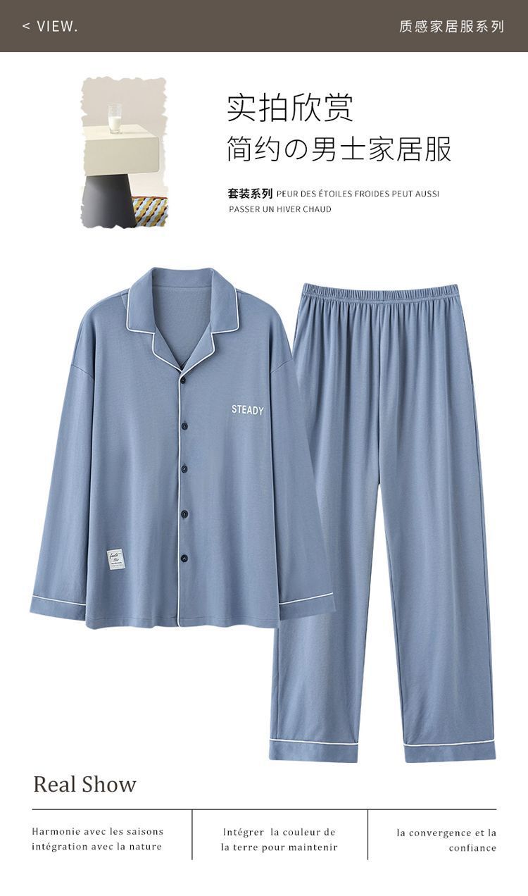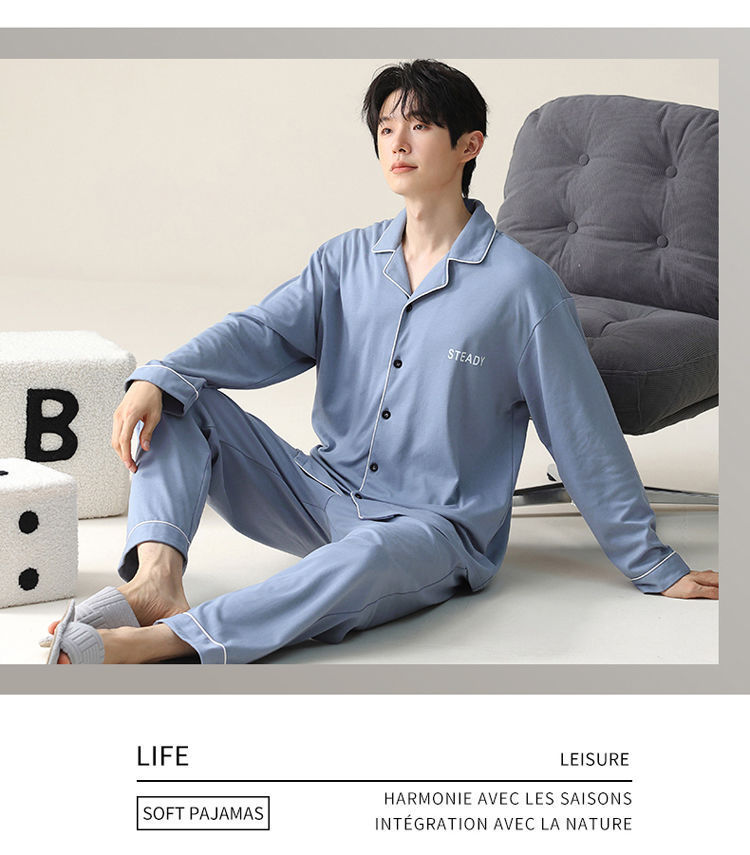 2024 nuevos pijamas para hombres primavera y otoño algodón de manga larga otoño de gran tamaño traje de servicio a domicilio de alta gama