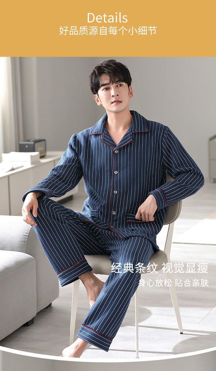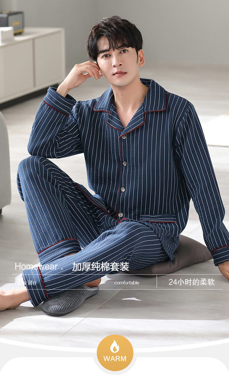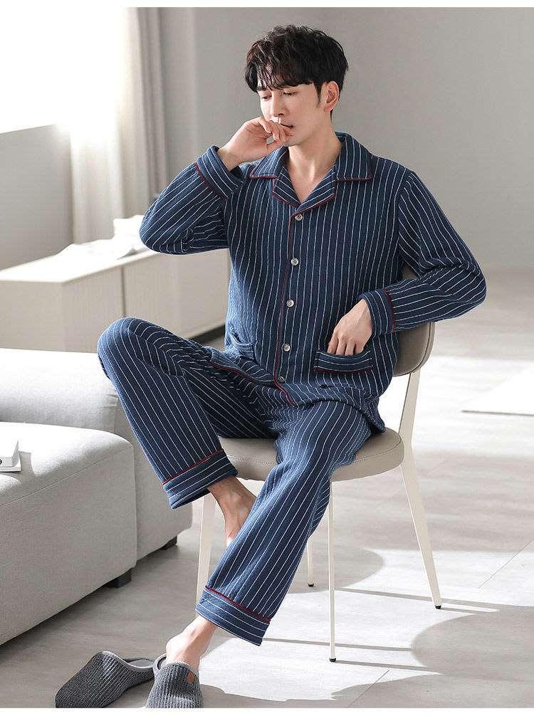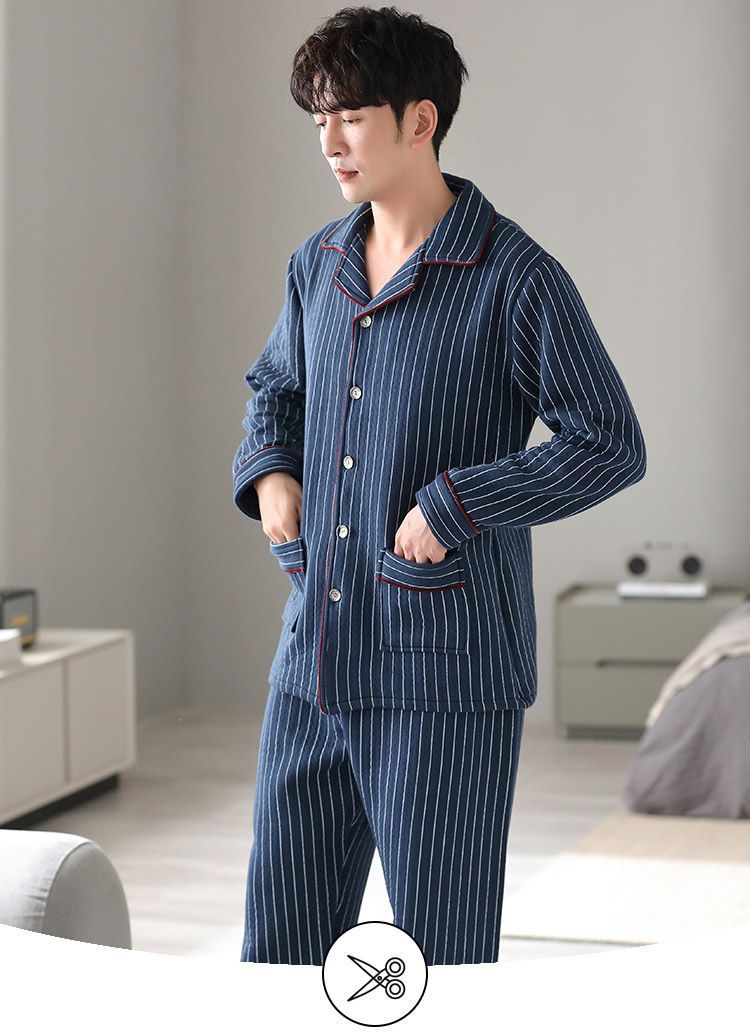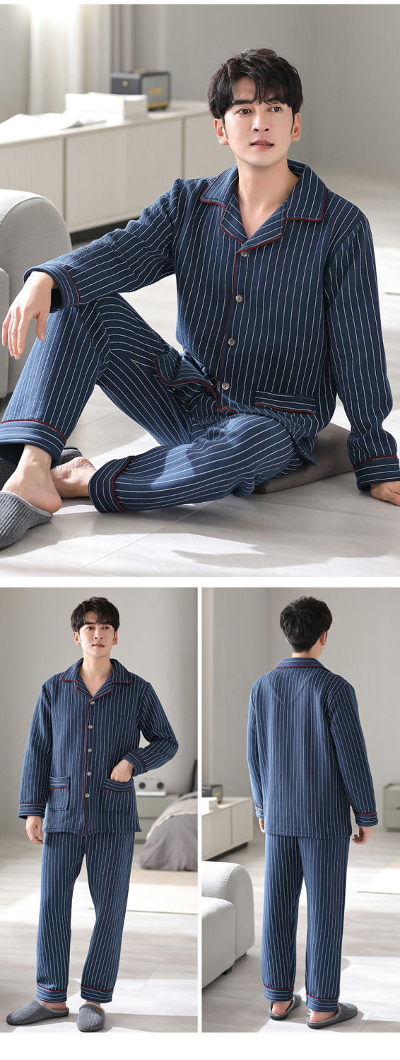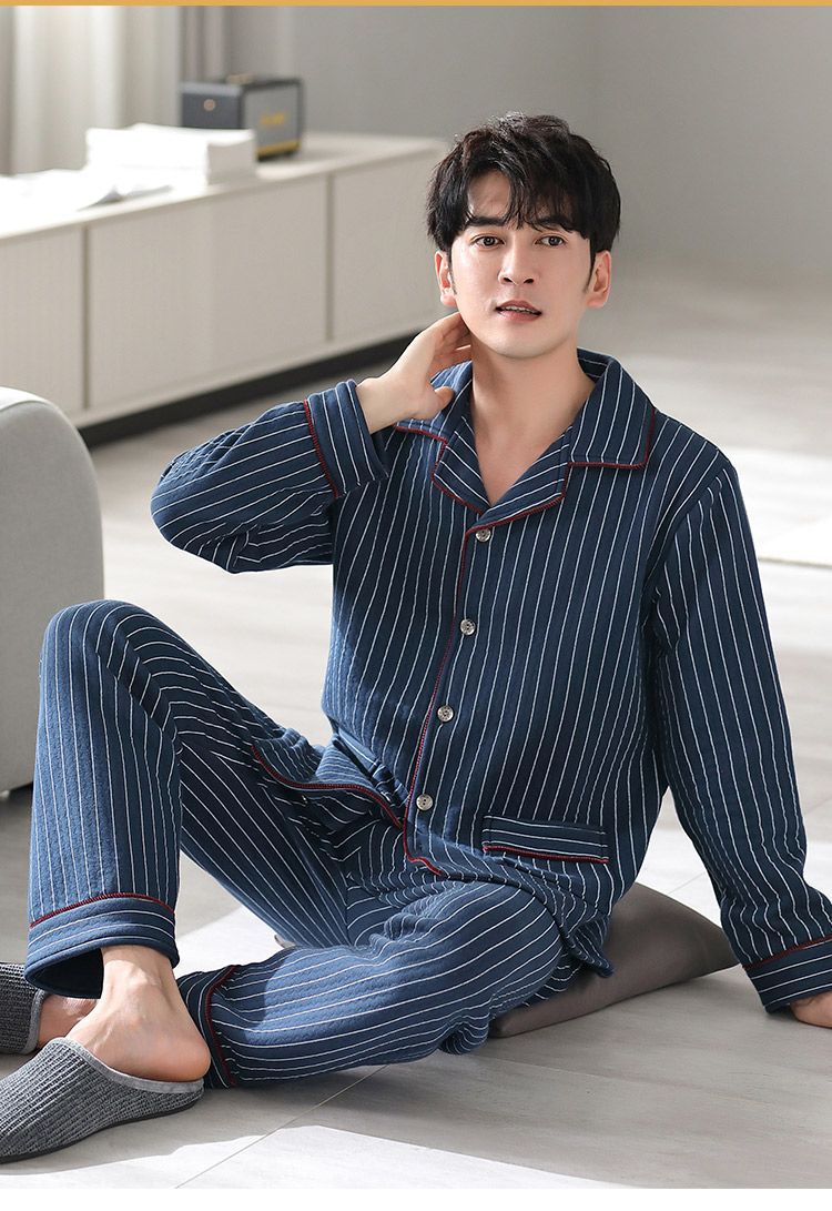 Pijamas de algodón laminado para hombres otoño y invierno engrosado delgado algodón intercalado de gran tamaño ropa doméstica de invierno aire algodón conjunto de primavera y otoño