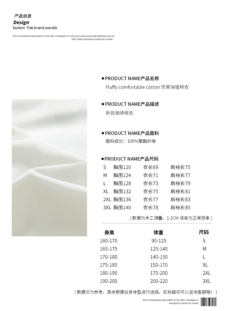 | Categoría del producto | Ropa acolchada de algodón / acolchada de algodón |