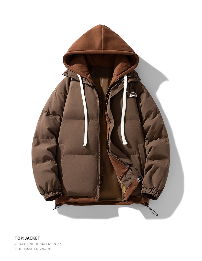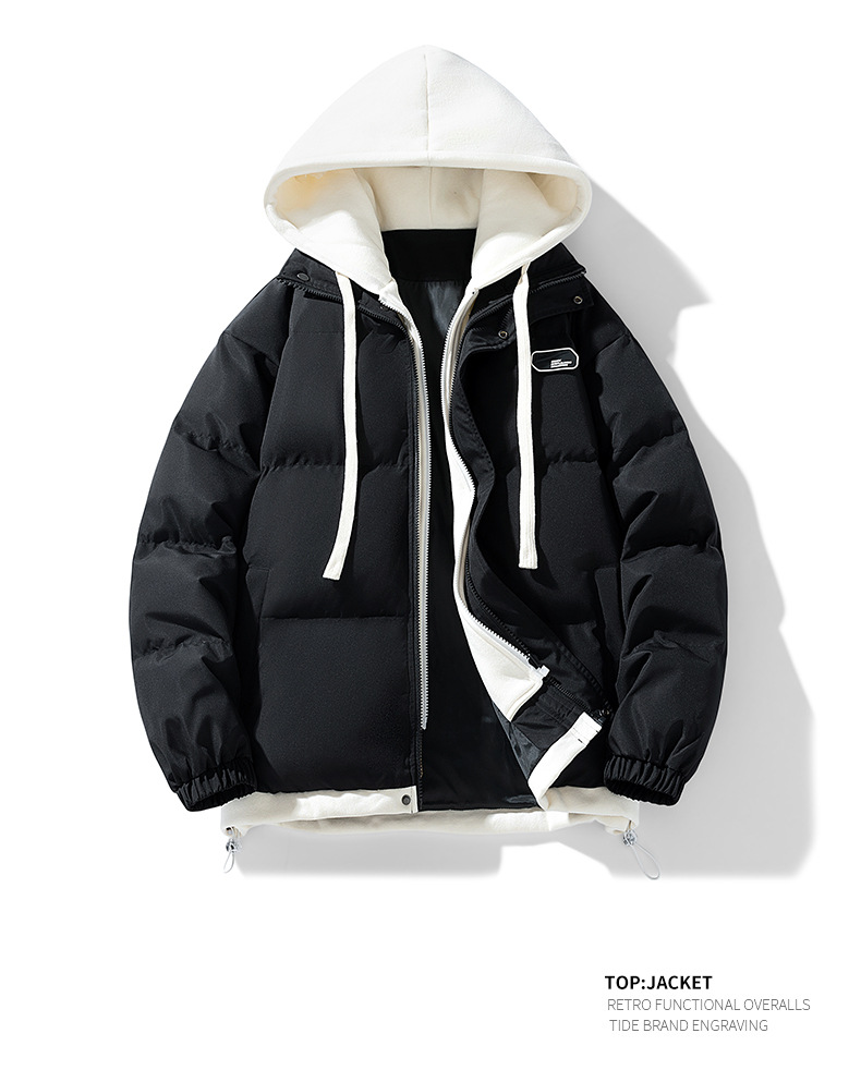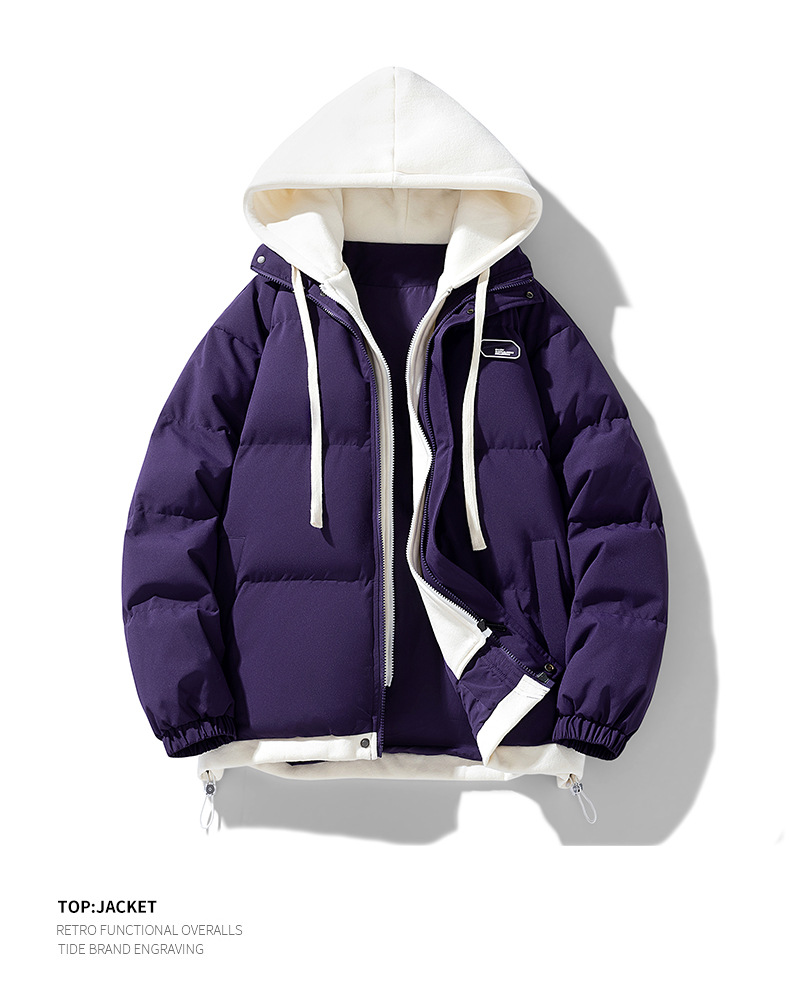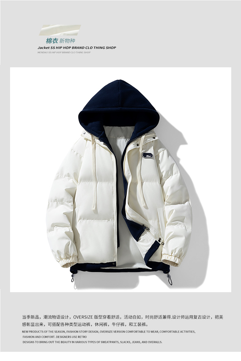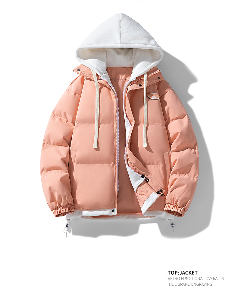 Falso de dos piezas de marca de moda de invierno de algodón nuevo suelto de algodón caliente chaqueta de algodón pareja encapuchada al por mayor