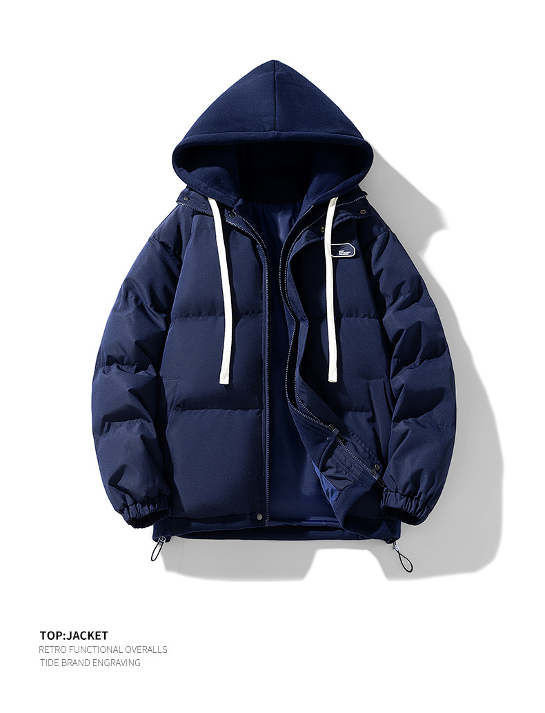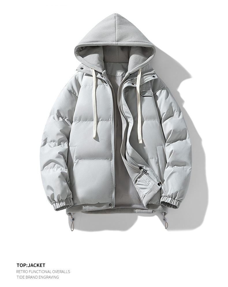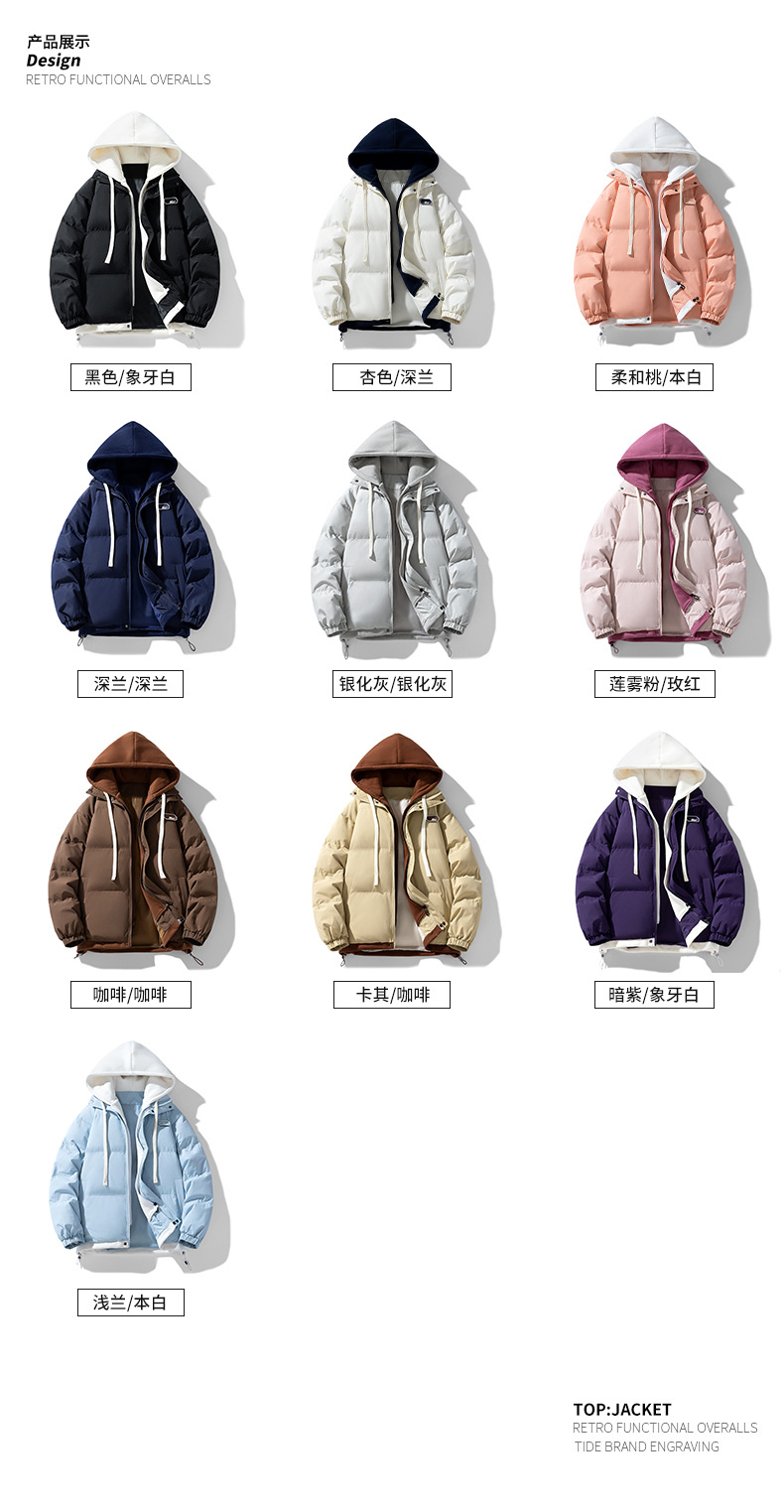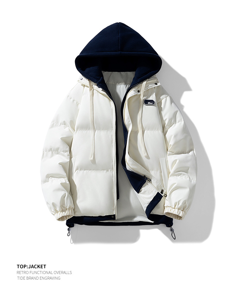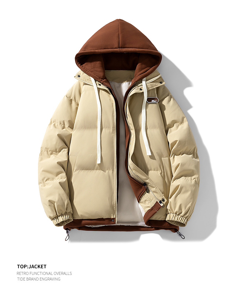 Falso de dos piezas de marca de moda de invierno de algodón nuevo suelto de algodón caliente chaqueta de algodón pareja encapuchada al por mayor