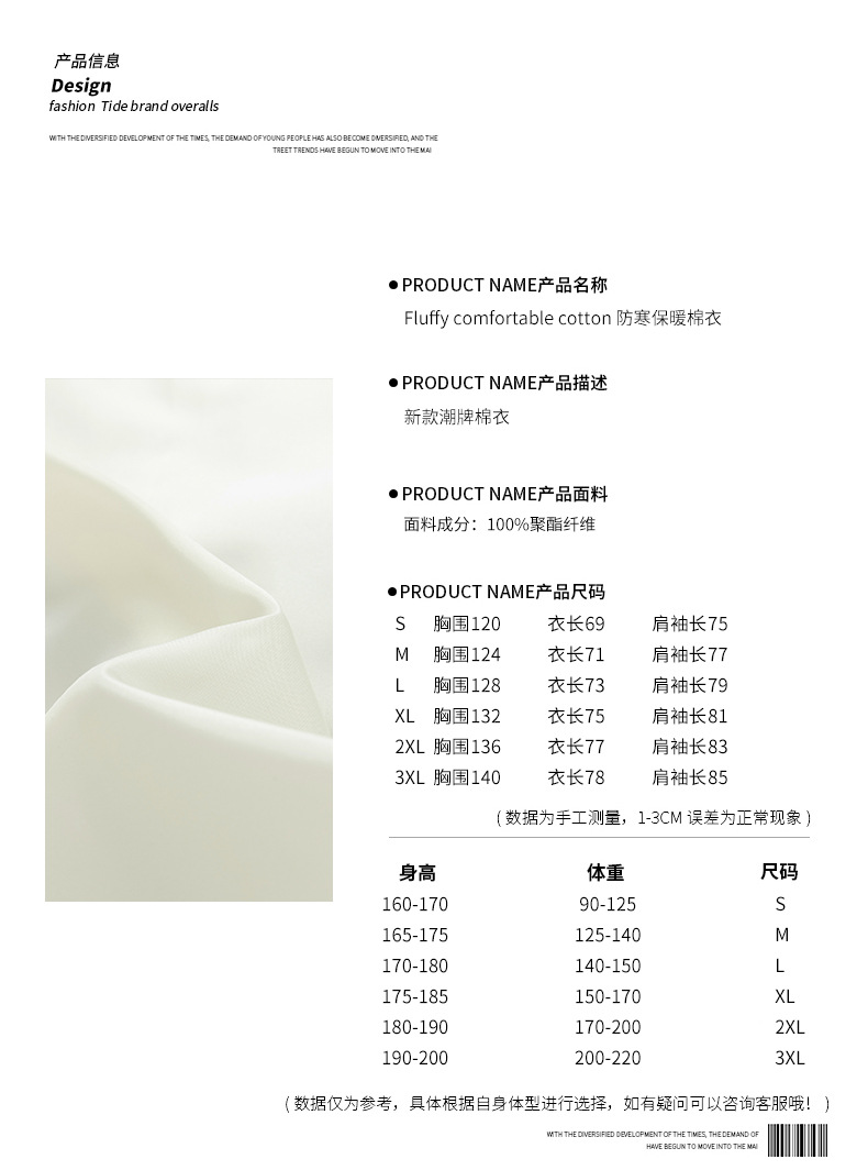 | Categoría del producto | Ropa acolchada de algodón / acolchada de algodón |