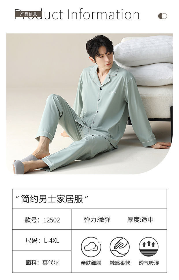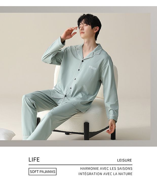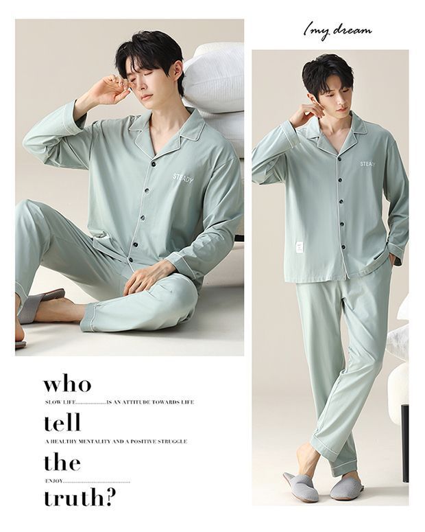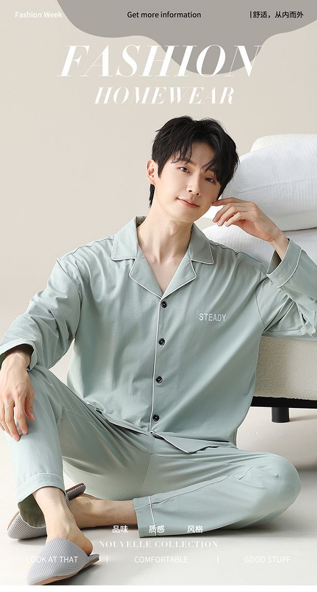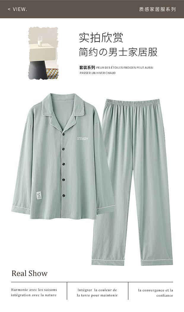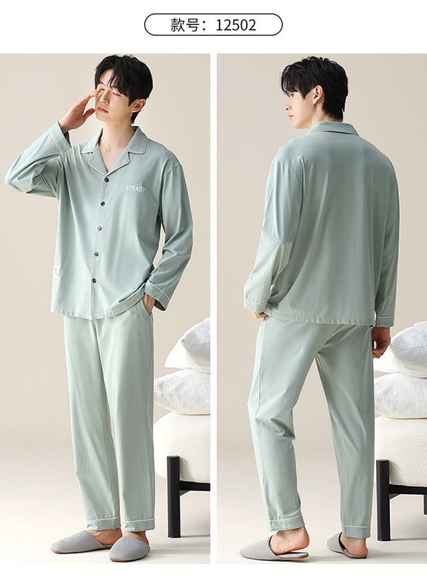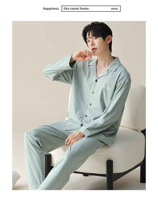 Pijama de hombre primavera y otoño cardigan de manga larga set delgado suelto algodón puro estilo exterior se puede usar ropa de hogar
