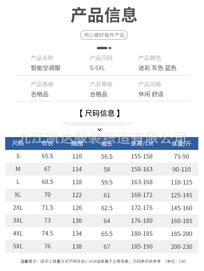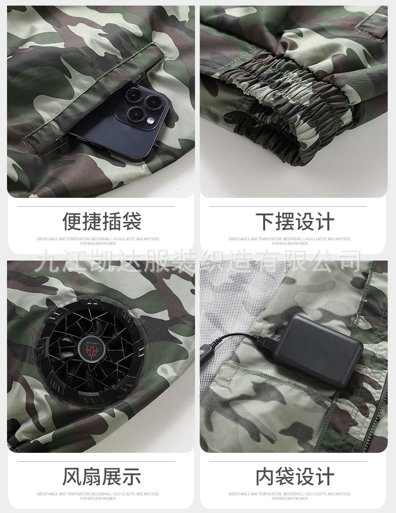 Verano transfronterizo nueva ropa de ventilador de camuflaje herramientas de manga larga refrigeración inteligente taller de fábrica de refrigeración seguro laboral ropa de soldadura