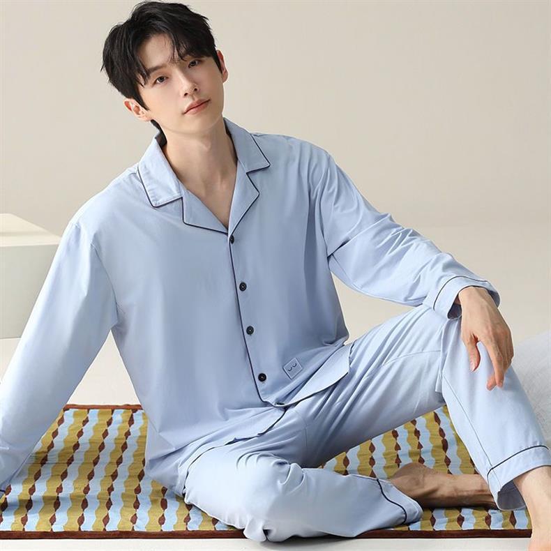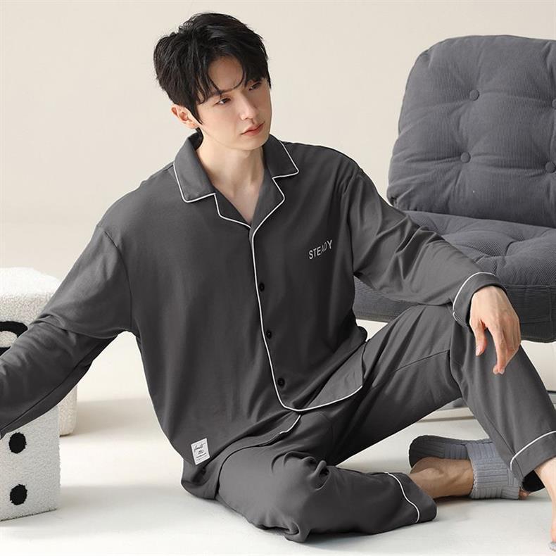 Gran tamaño para hombres 2024 nuevo pijama de algodón primavera y otoño se puede usar ropa de casa otoño y invierno hombre conjunto