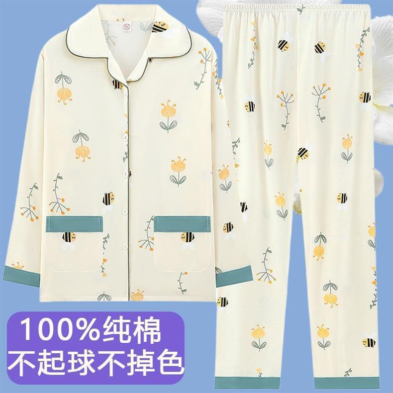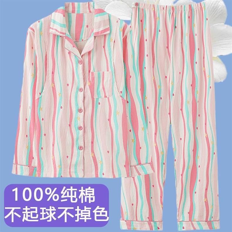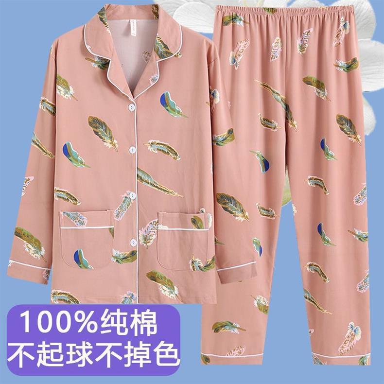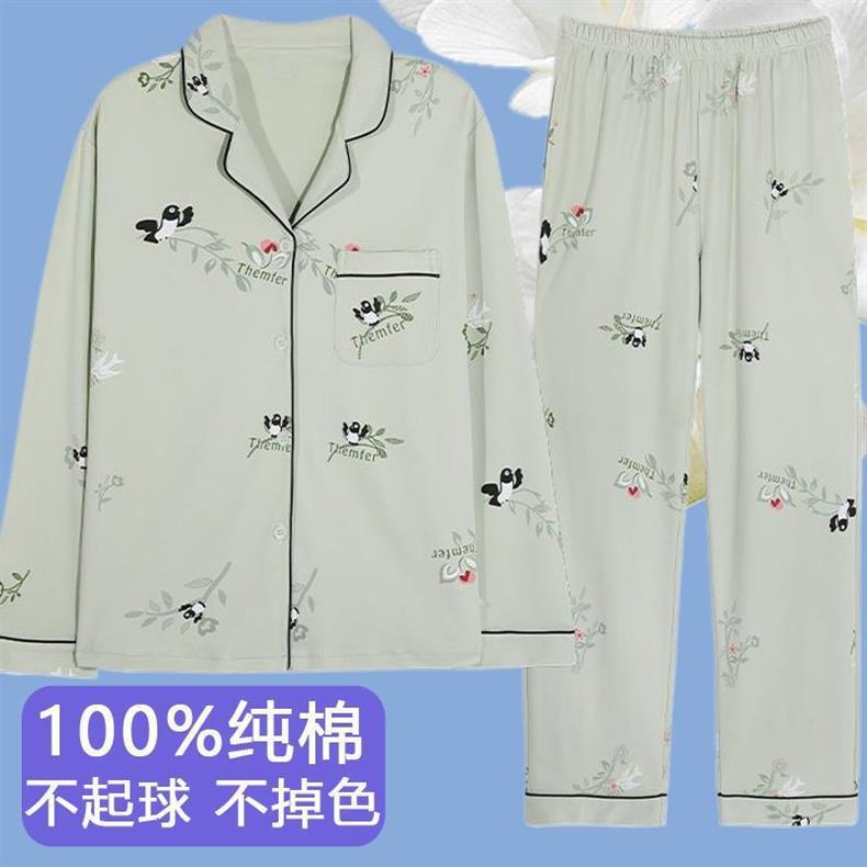 Primavera y otoño de alta calidad 100% pijama de mujer nueva ropa de hogar de manga larga cardigan para usar dos conjuntos
