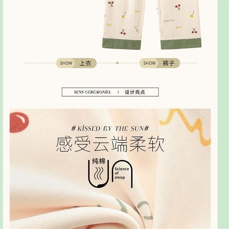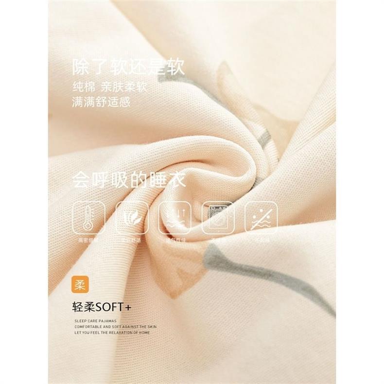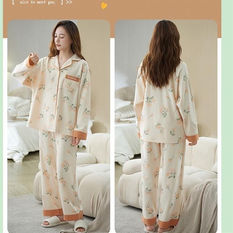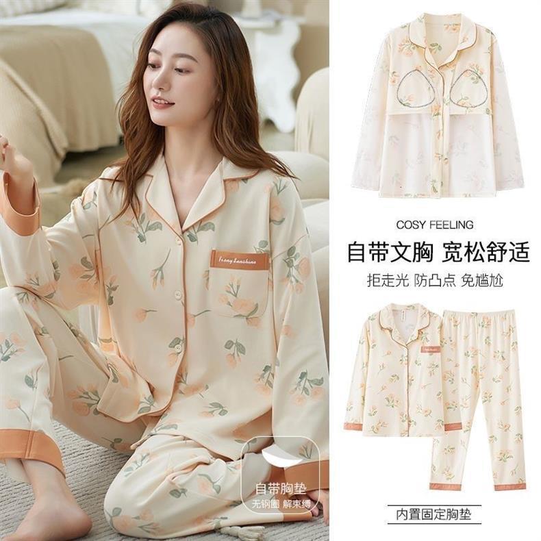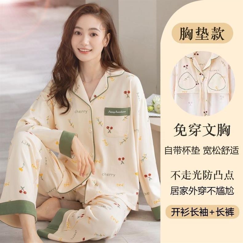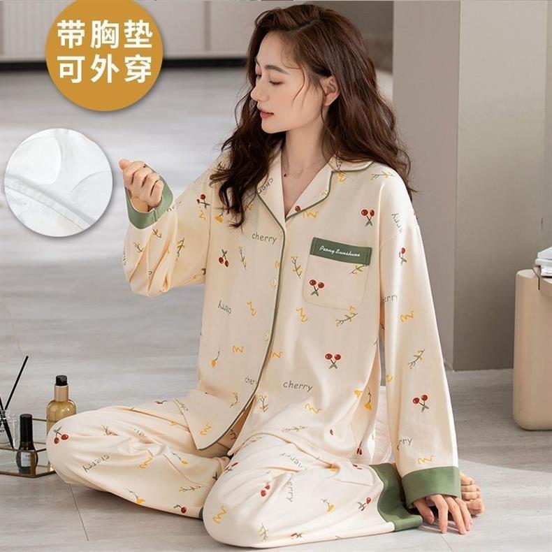 Primavera y otoño pijamas pantalones de algodón primavera y otoño mangas largas largas sueltas de tamaño grande se puede usar para el hogar conjunto de cojín de pecho