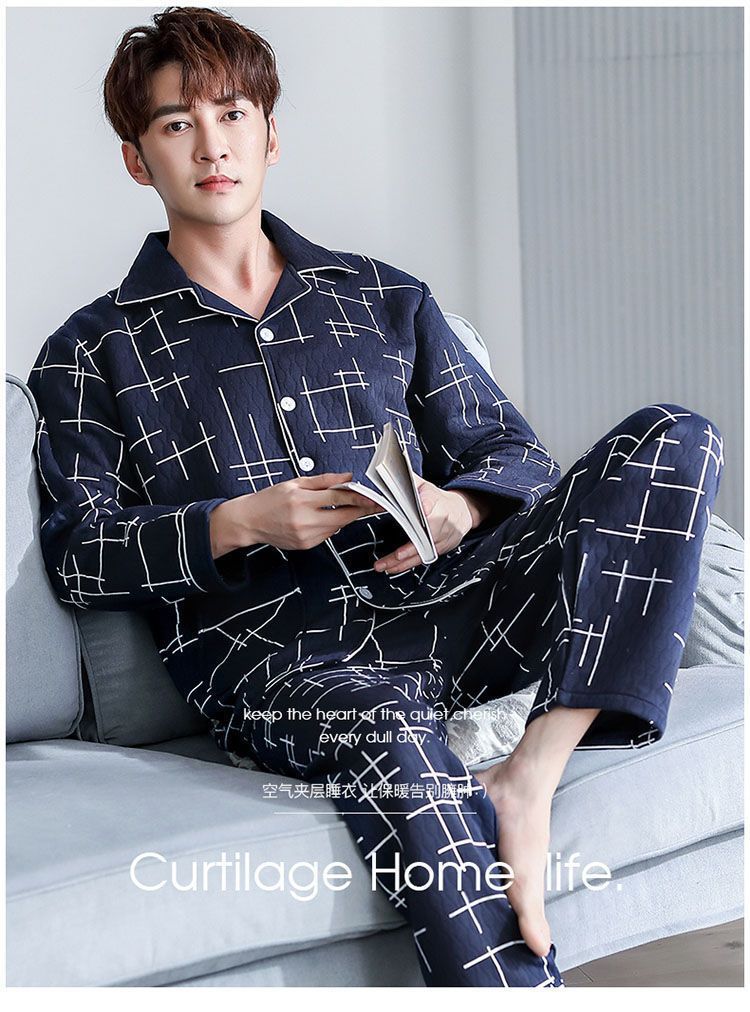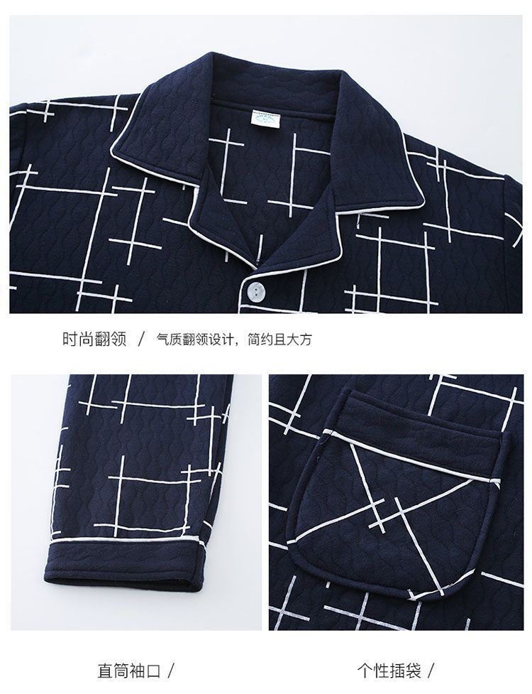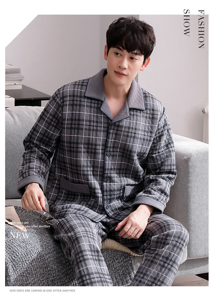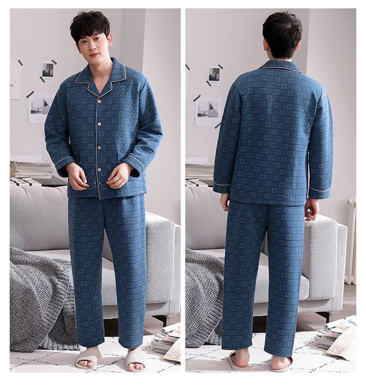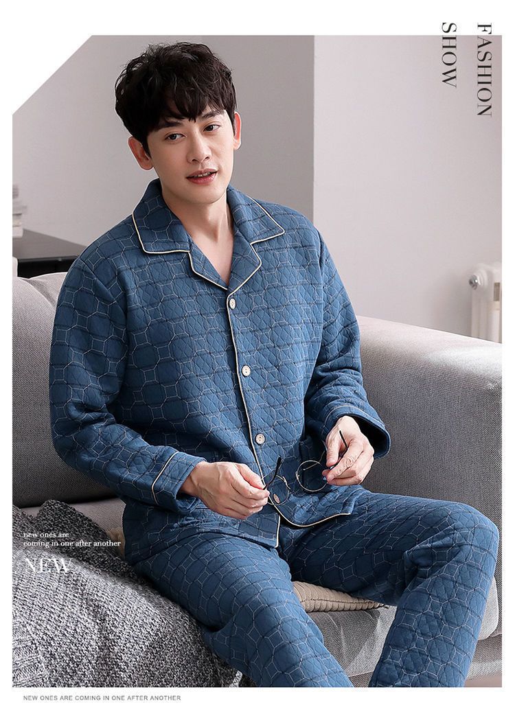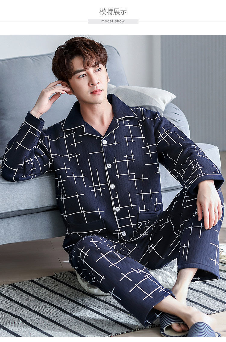 Pijama de hombre otoño y invierno engrosado aire de algodón de manga larga mezclado juvenil de mediana edad caliente primavera y otoño set de ropa de algodón casero