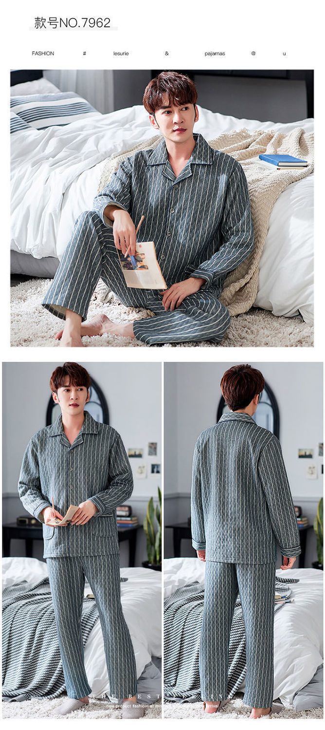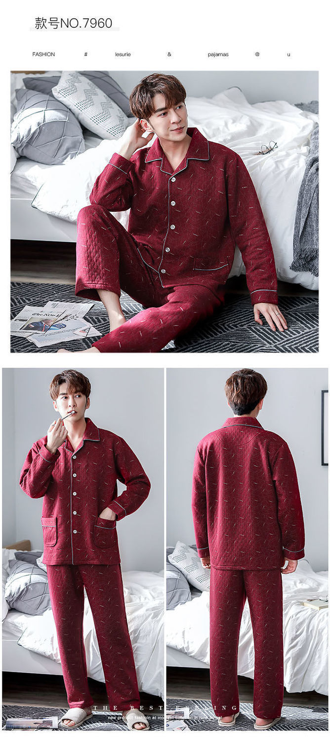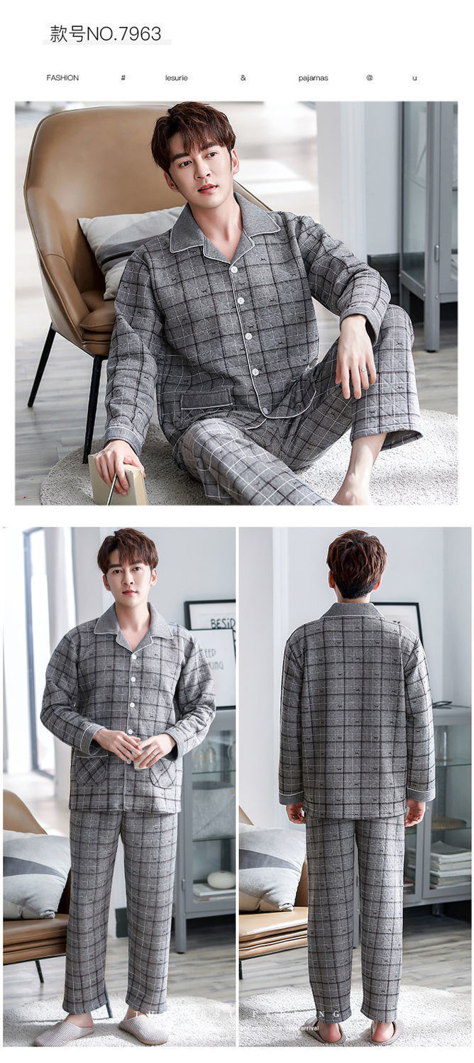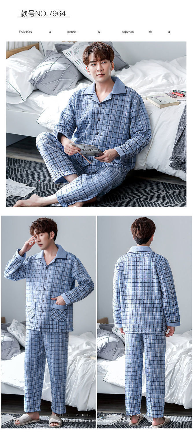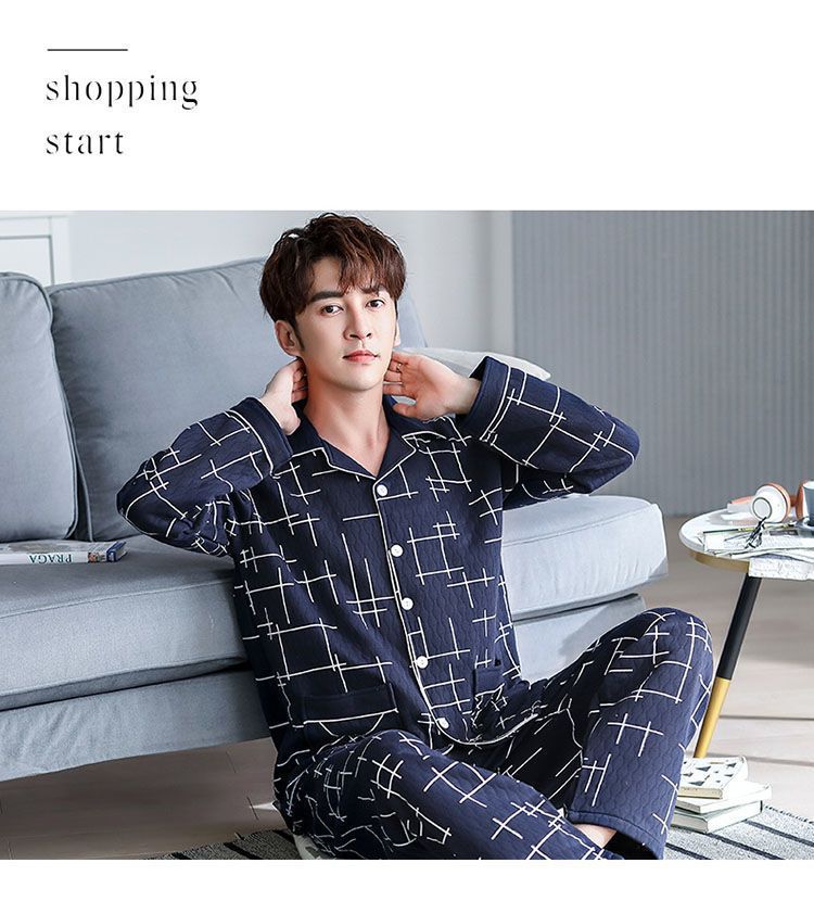 Pijama de hombre otoño y invierno engrosado aire de algodón de manga larga mezclado juvenil de mediana edad caliente primavera y otoño set de ropa de algodón casero