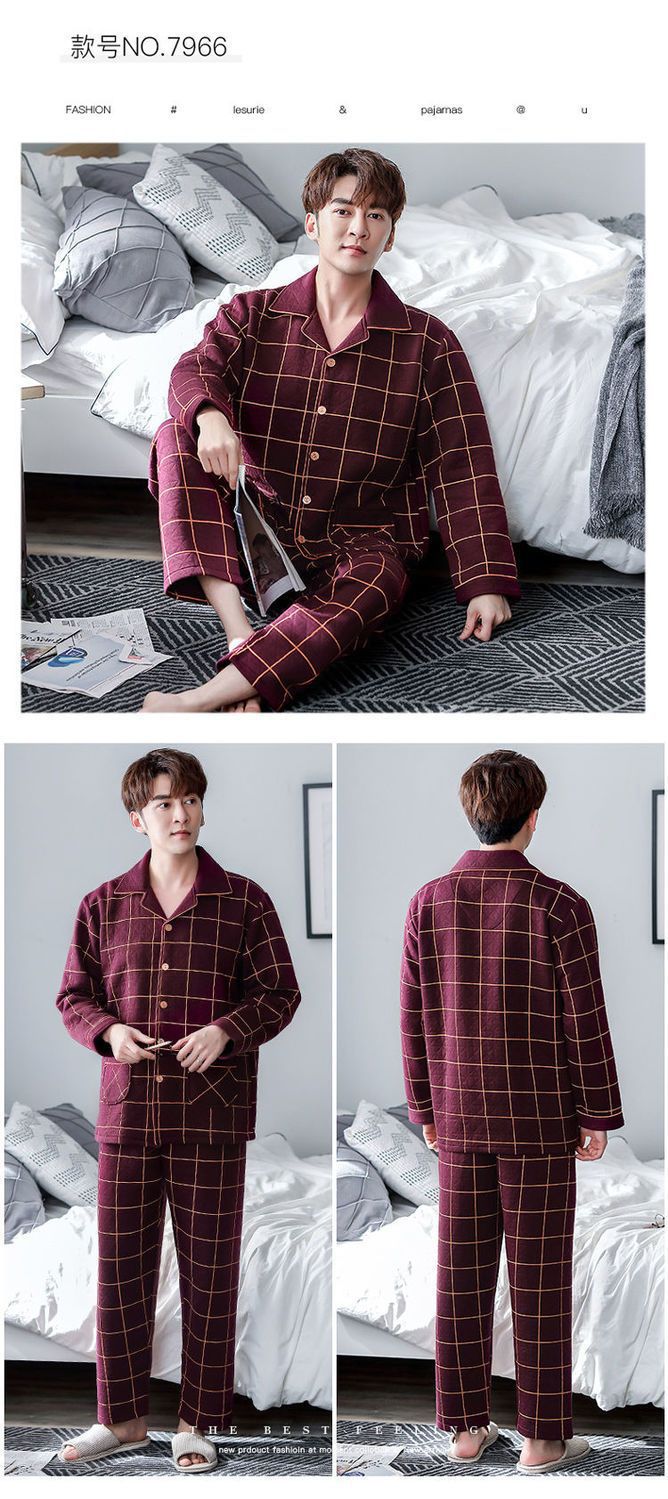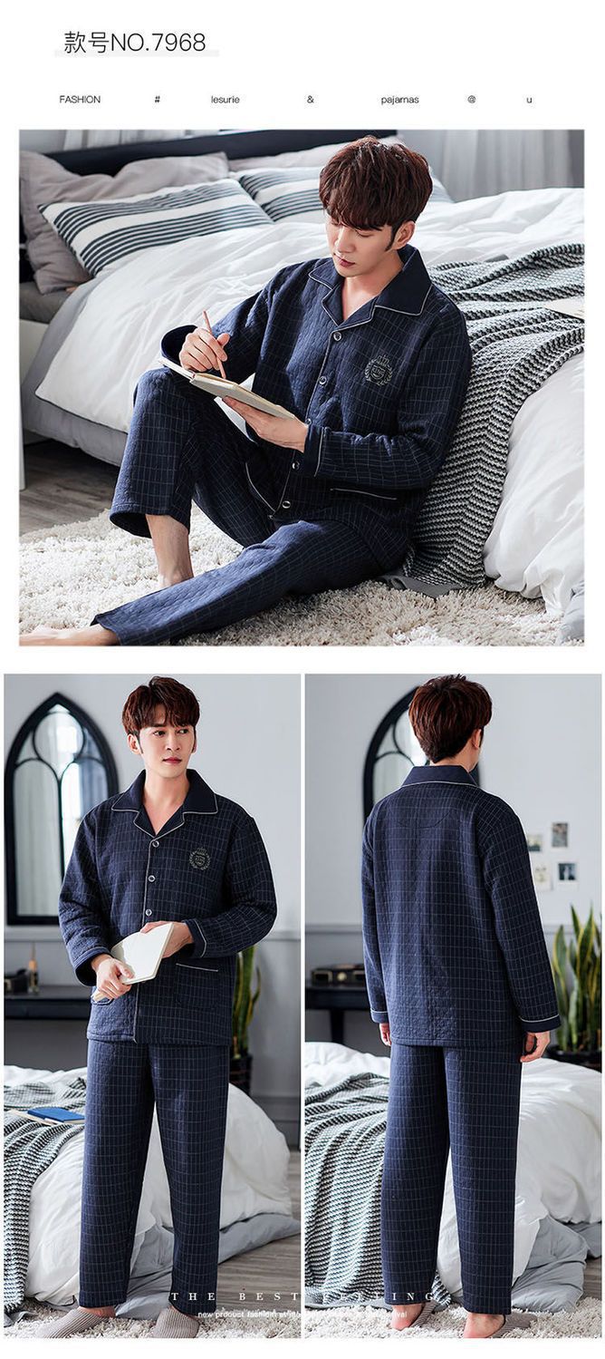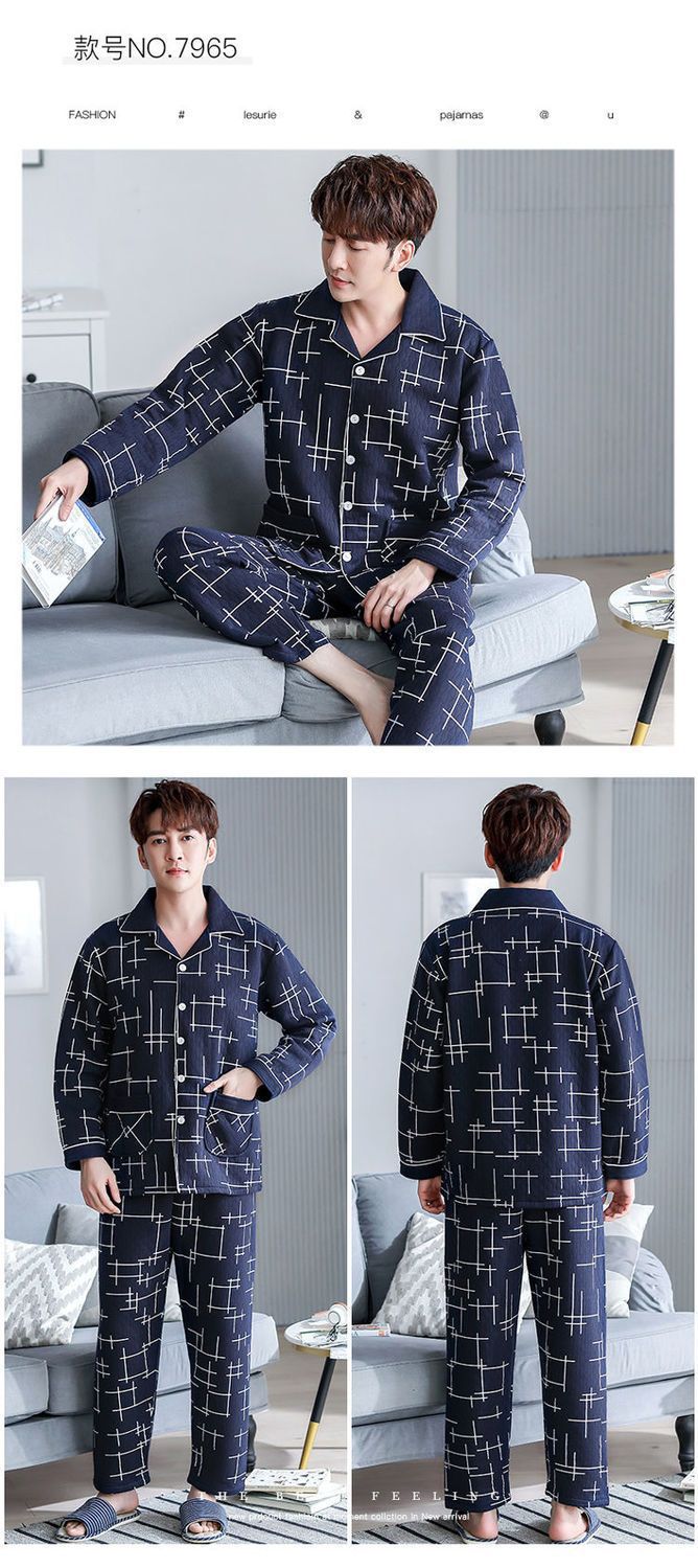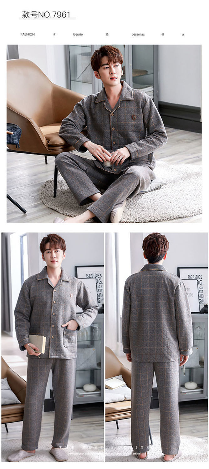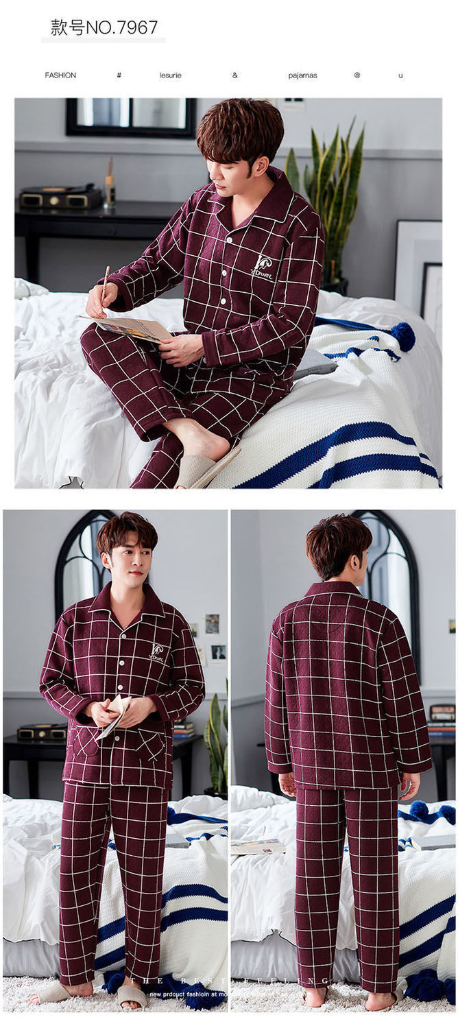 Pijama de hombre otoño y invierno engrosado aire de algodón de manga larga mezclado juvenil de mediana edad caliente primavera y otoño set de ropa de algodón casero
