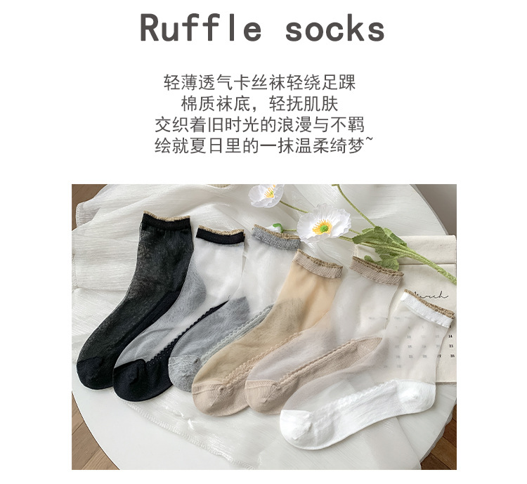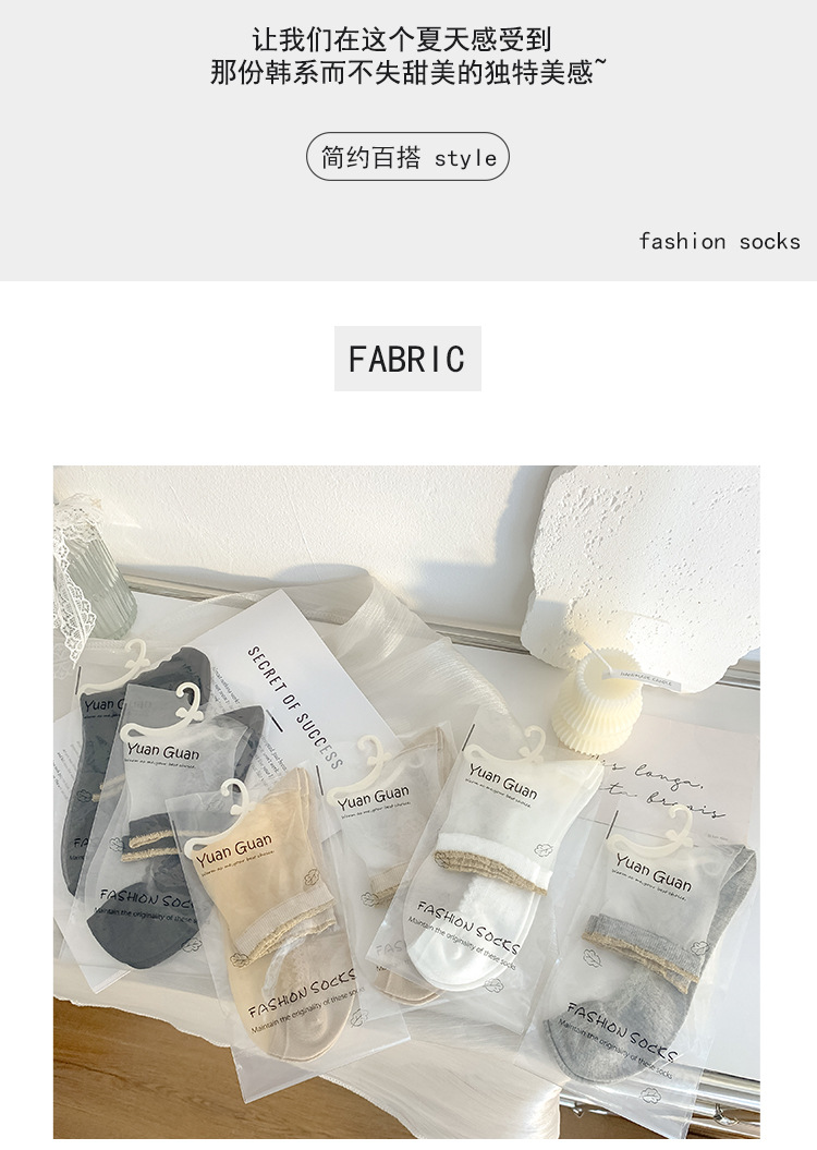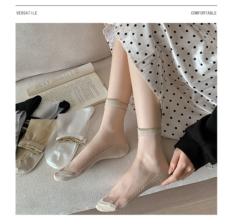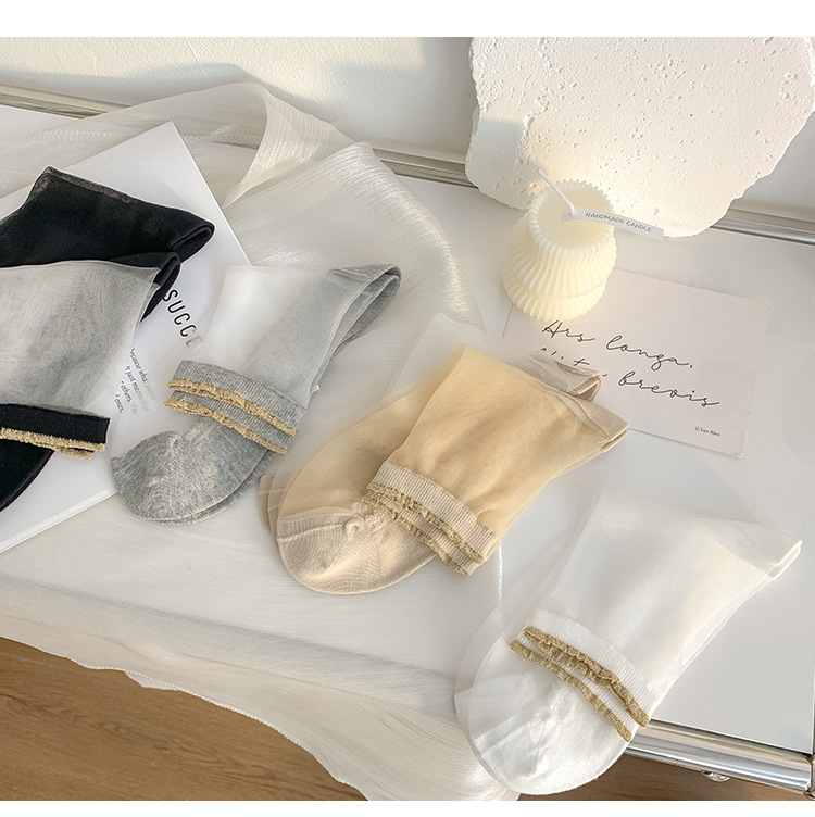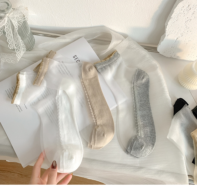 Calcetines de verano para mujer, calcetines delgados, medias de vidrio transpirables, medias de tarjeta de viento de niña dulce transparente, calcetines Zhuji