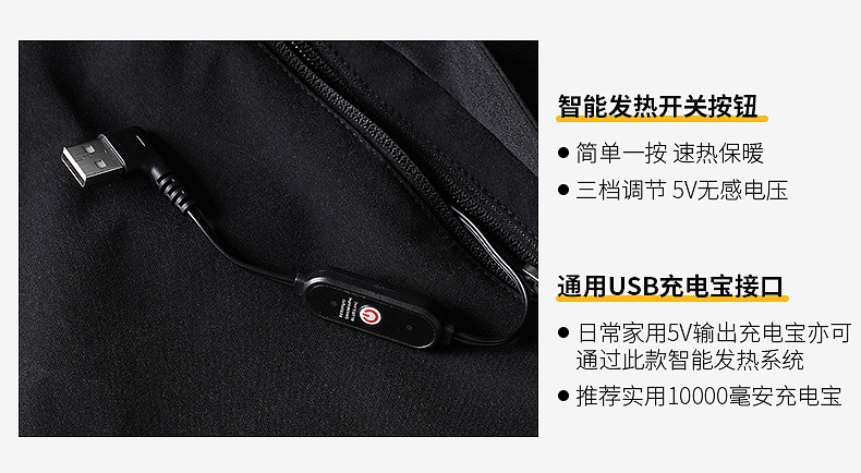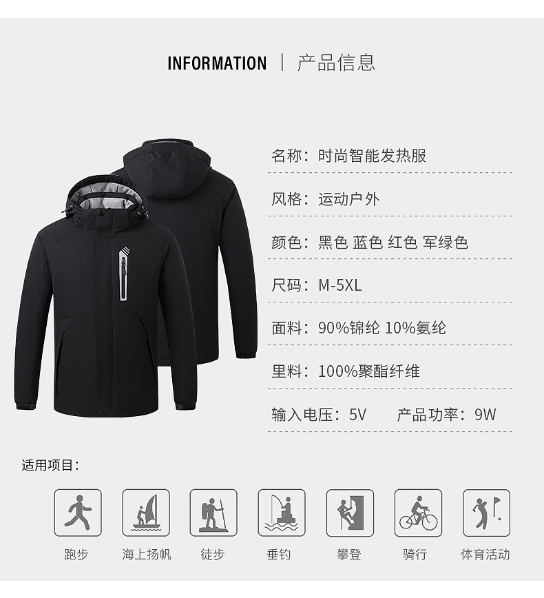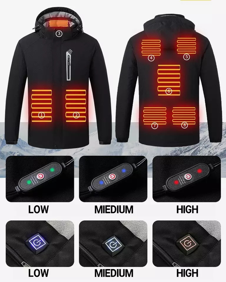 Chaqueta de algodón con calefacción Chaqueta de algodón con calefacción inteligente Chaqueta con capucha Chaqueta de algodón deportiva gruesa a prueba de frío de invierno