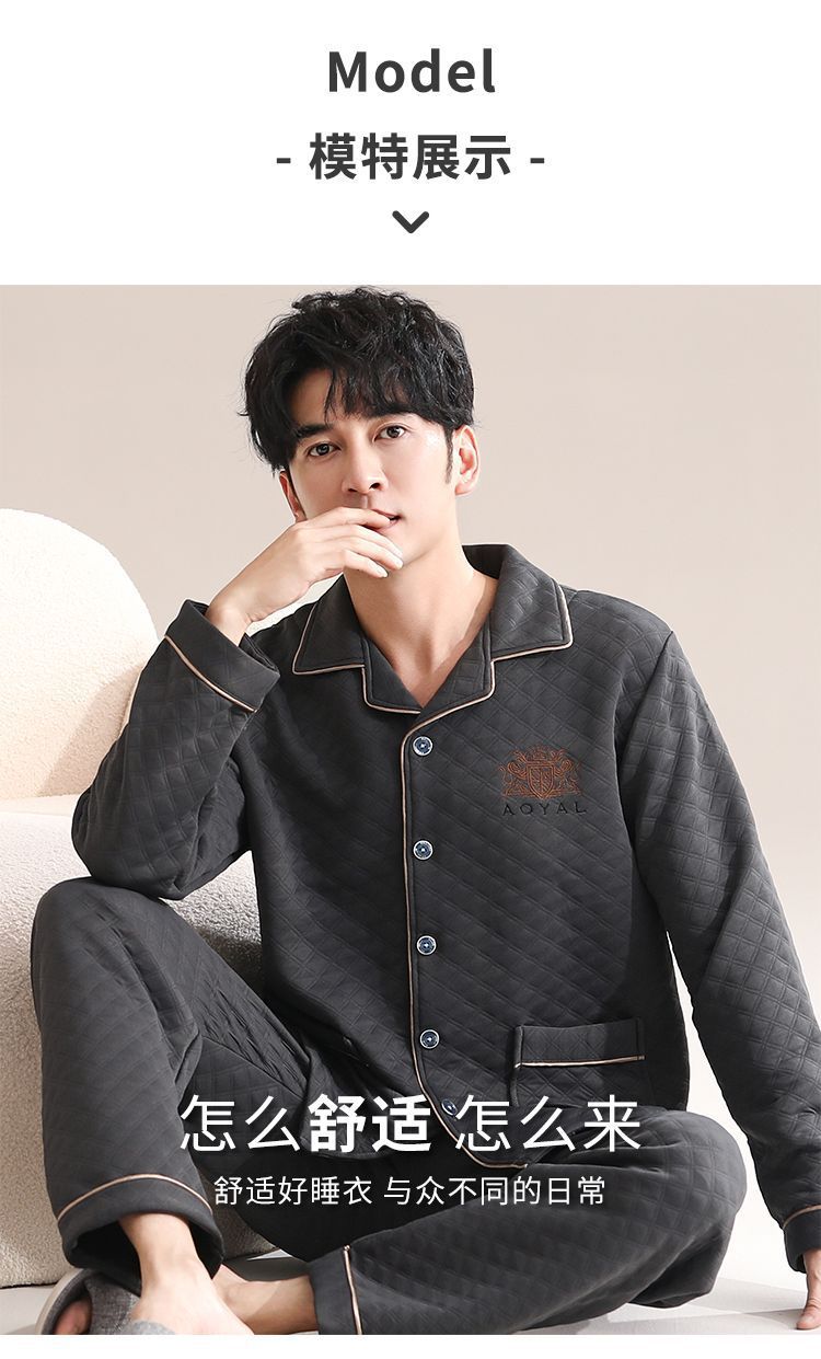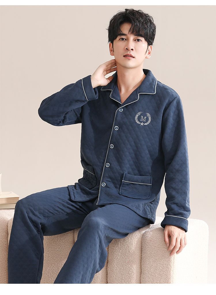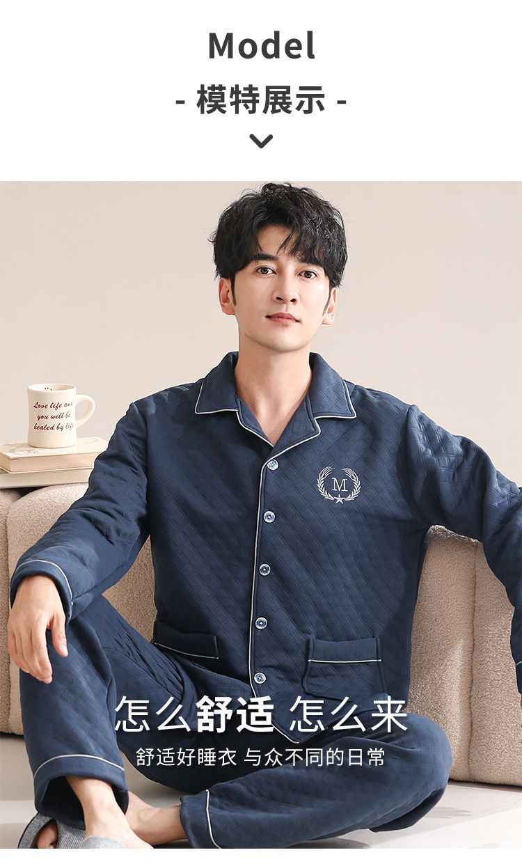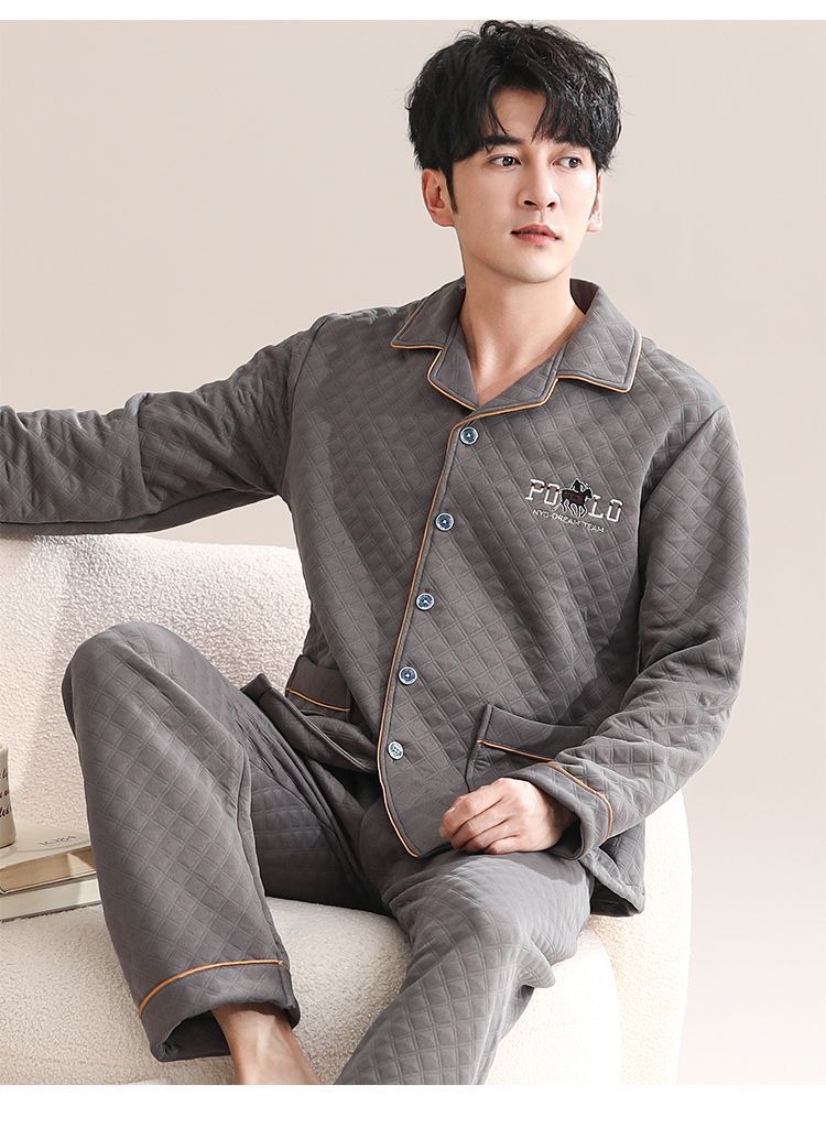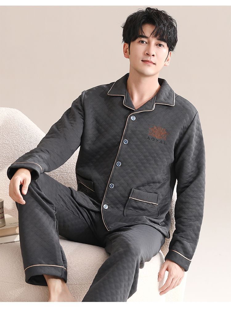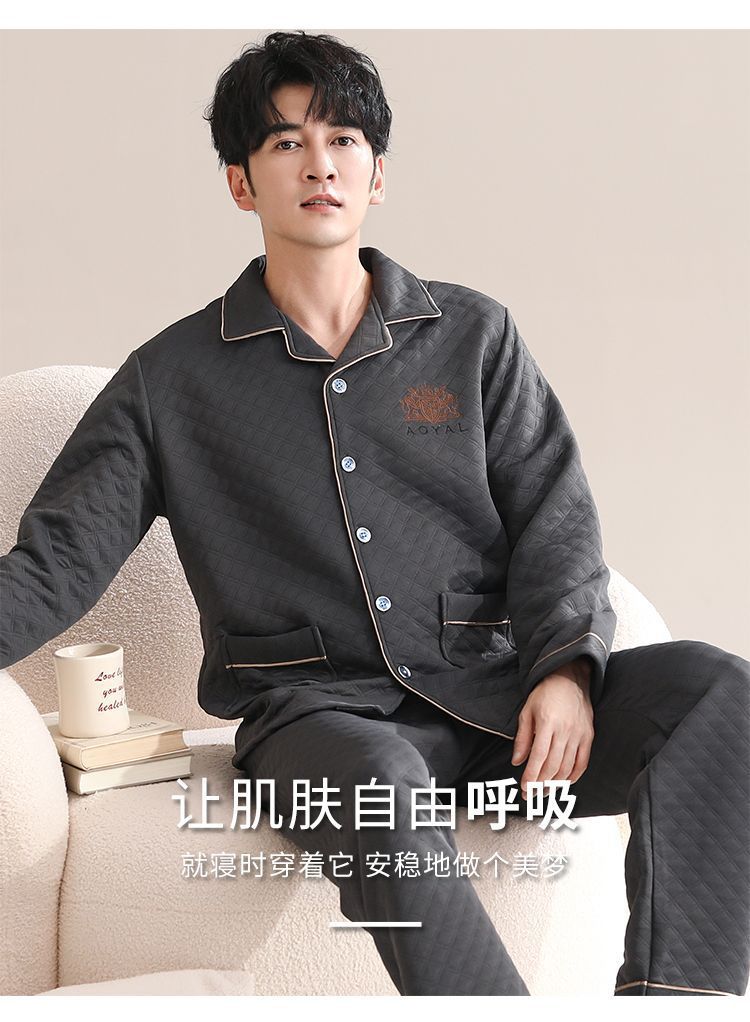 Pijama de hombre hombre otoño y invierno engrosado ropa de hogar de mangas largas delgada intercalada de algodón aire invierno conjunto intercalado de algodón