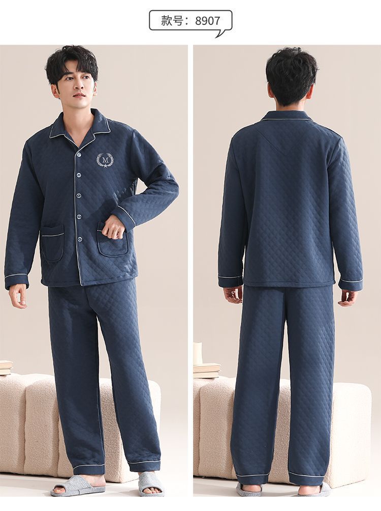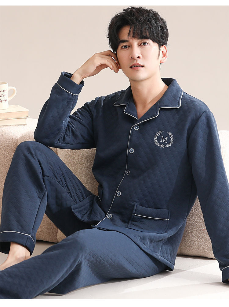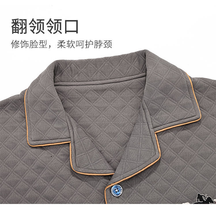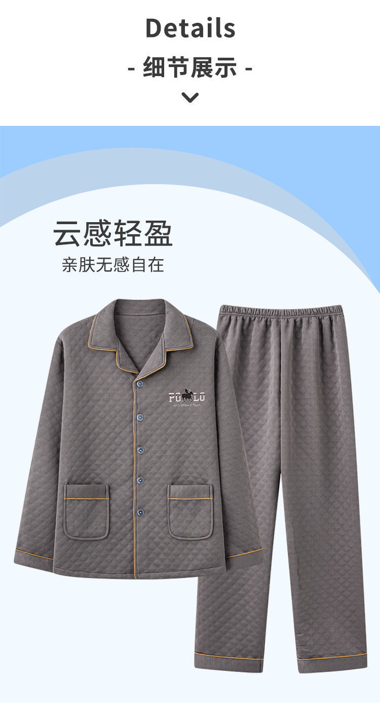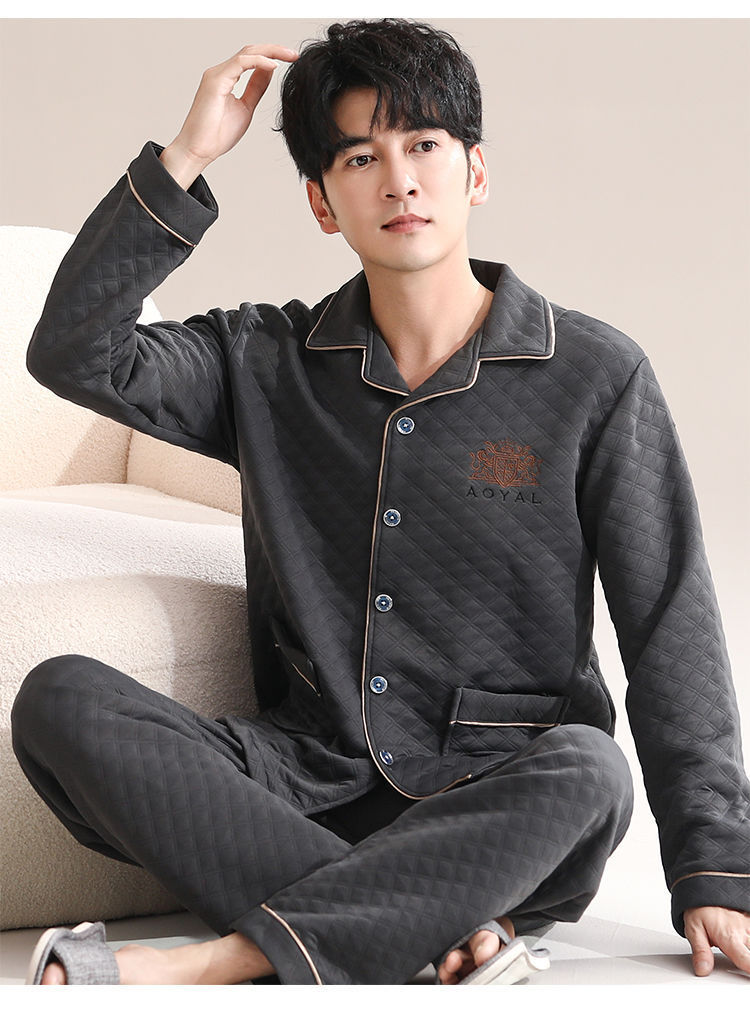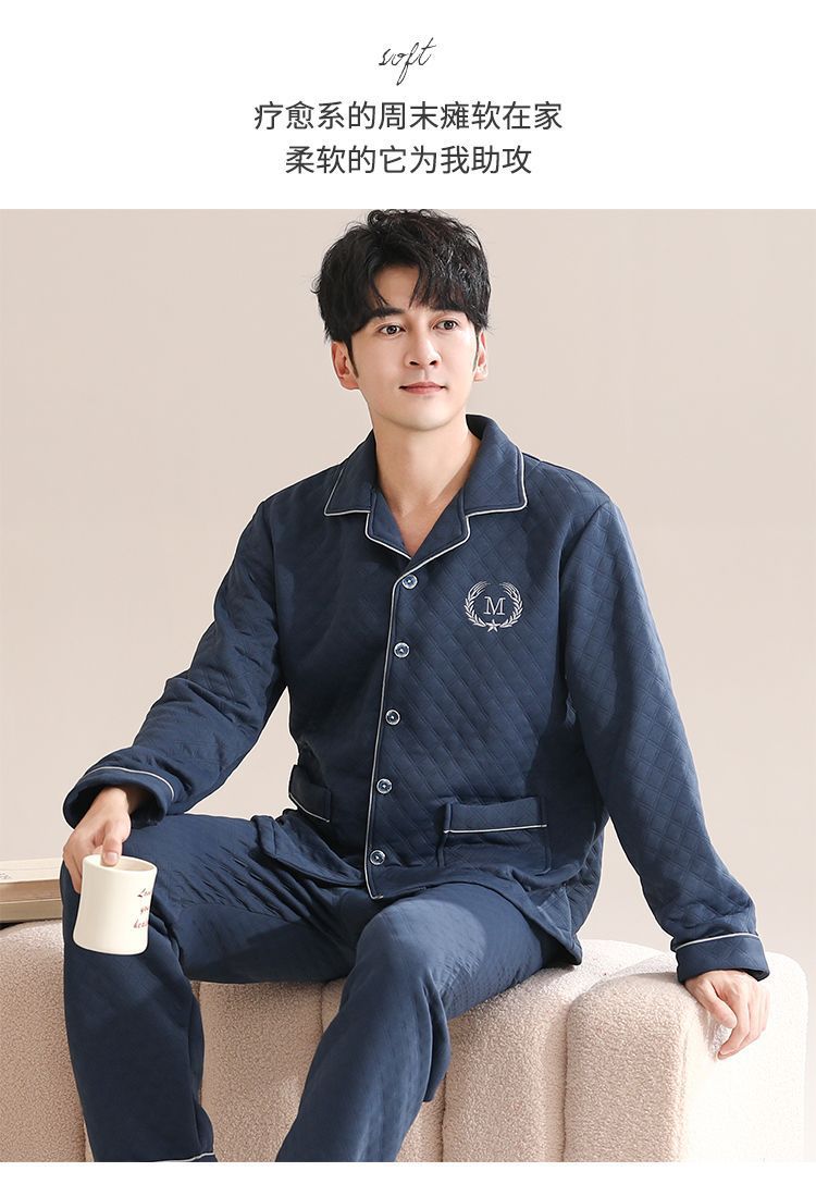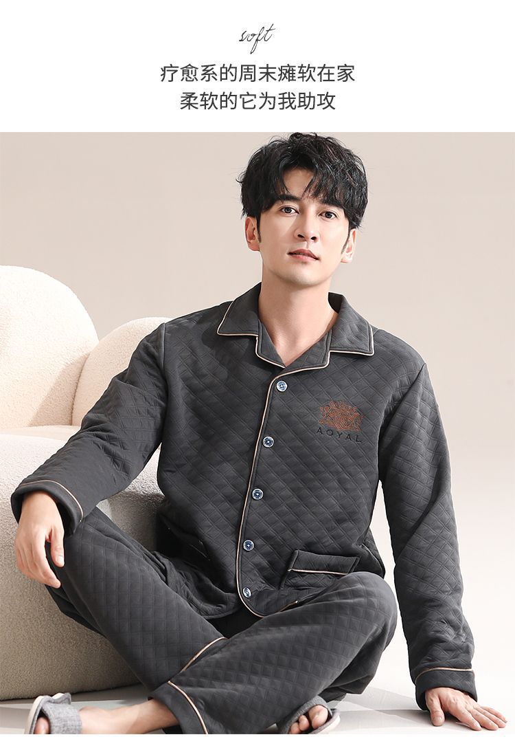Pijama de hombre hombre otoño y invierno engrosado ropa de hogar de mangas largas delgada intercalada de algodón aire invierno conjunto intercalado de algodón