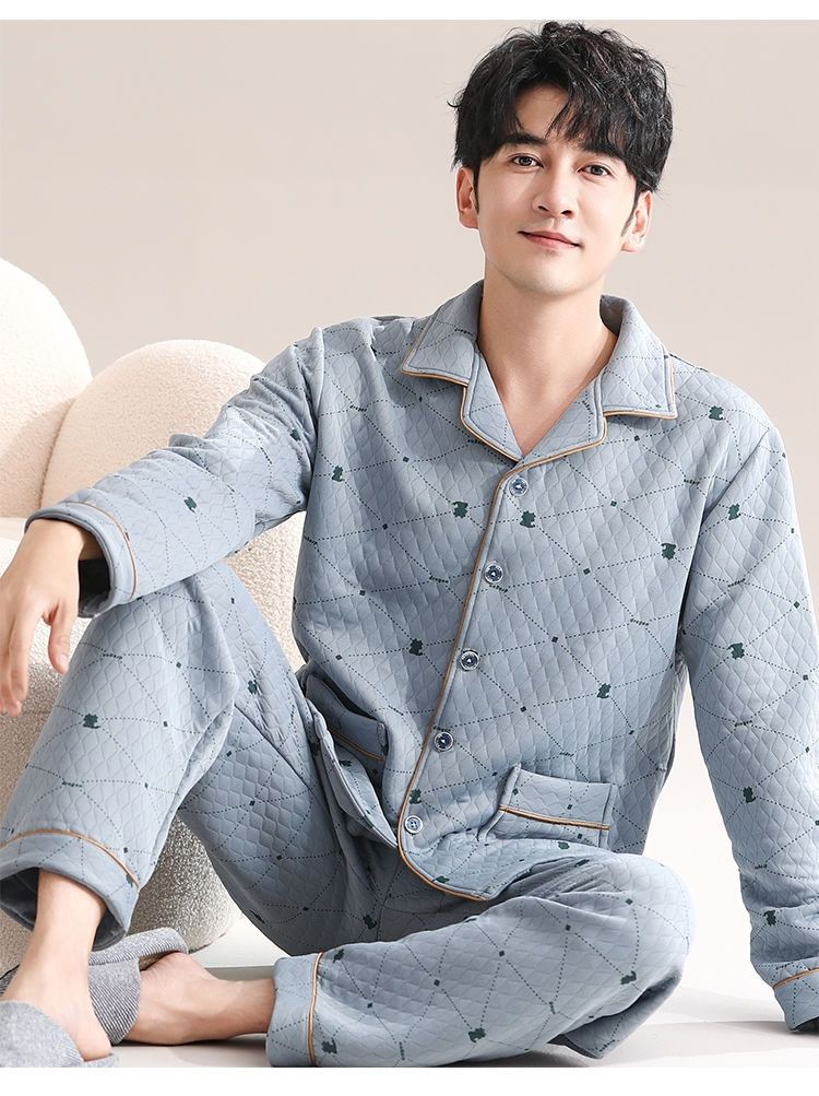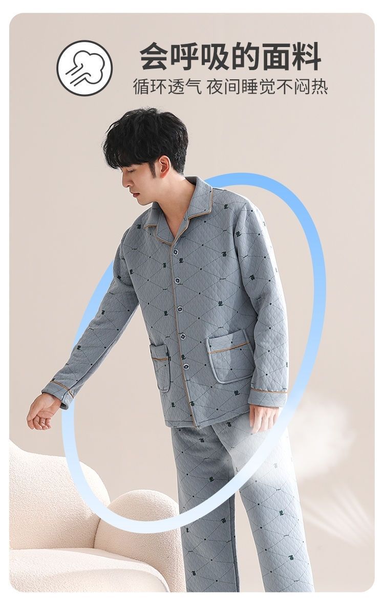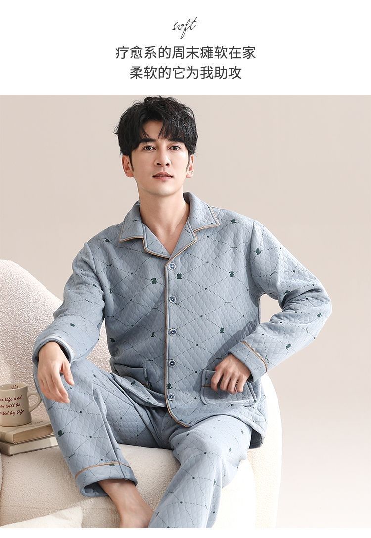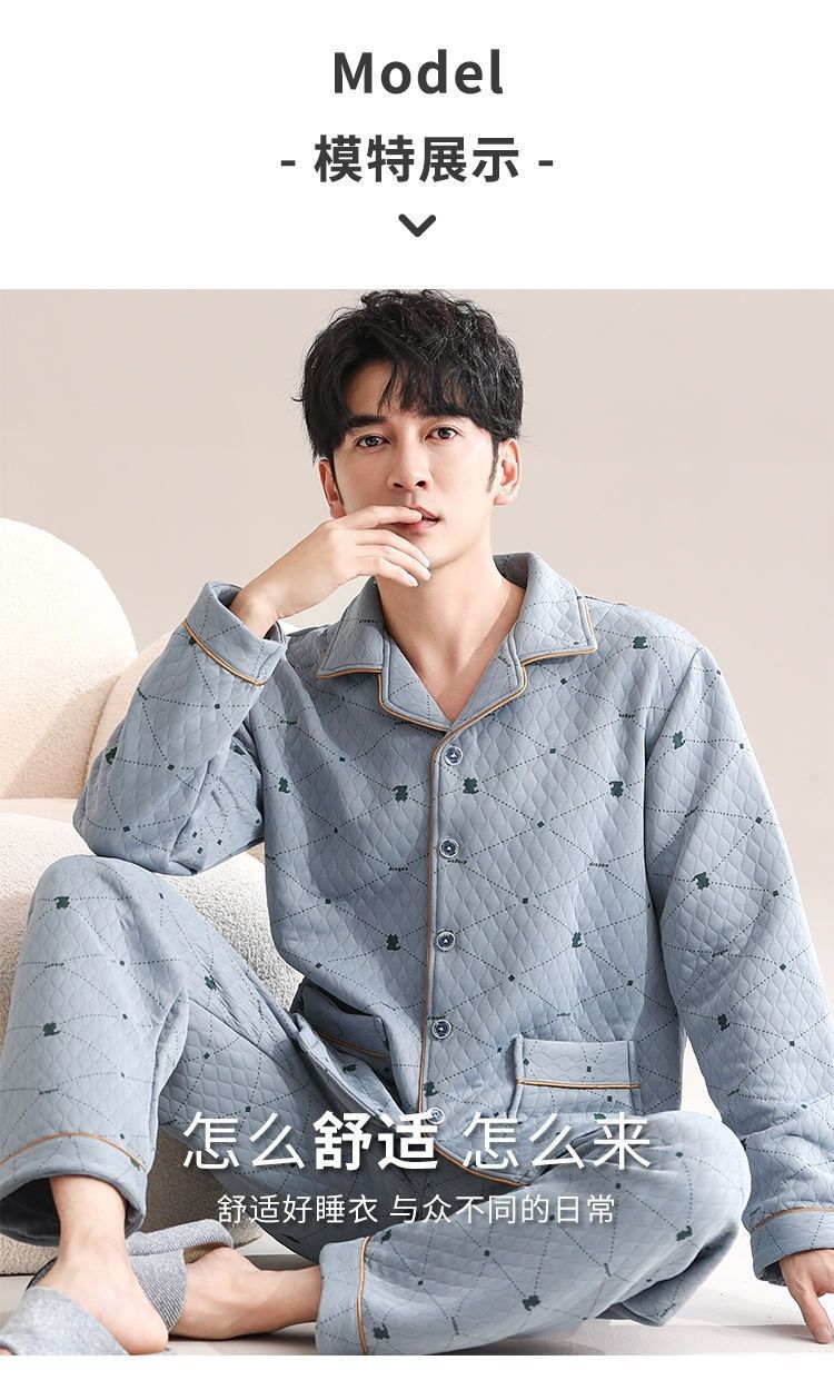 Pijamas para hombre otoño e invierno engrosado suelto de talla grande traje de servicio a domicilio sándwich de aire