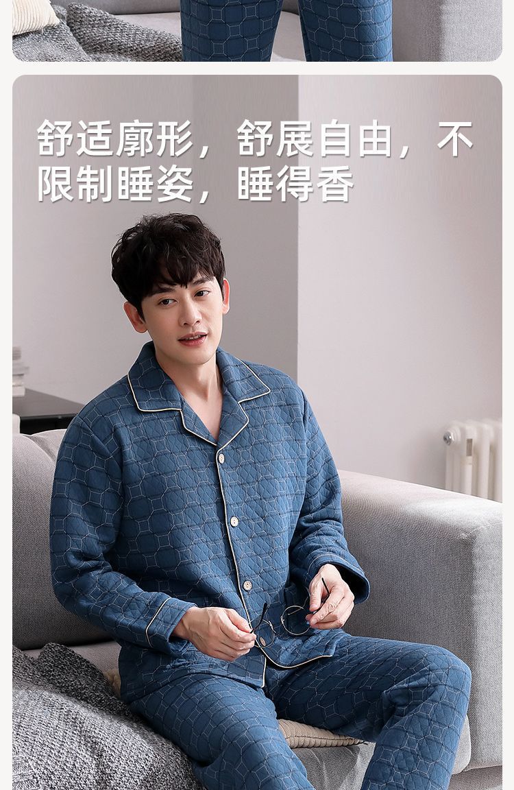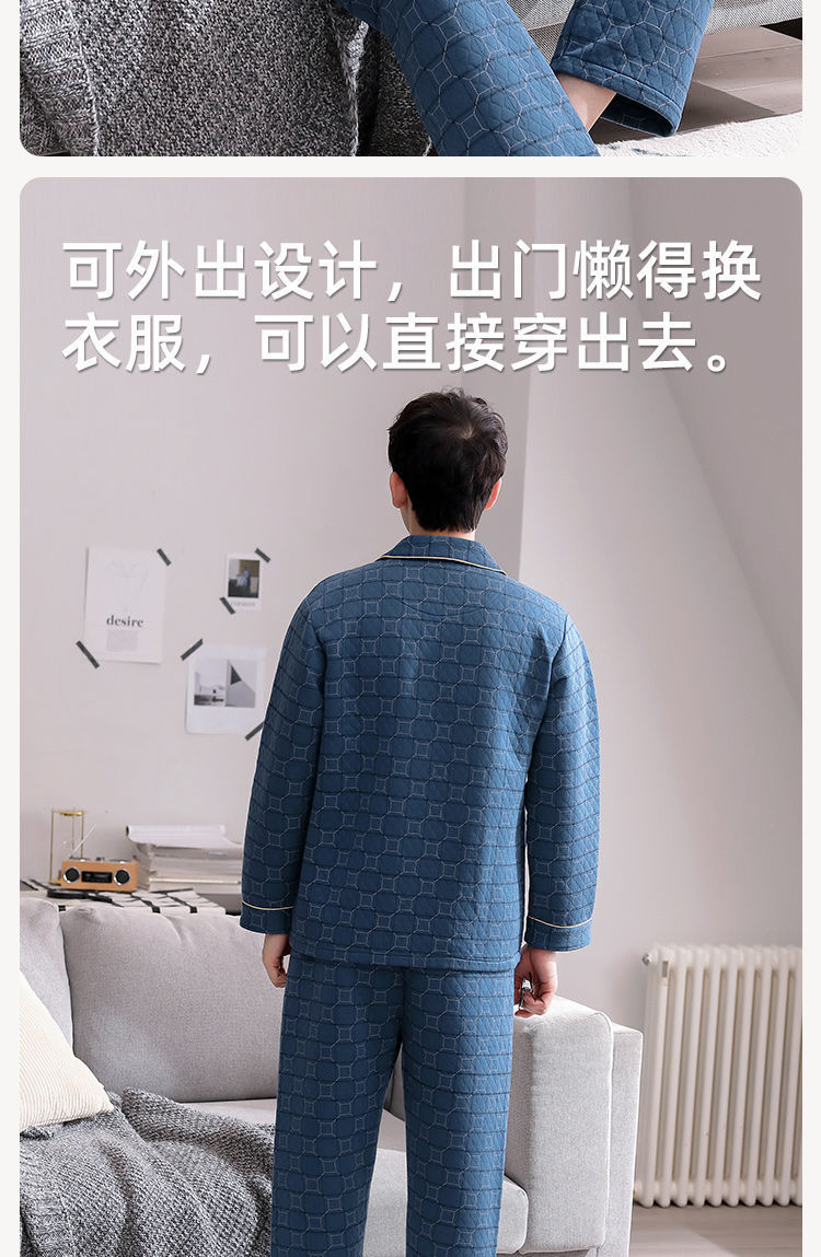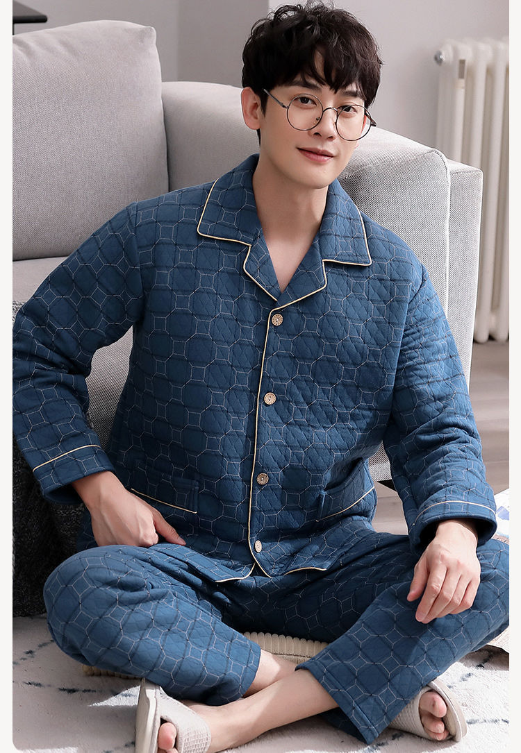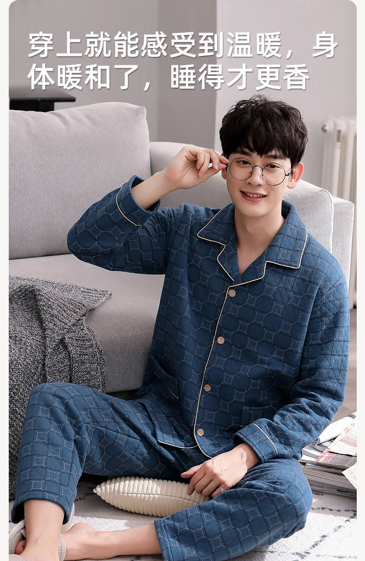 Algodón aire pijama de algodón hombre otoño y invierno intercalado de algodón grueso intercalado de tamaño grande conjunto de ropa de casa de hombre