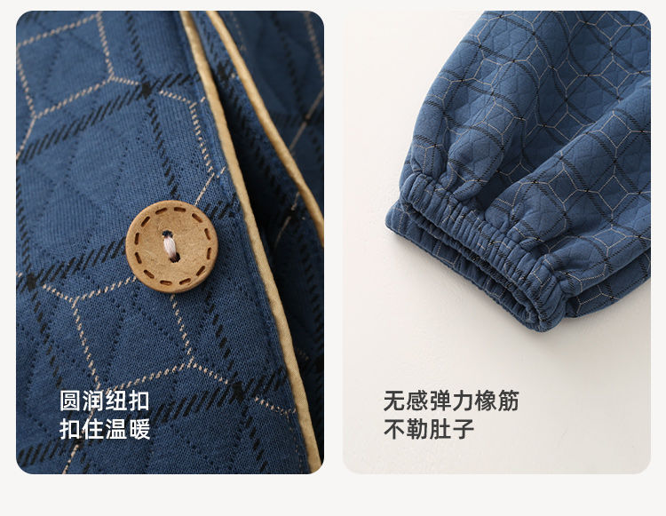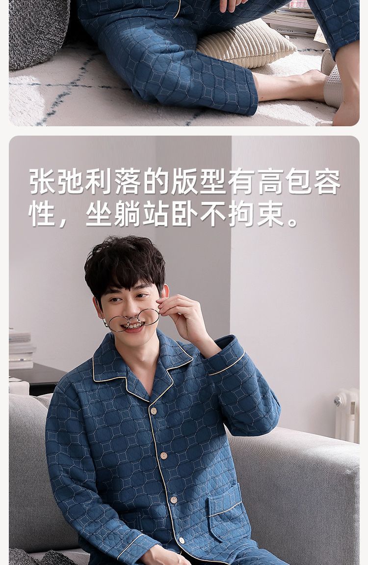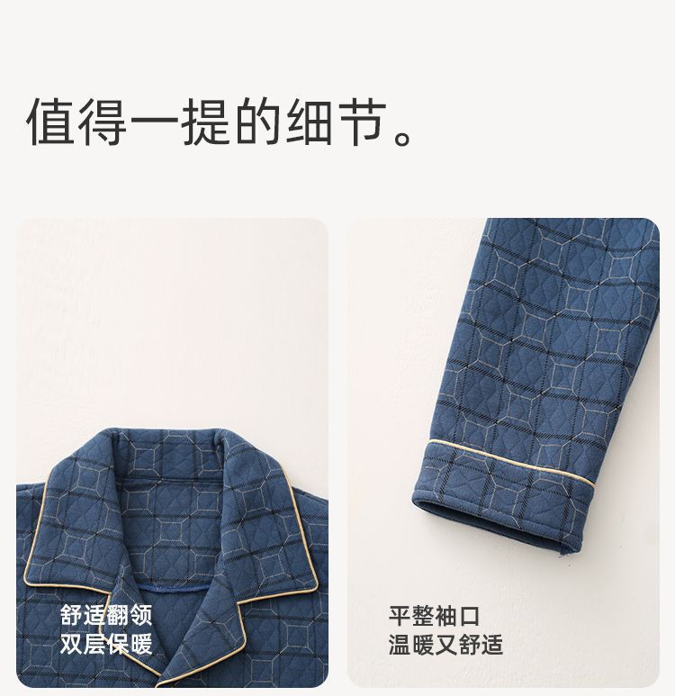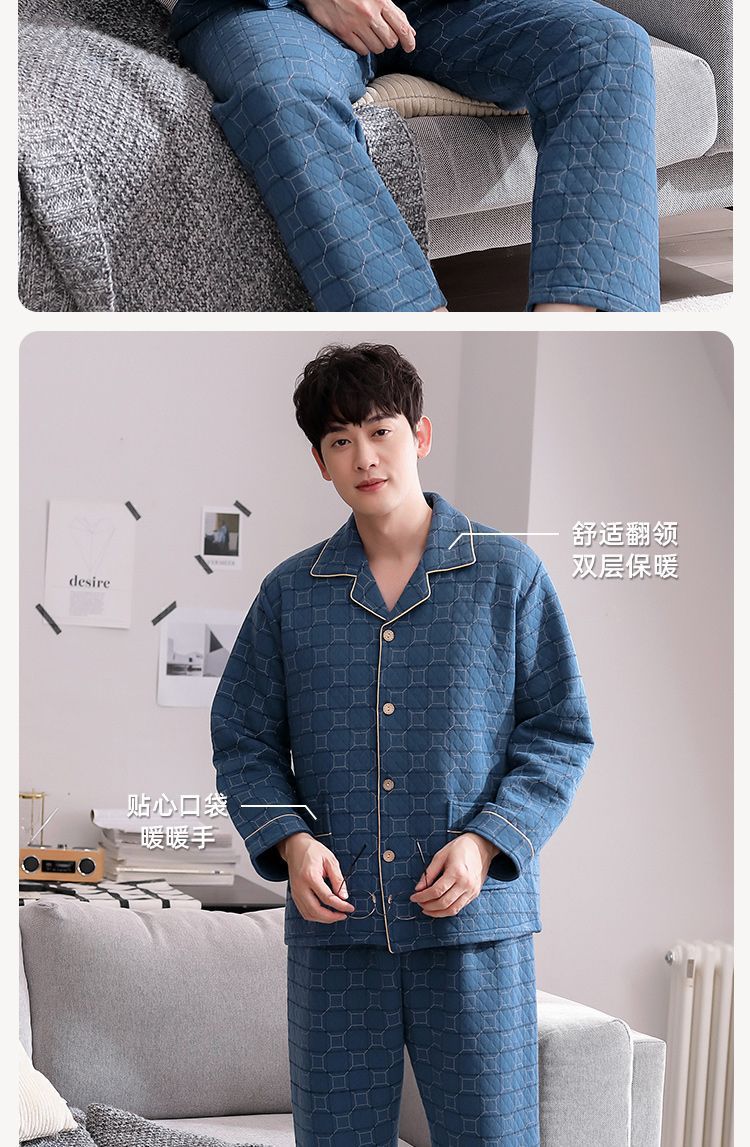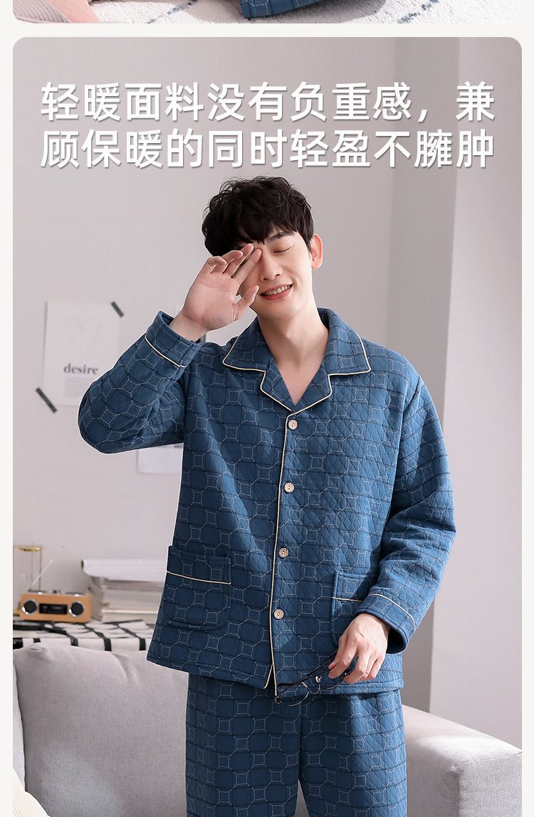 Algodón aire pijama de algodón hombre otoño y invierno intercalado de algodón grueso intercalado de tamaño grande conjunto de ropa de casa de hombre