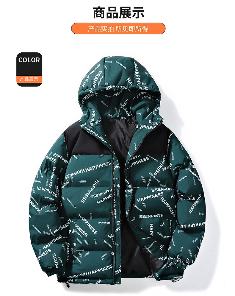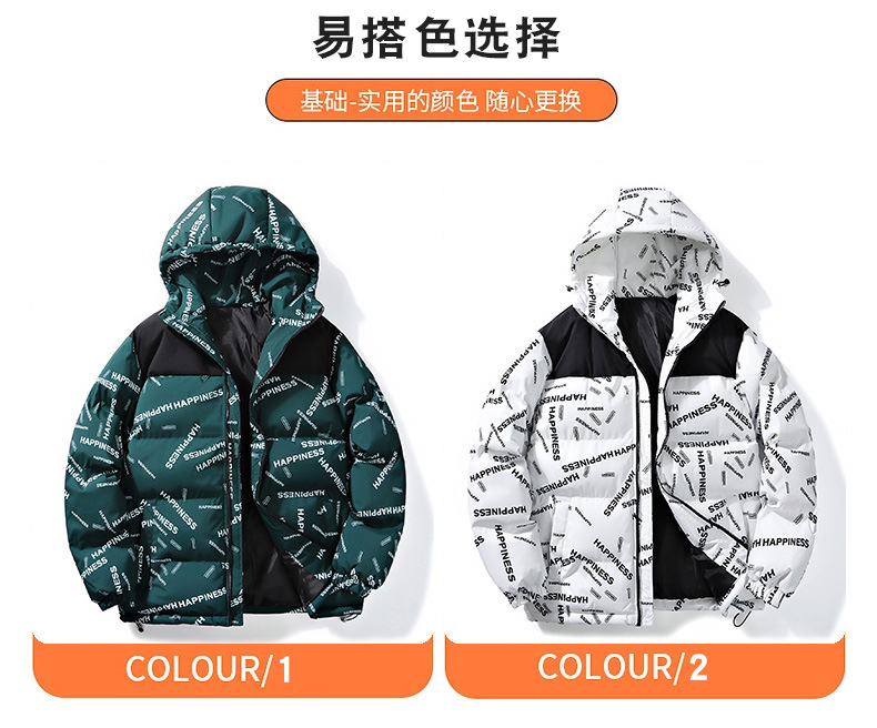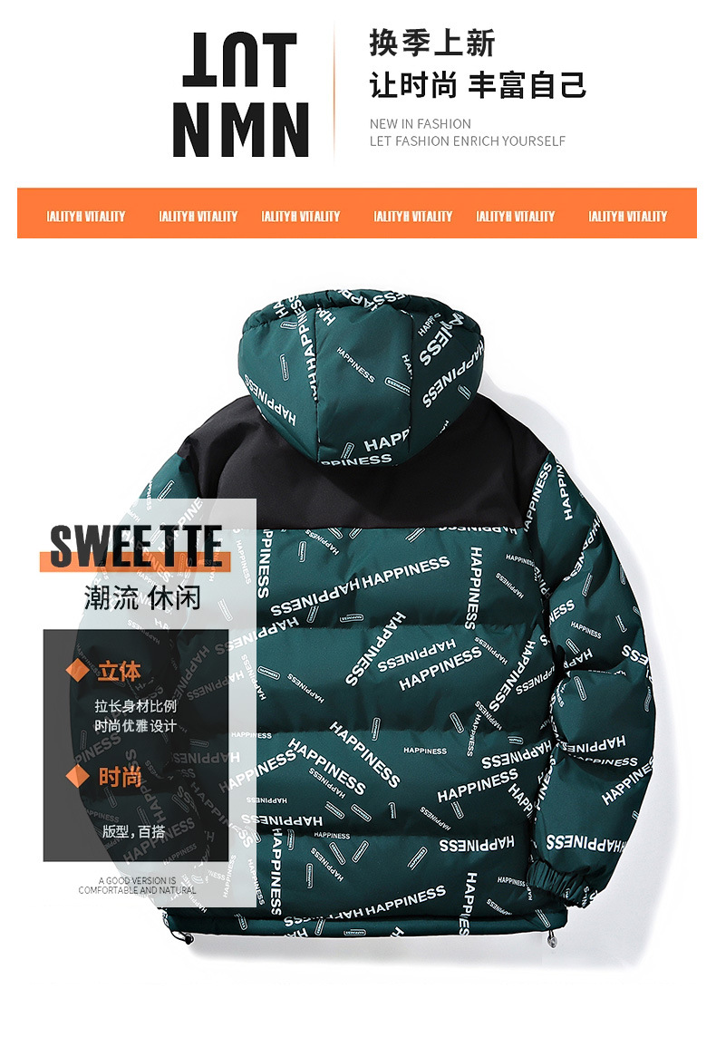 Hombre encapuchado algodón hombre invierno engrosado 2024 impresión chaqueta de algodón chaqueta gran fábrica de algodón suelto al por mayor