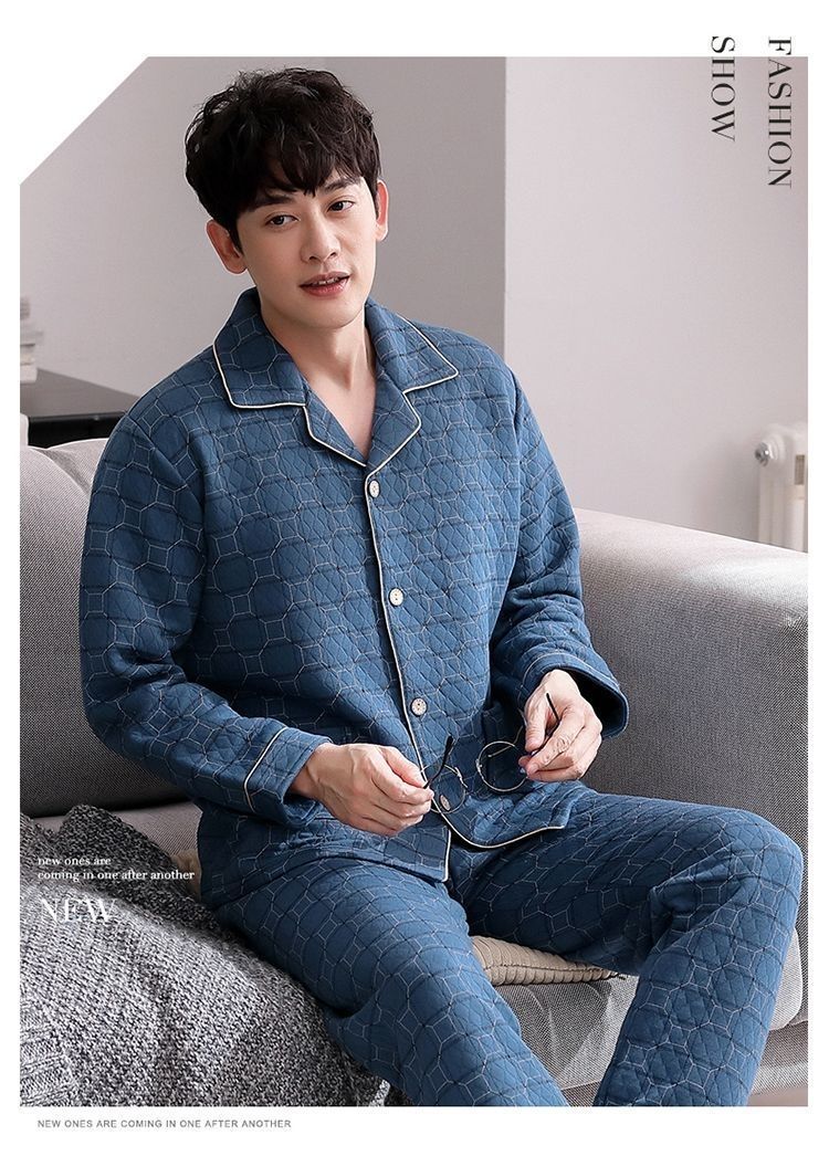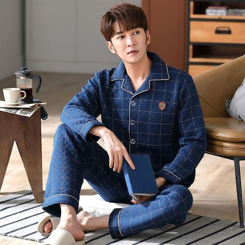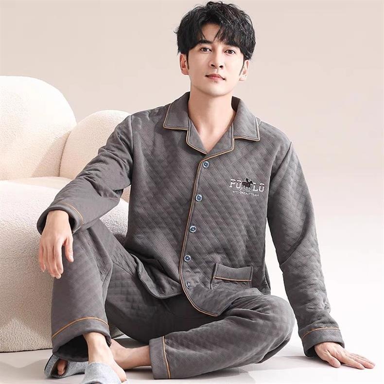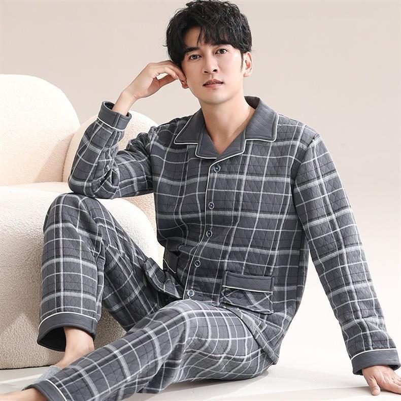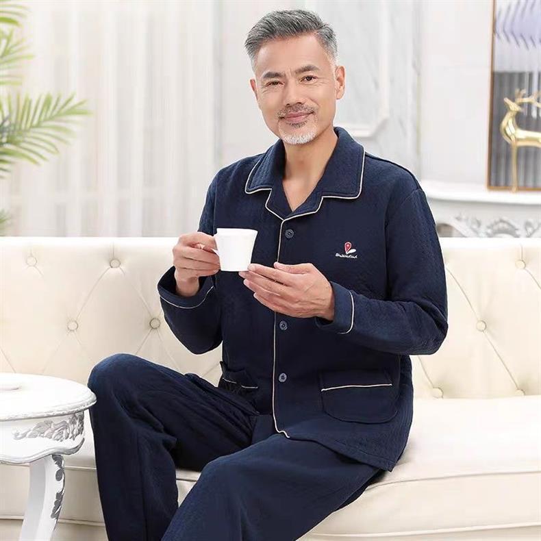 Lujo ligero invierno de invierno de algodón de mediana edad aire de algodón intercalado pijama de hombre conjunto de ropa para el hogar