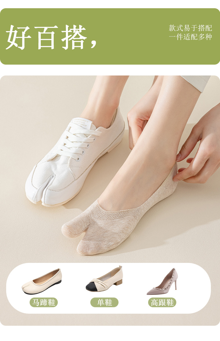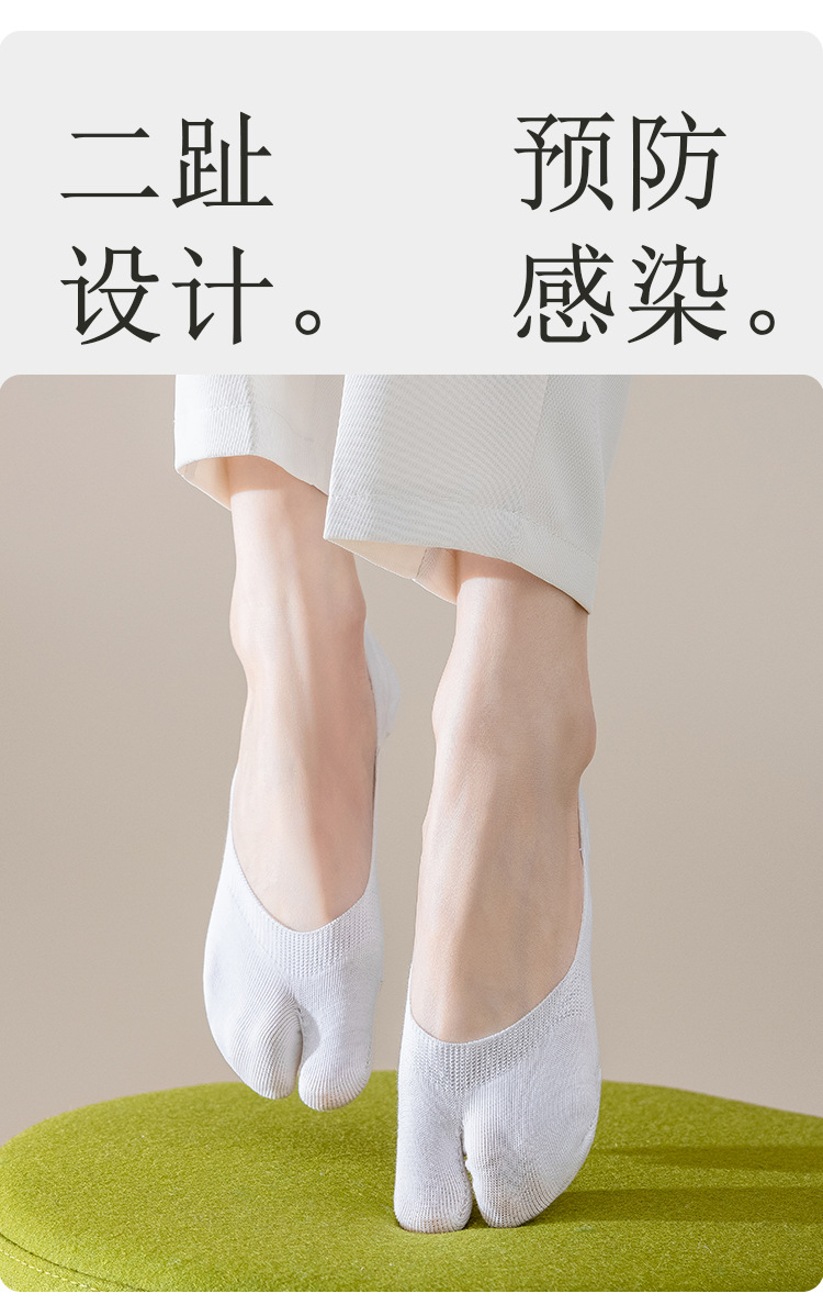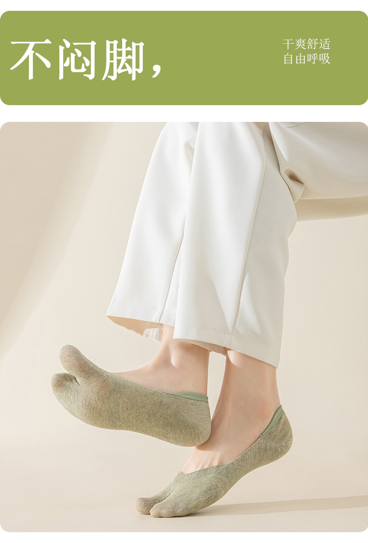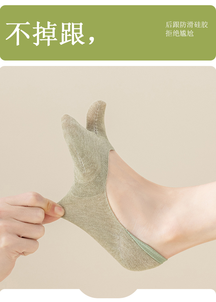 Calcetines de dos dedos Calcetines de verano para mujer, transpirables y absorbentes de sudor, calcetines invisibles de boca baja, calcetines antideslizantes de silicona finos