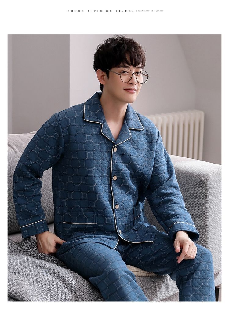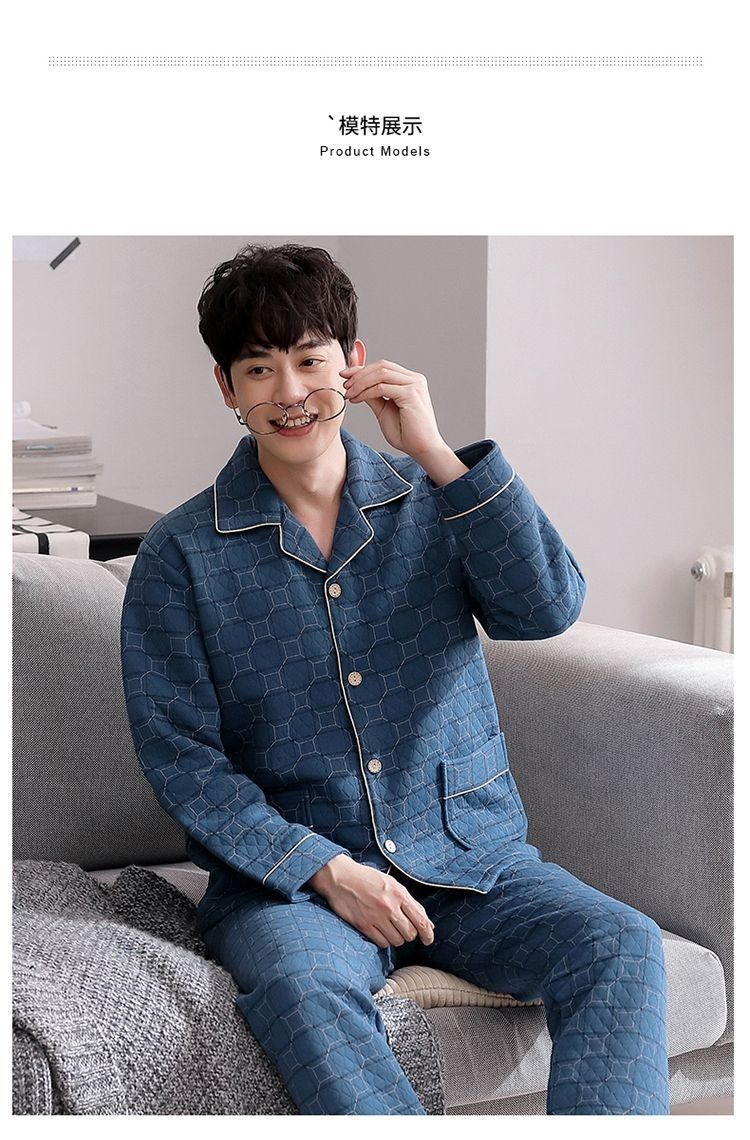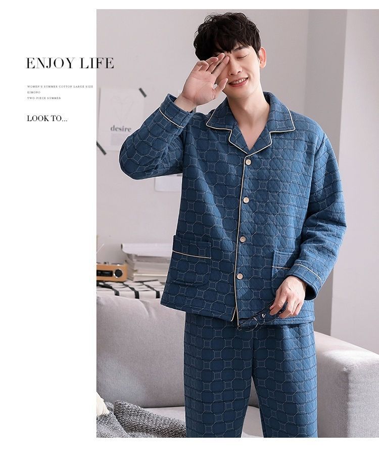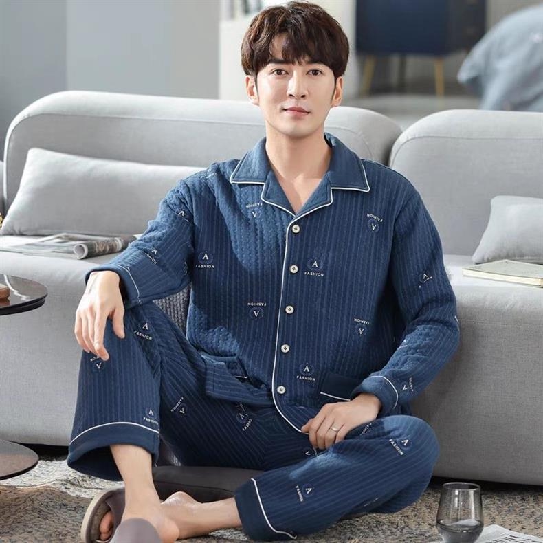 Pajamas de algodón para hombres en invierno engrosado de tamaño grande aire caliente algodón intercalado conjunto de ropa para el hogar