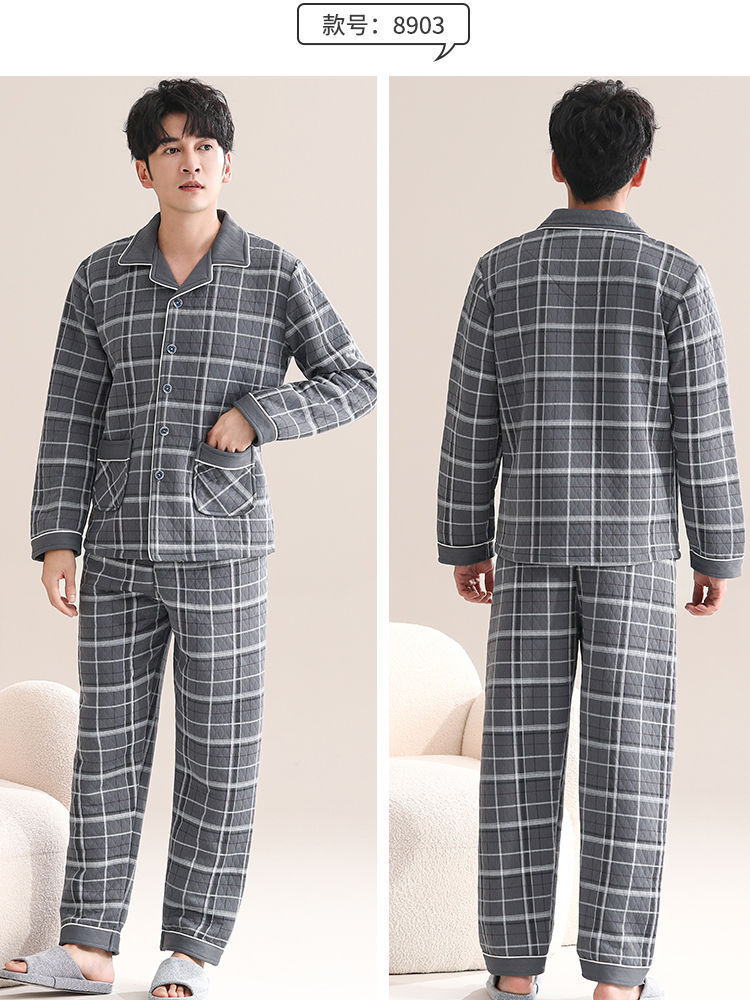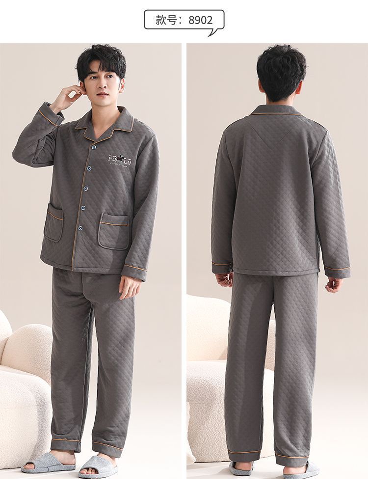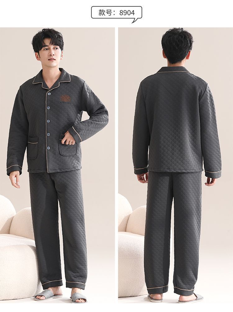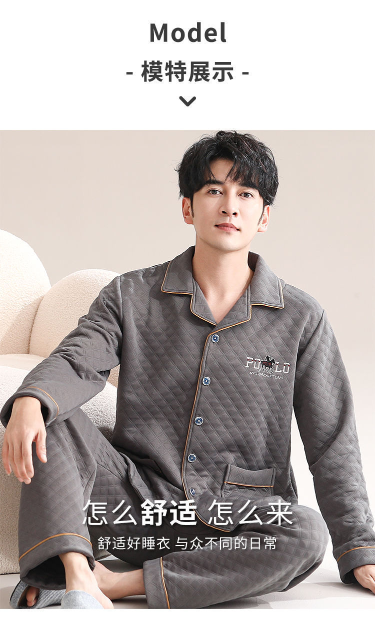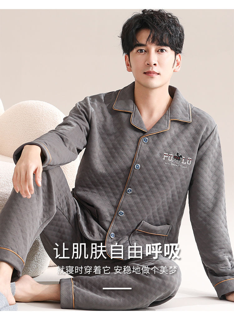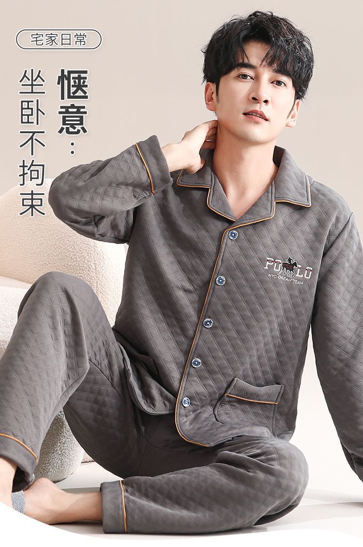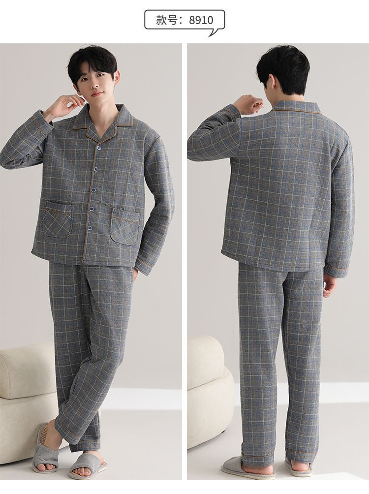 Pijamas de algodón para hombres de manga larga primavera y otoño delgada intercalación casual ropa de hogar suelta primavera y otoño
