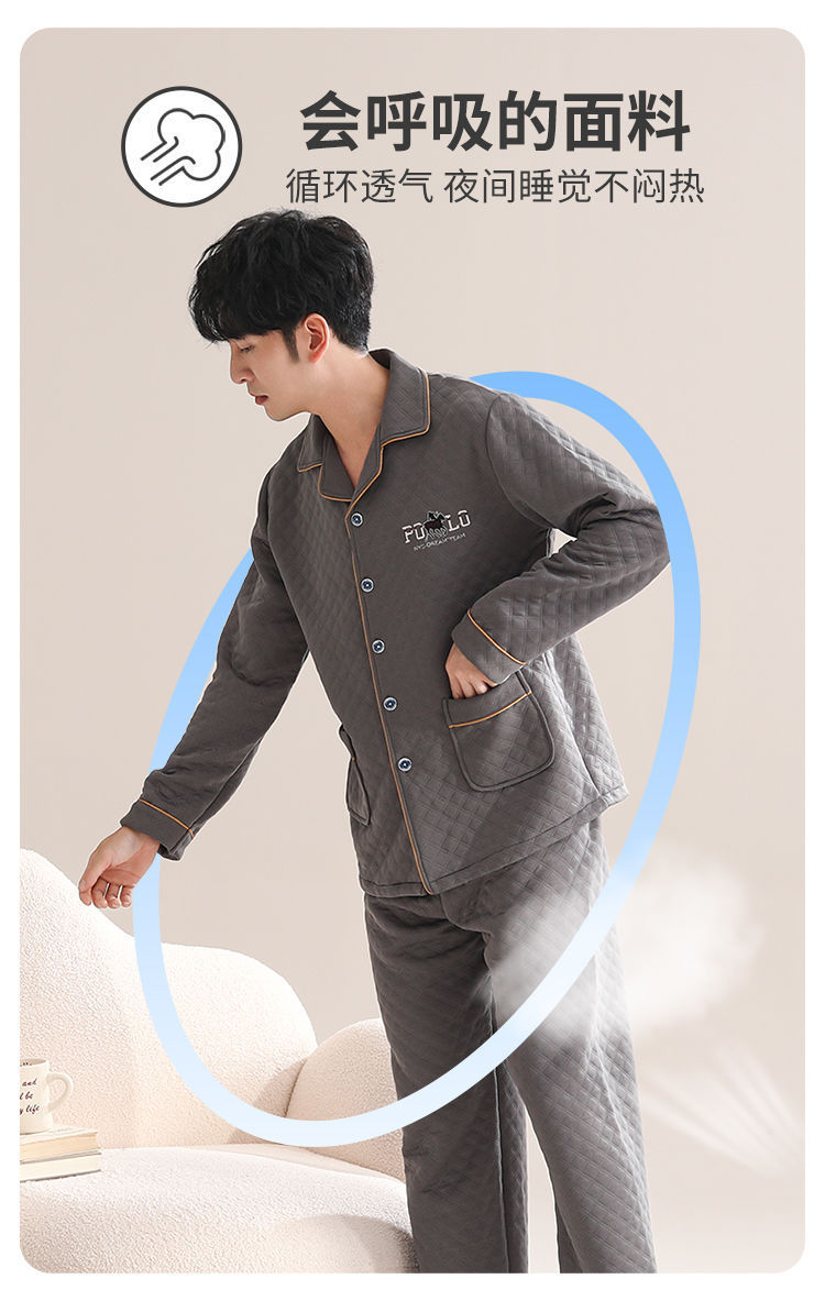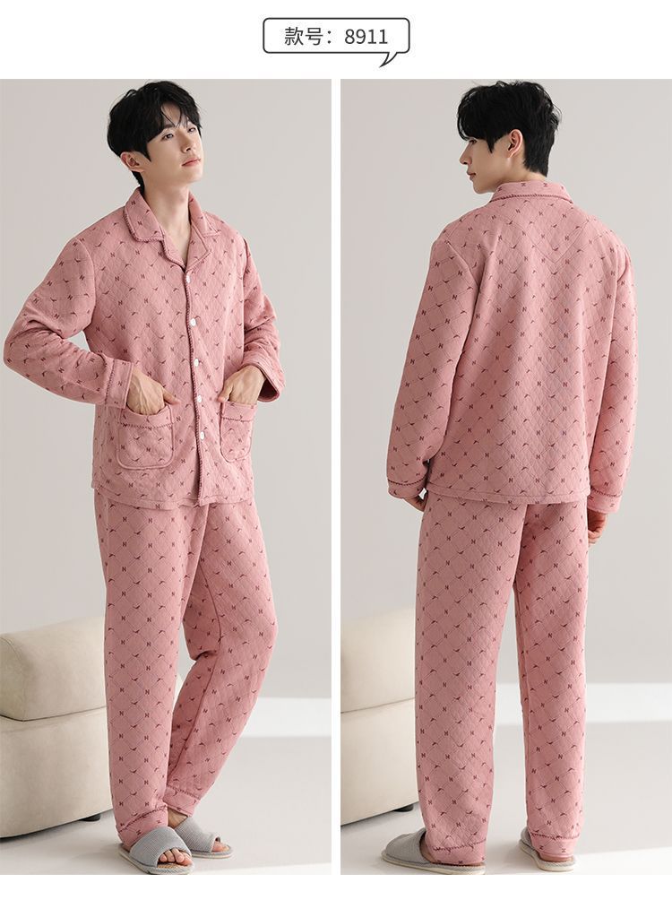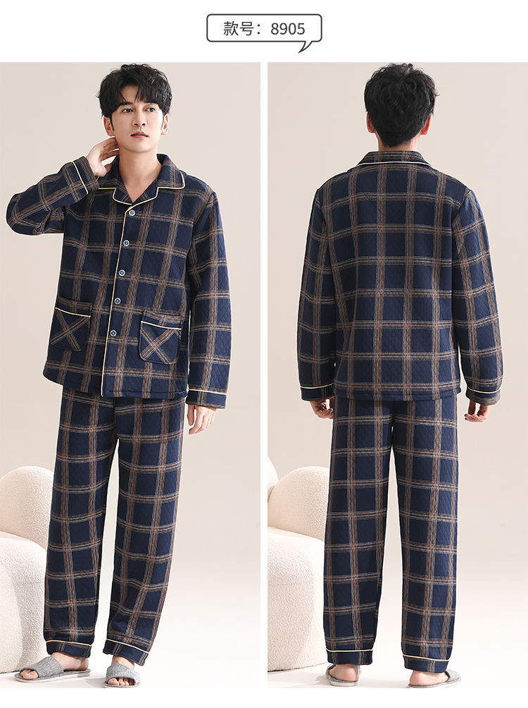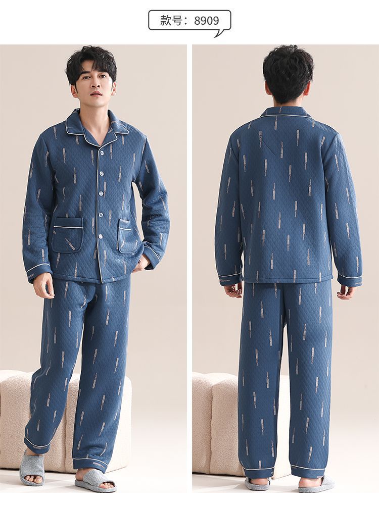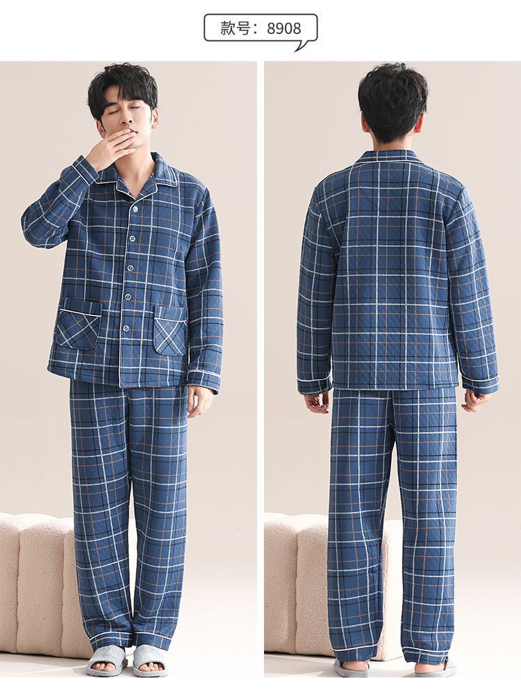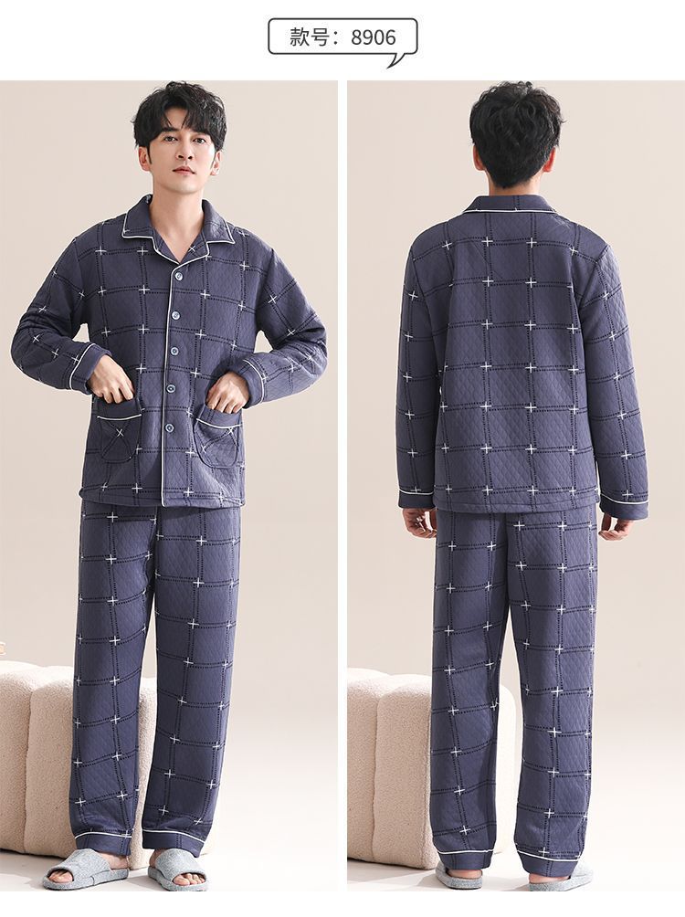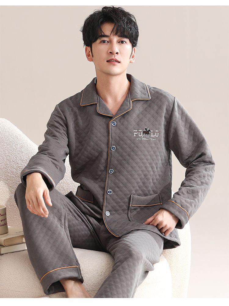 Pijamas de algodón para hombres de manga larga primavera y otoño delgada intercalación casual ropa de hogar suelta primavera y otoño
