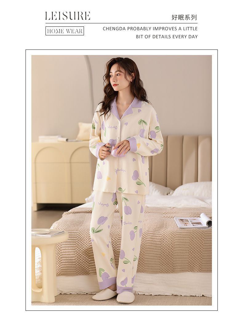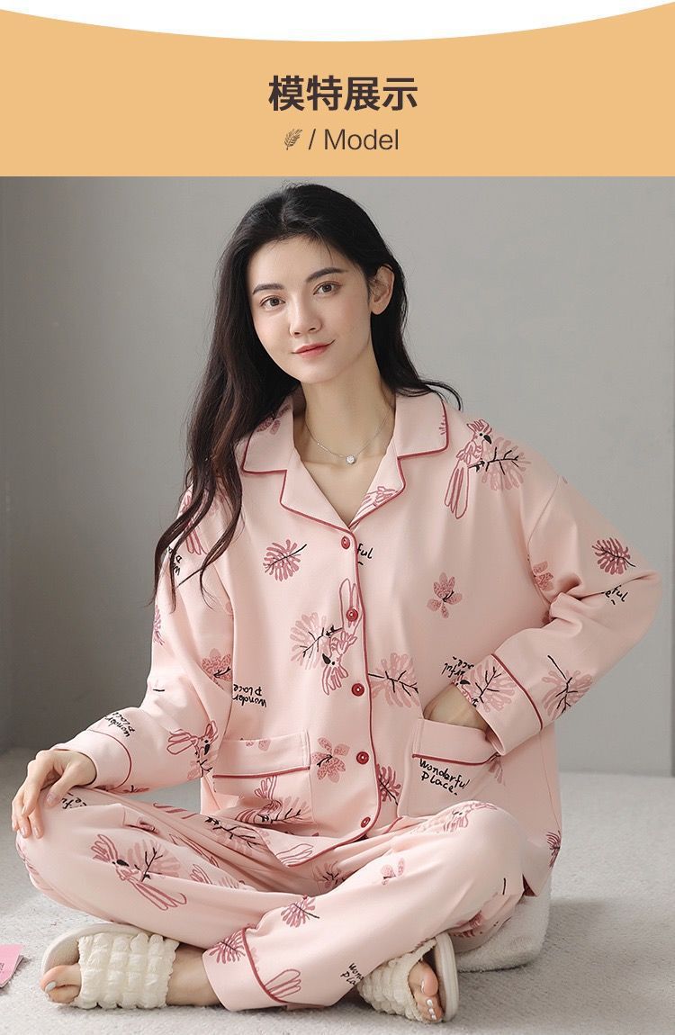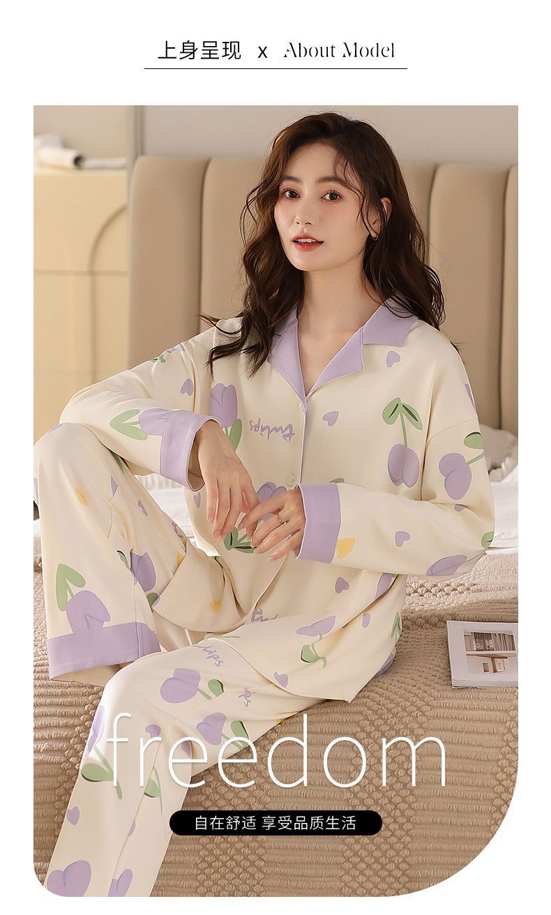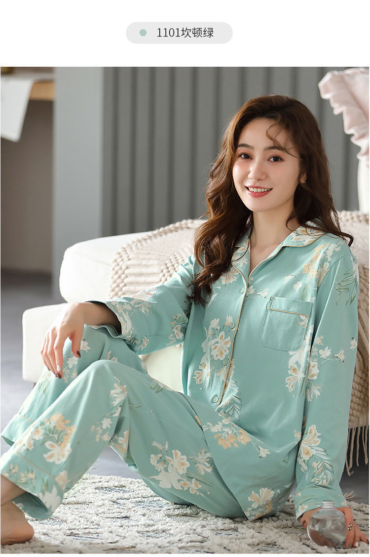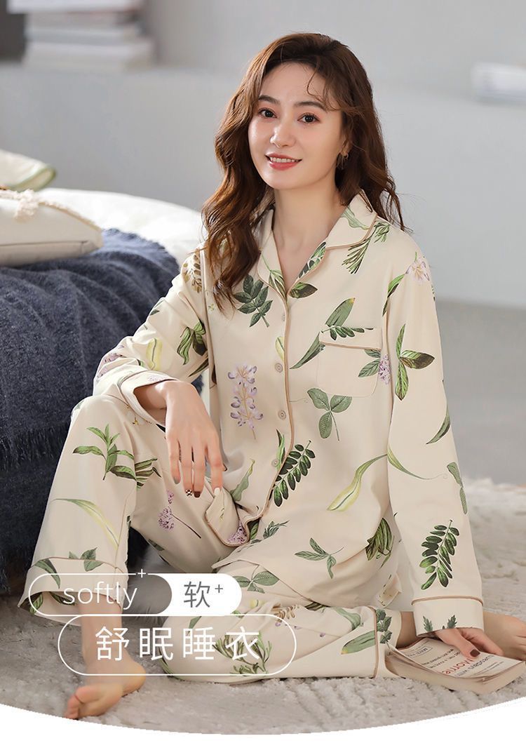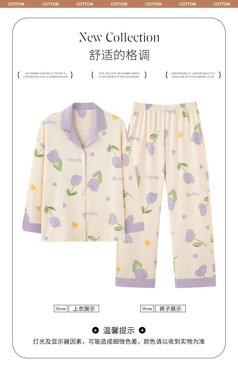 Algodón madres de mediana edad pijamas mujeres 2024 primavera y otoño nuevo cardigan de manga larga dibujos animados ropa de casa grande set