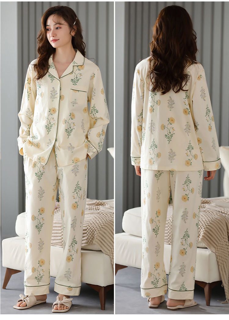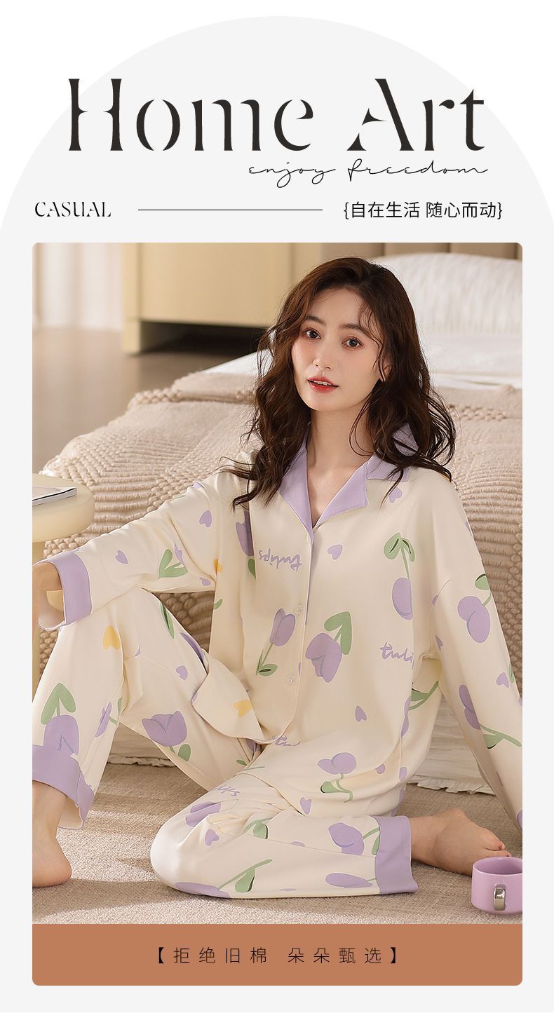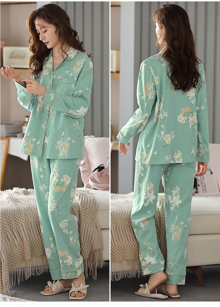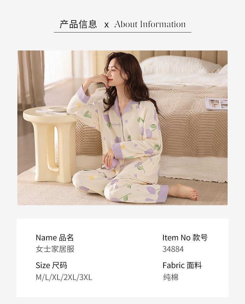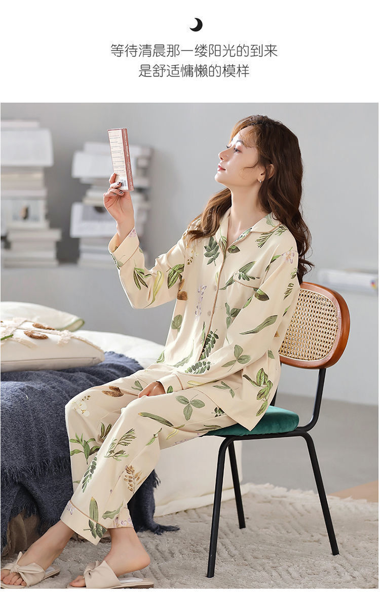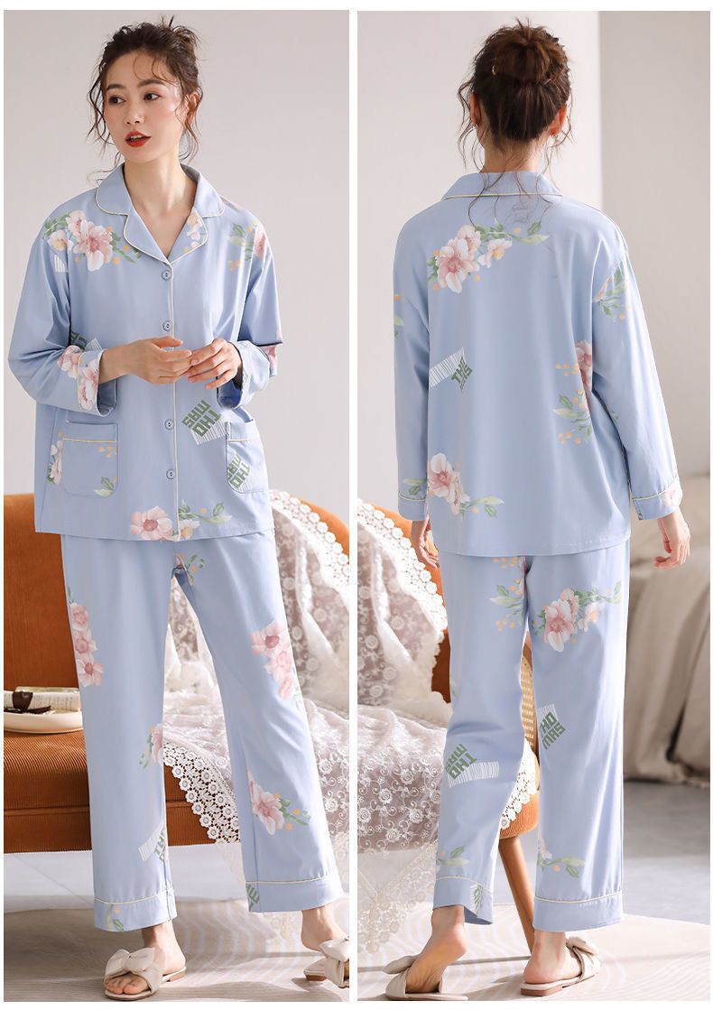 Algodón madres de mediana edad pijamas mujeres 2024 primavera y otoño nuevo cardigan de manga larga dibujos animados ropa de casa grande set
