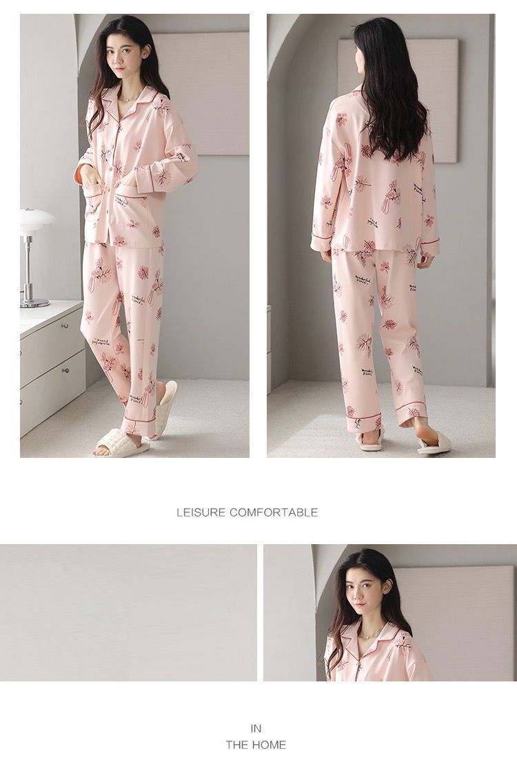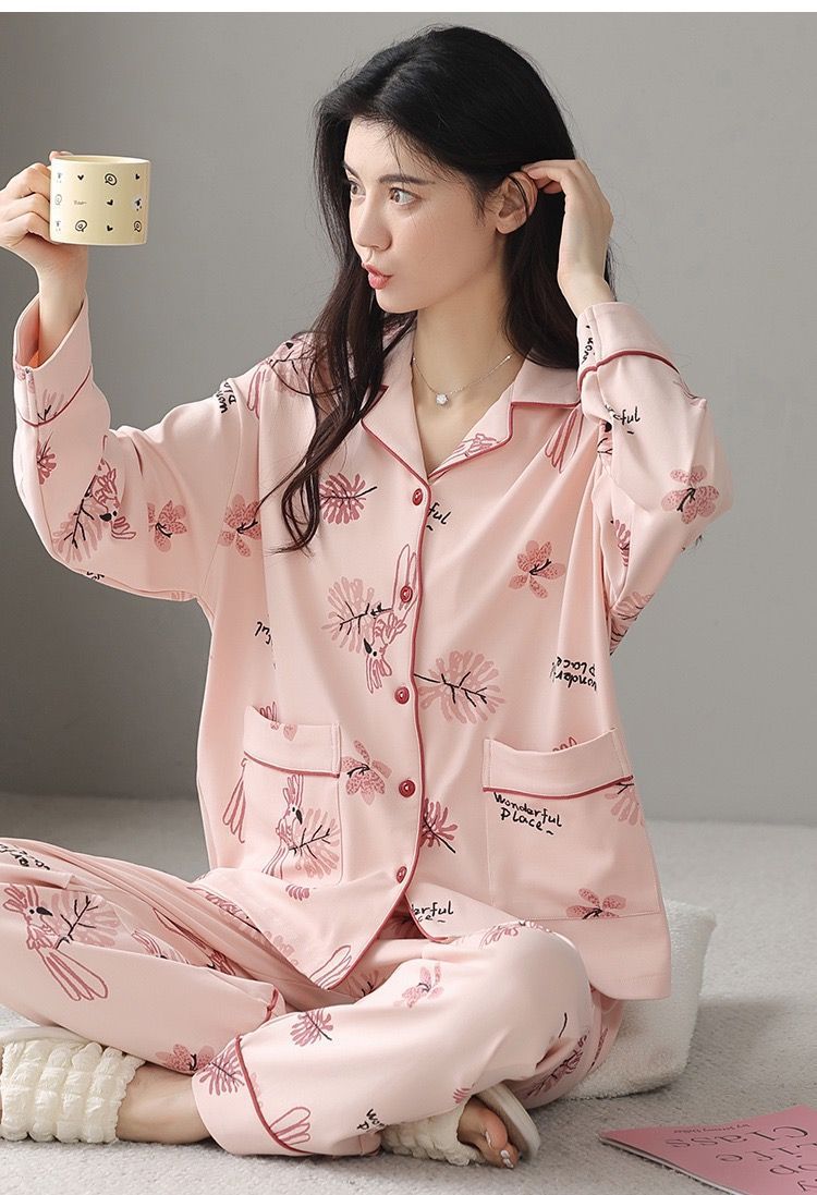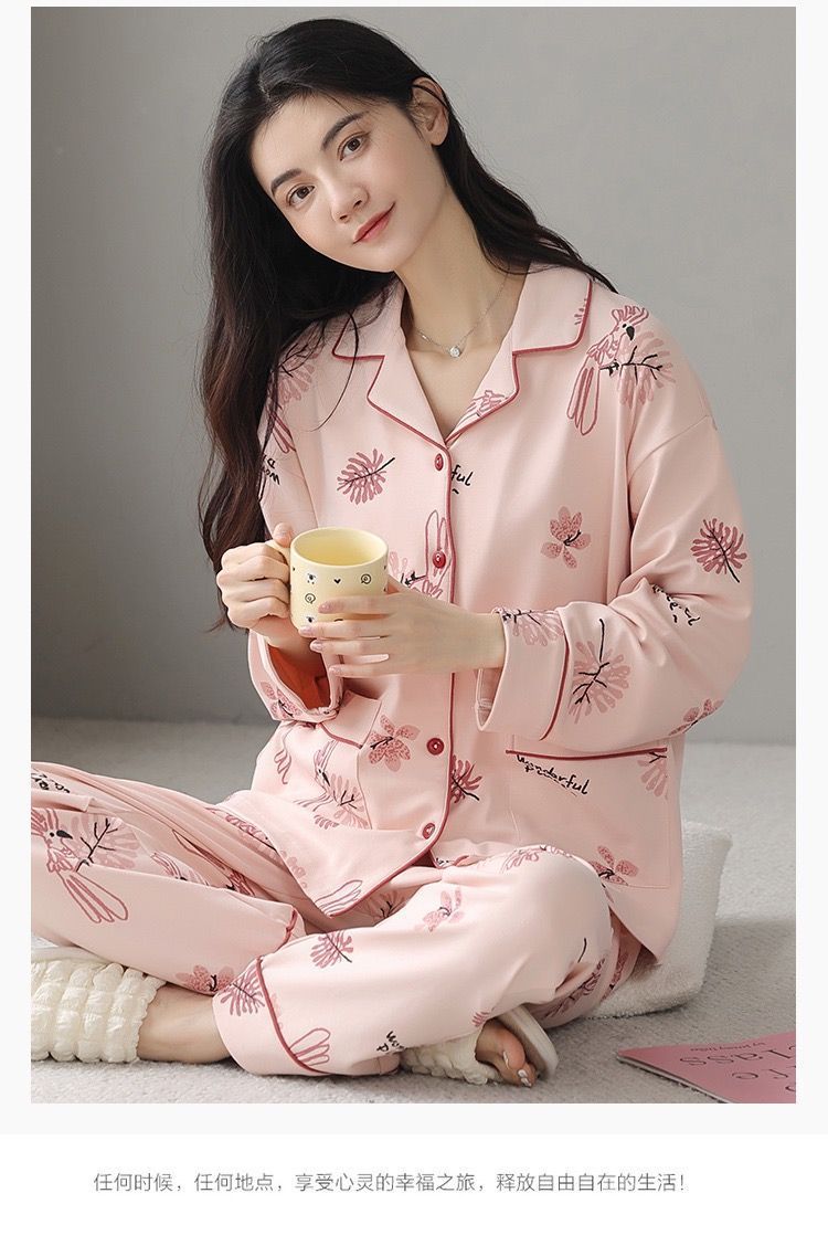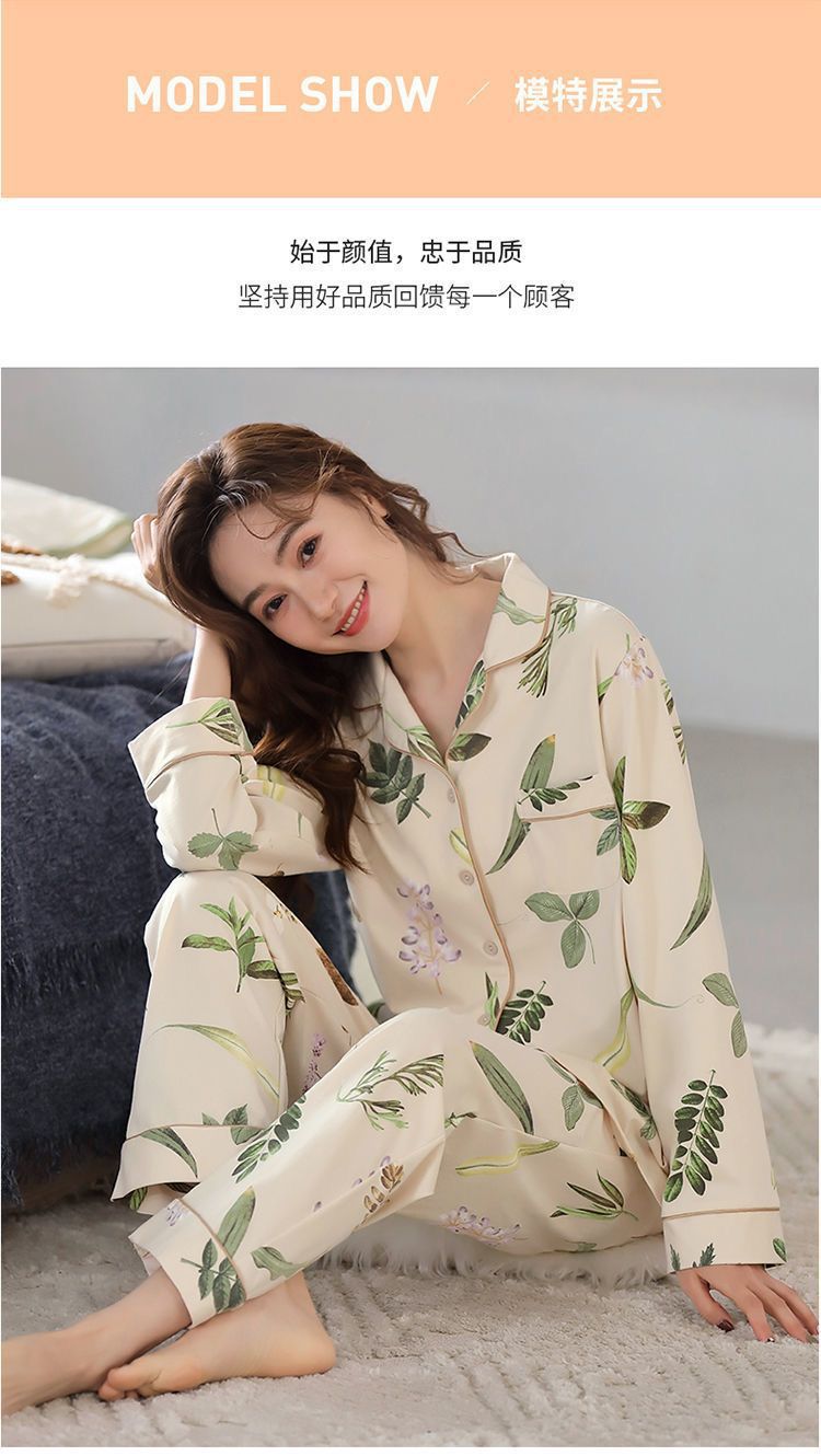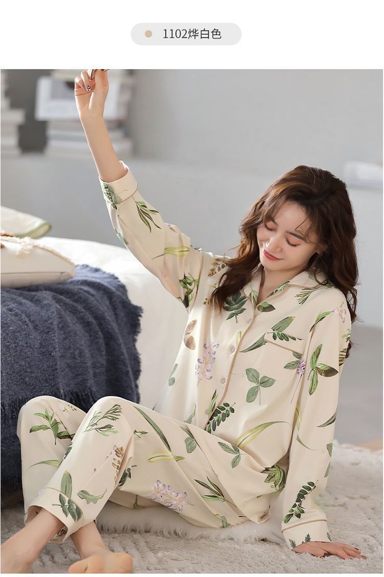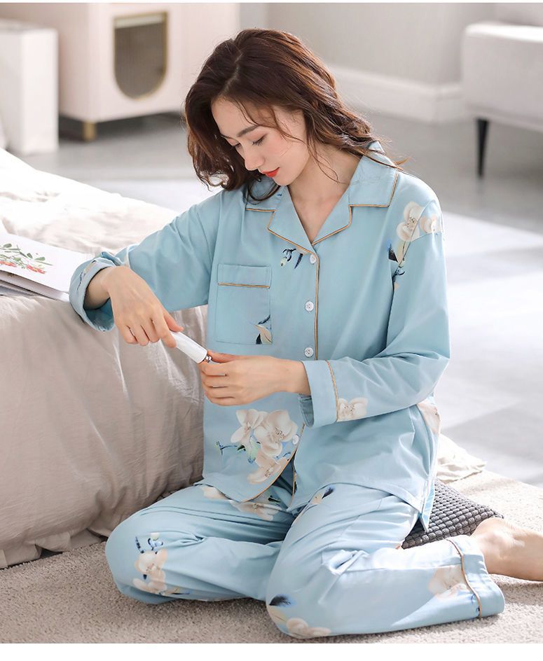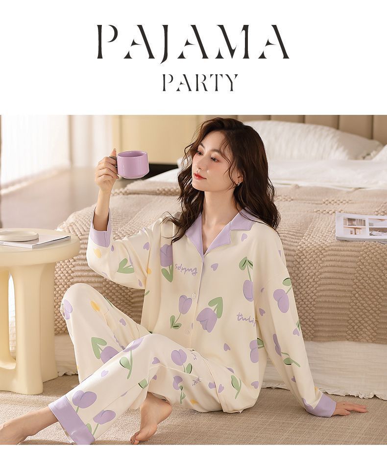Algodón madres de mediana edad pijamas mujeres 2024 primavera y otoño nuevo cardigan de manga larga dibujos animados ropa de casa grande set