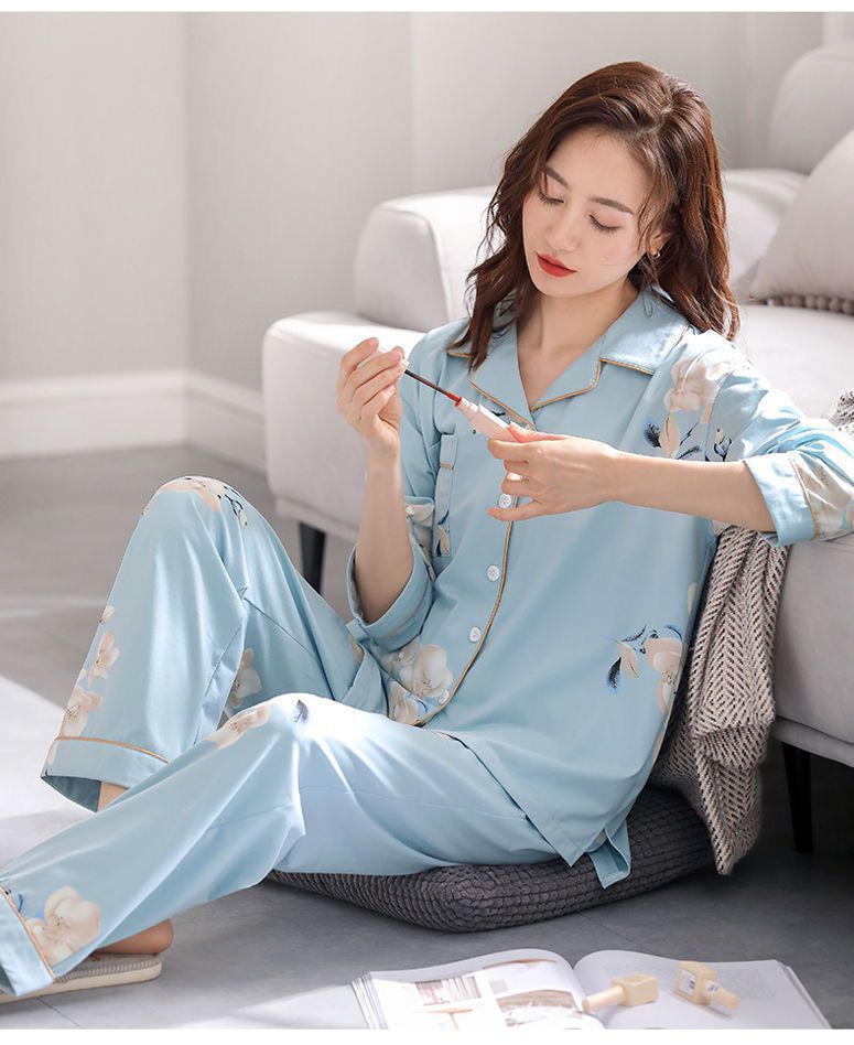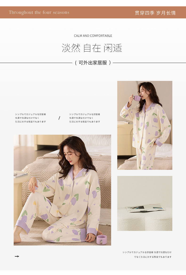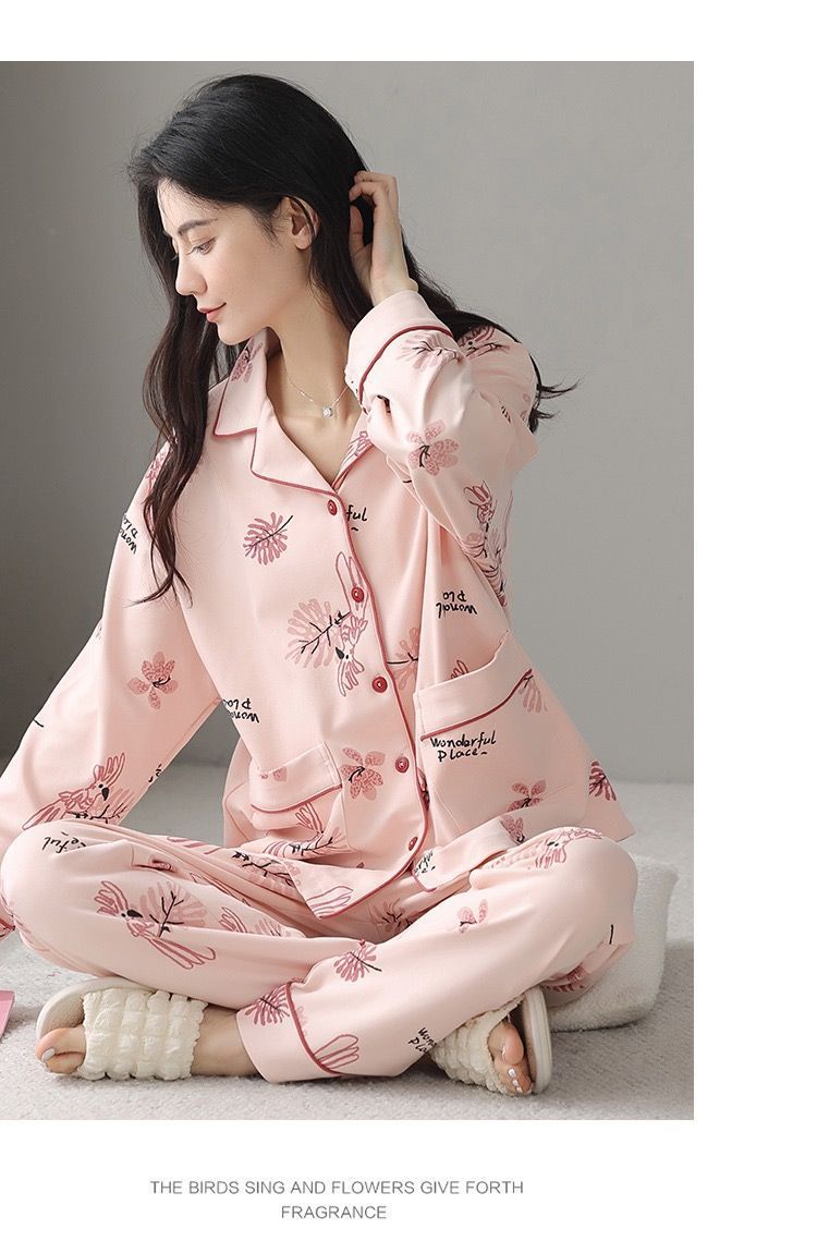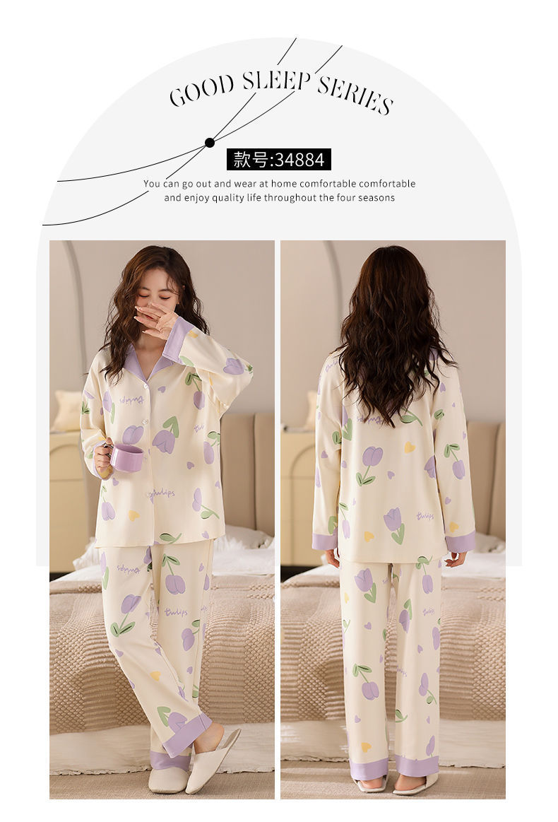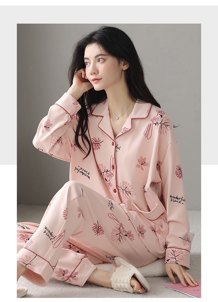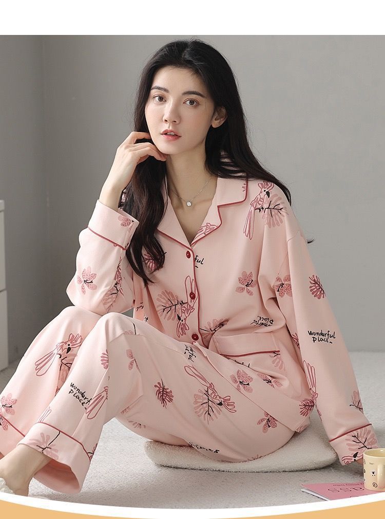 Algodón madres de mediana edad pijamas mujeres 2024 primavera y otoño nuevo cardigan de manga larga dibujos animados ropa de casa grande set