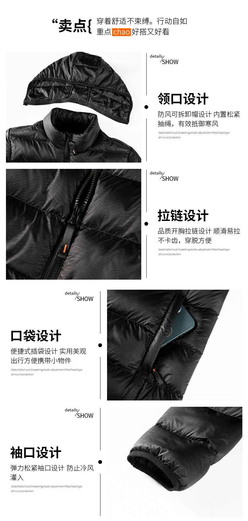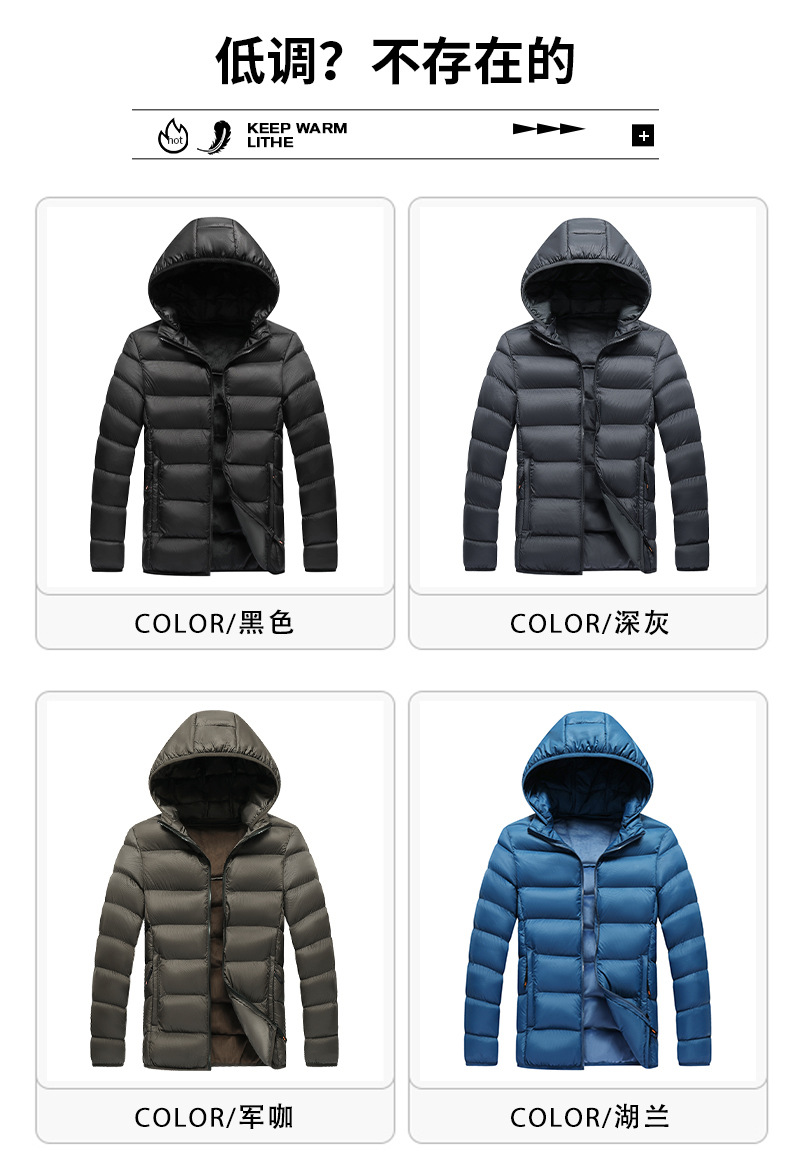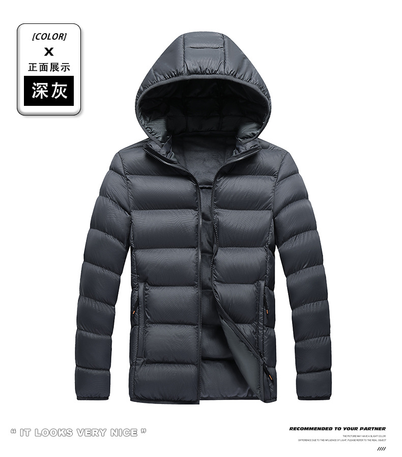 Ropa de algodón transfronteriza de hombre Europa y América simple casual ligera ropa de hombre de color sólido chaqueta con capuchón hombre corto de algodón