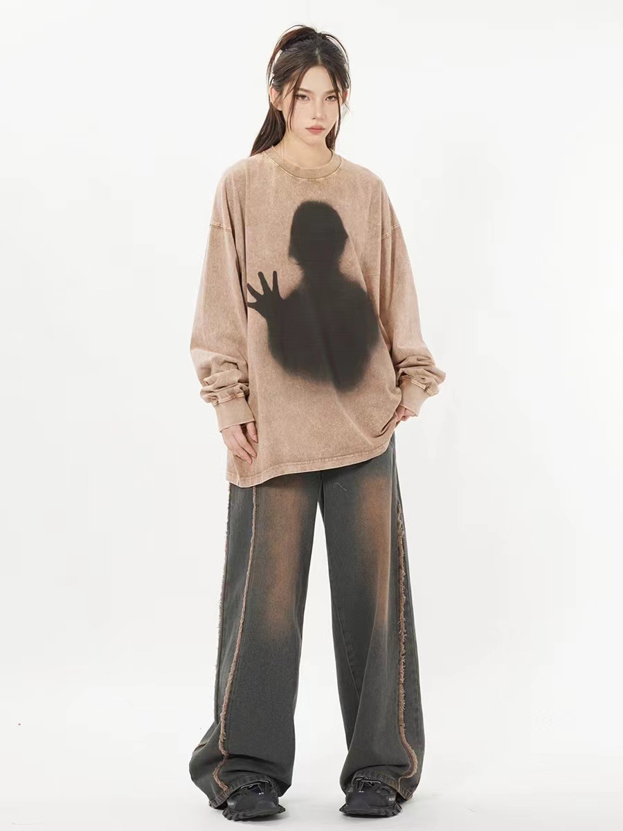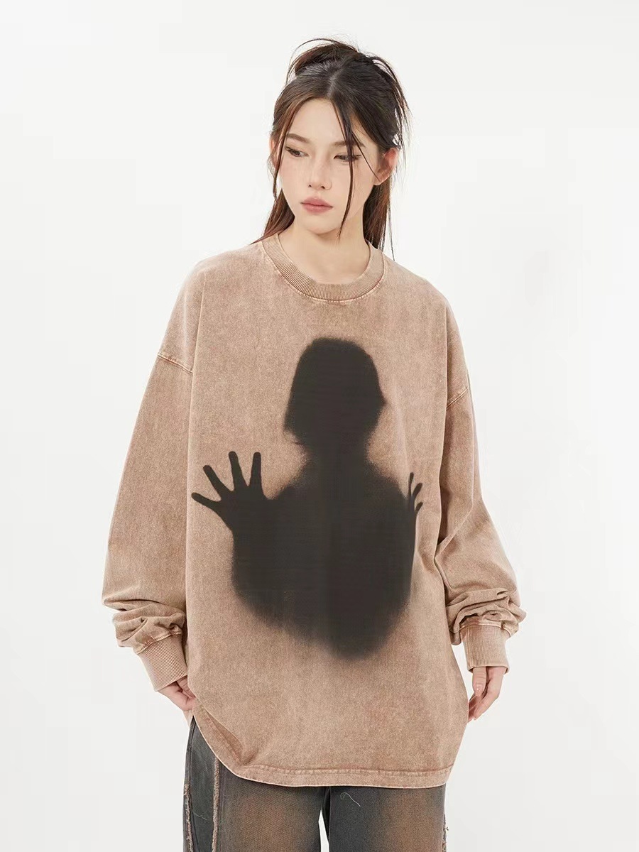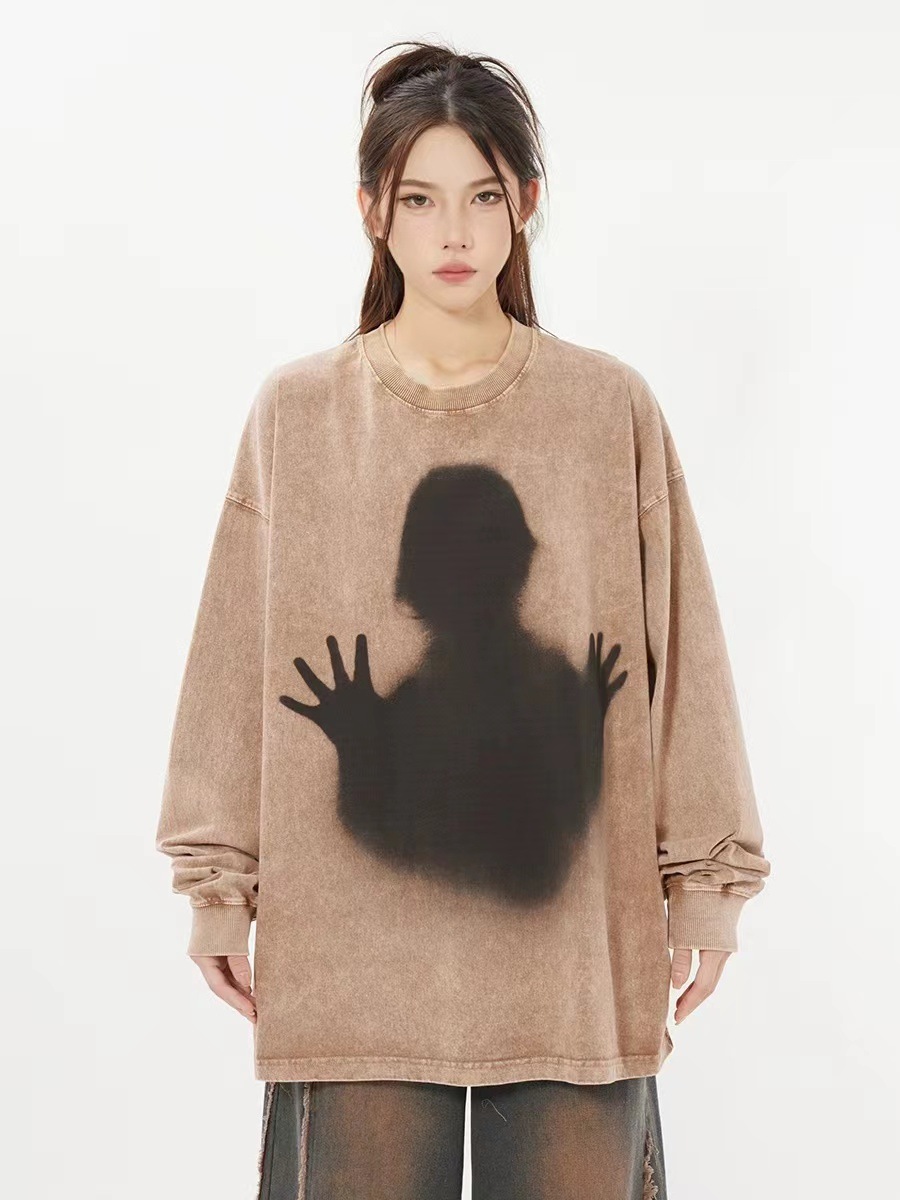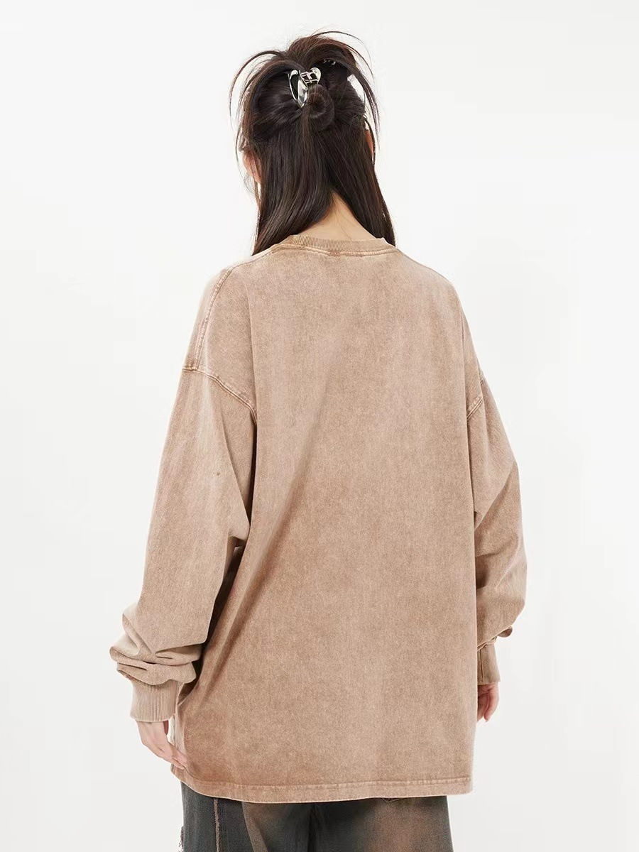 Comercio exterior hace viejas camisetas de manga larga para hombres de verano nuevo cuello redondo suelto sobretamaño americano retro in camisas de moda