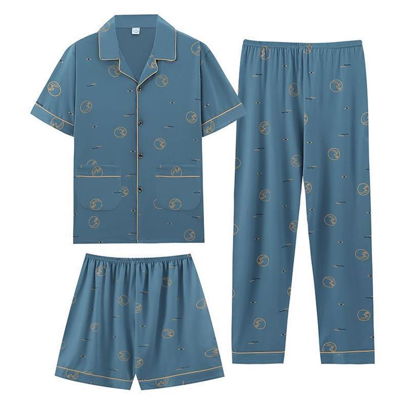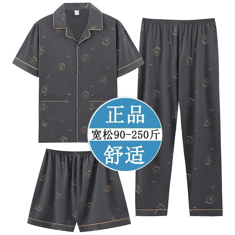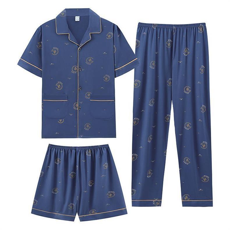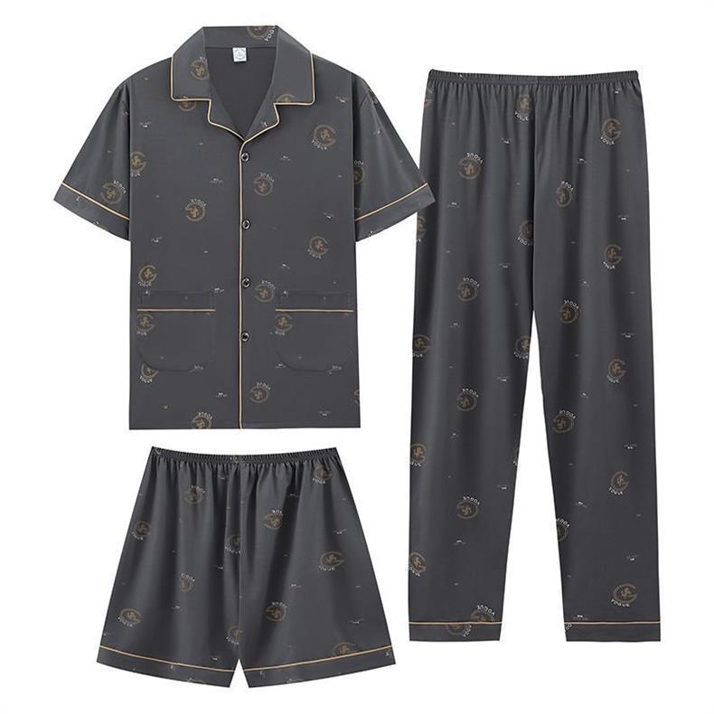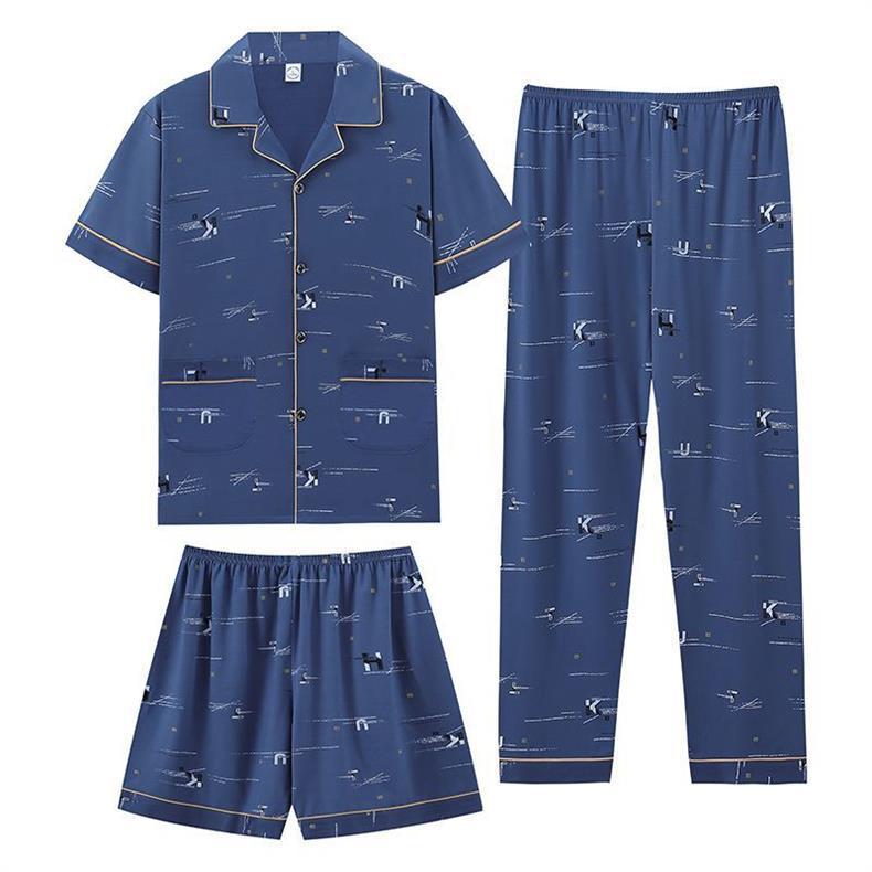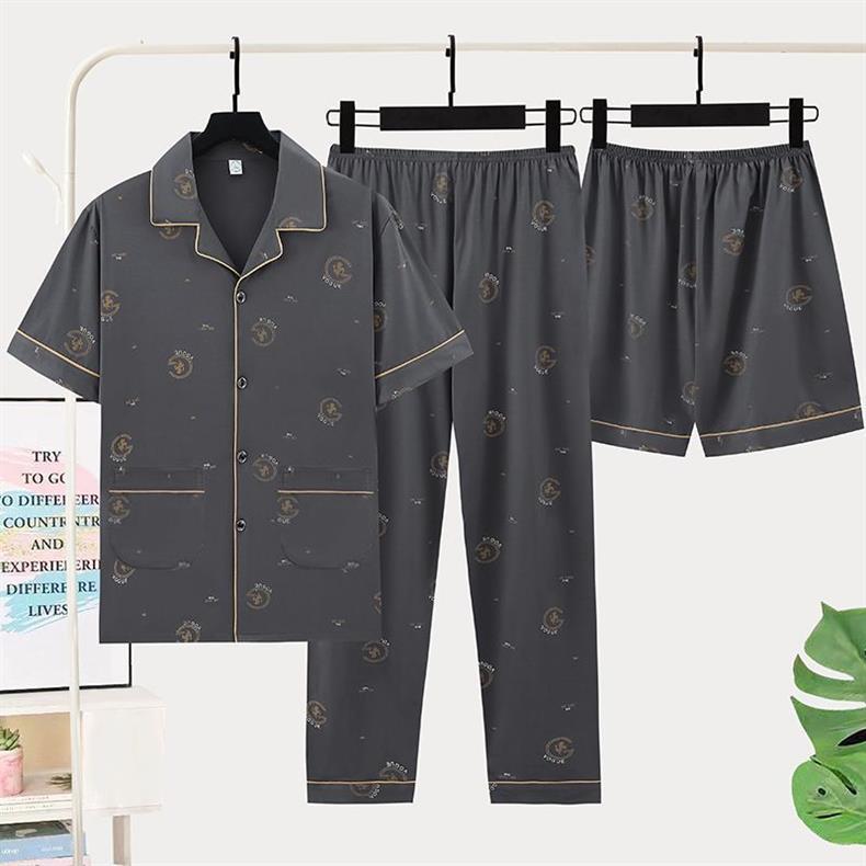 Pajamas de algodón de hombre verano pantalones de manga corta de tres piezas set 2024 nuevo conjunto de ropa casera pantalones cortos delgados tamaño más grande