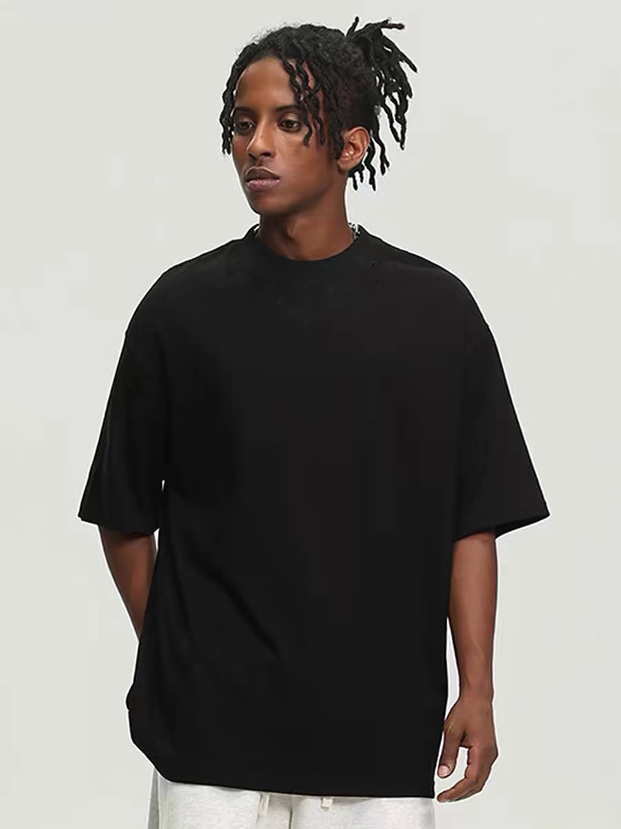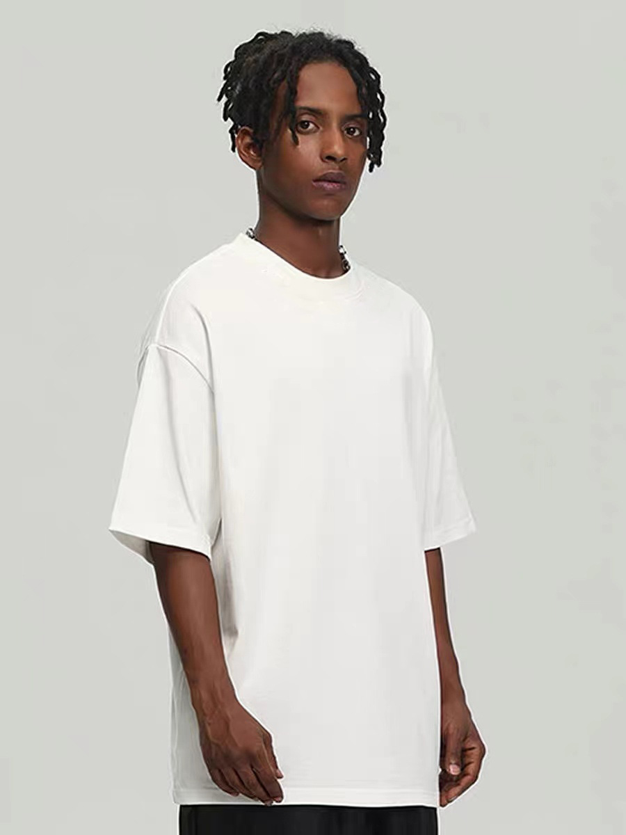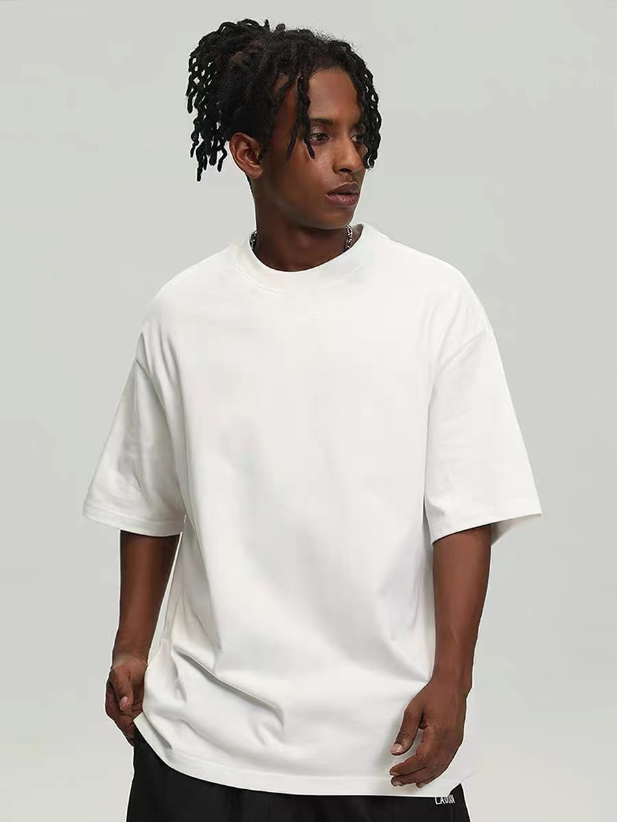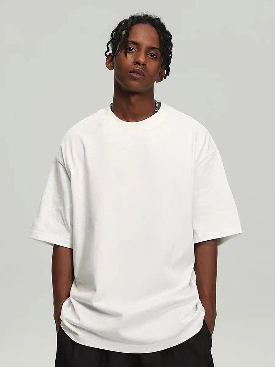 Pesada marca de moda europea y americana de hombro caída camiseta de manga corta para hombres suelta inmes de algodón de gran tamaño pareja camiseta de base