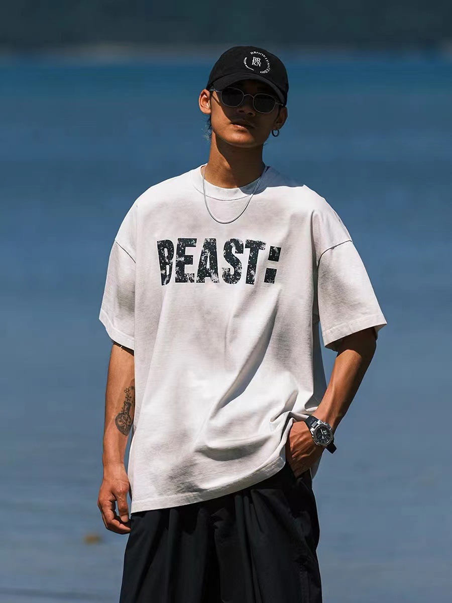 DIY retro spray caballo paseo de agua marca de marea camiseta de manga corta hombre pesado americano suelto pareja de cuello redondo chaqueta