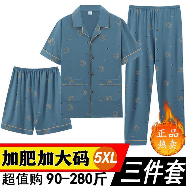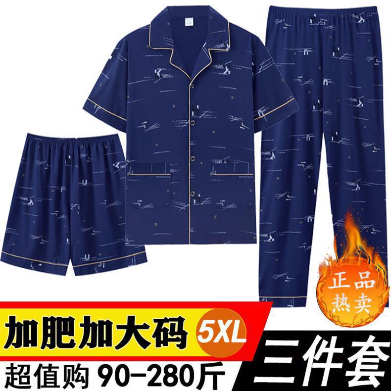 2024 nuevo pijama de algodón masculino primavera y otoño manga larga tres piezas set de mediana edad suelta más grande set de ropa para el hogar