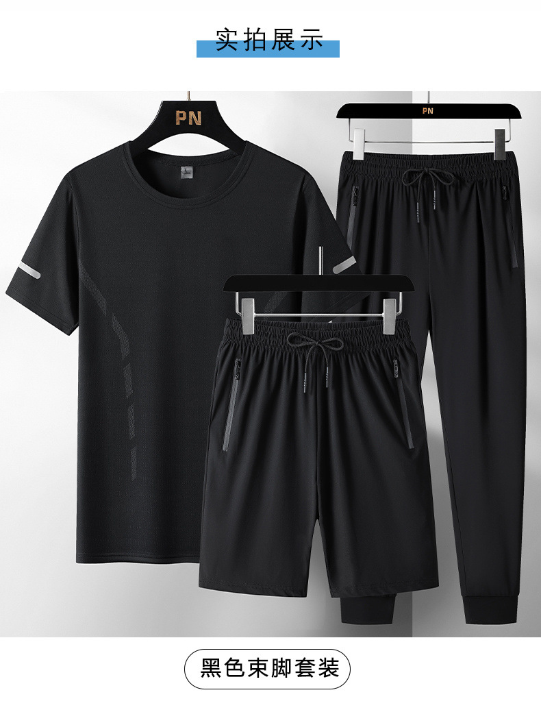 24 verano hielo seda seco rápido juego de camiseta de hielo de manga corta pantalones cortos de secado rápido deportivo dos piezas set fábrica en vivo al por mayor