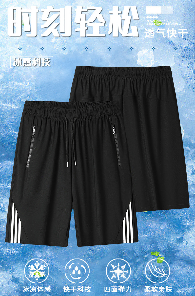 Pantalones cortos de secado rápido de seda de hielo para hombres de verano delgados ociosos transpirables, pantalones cortos deportivos de aire acondicionado secado rápido
