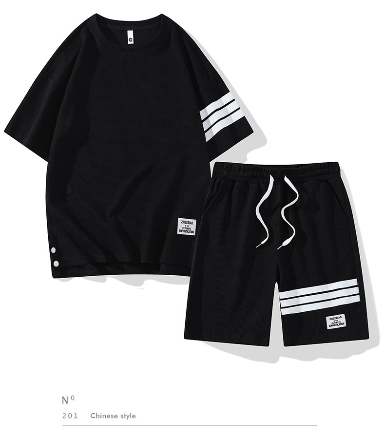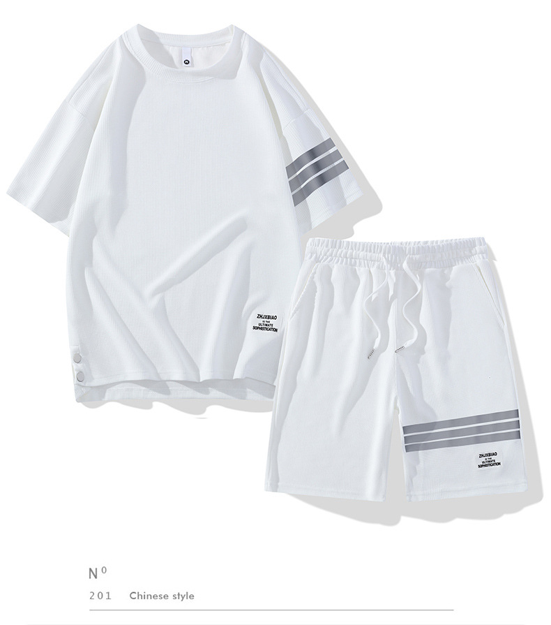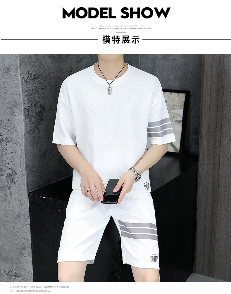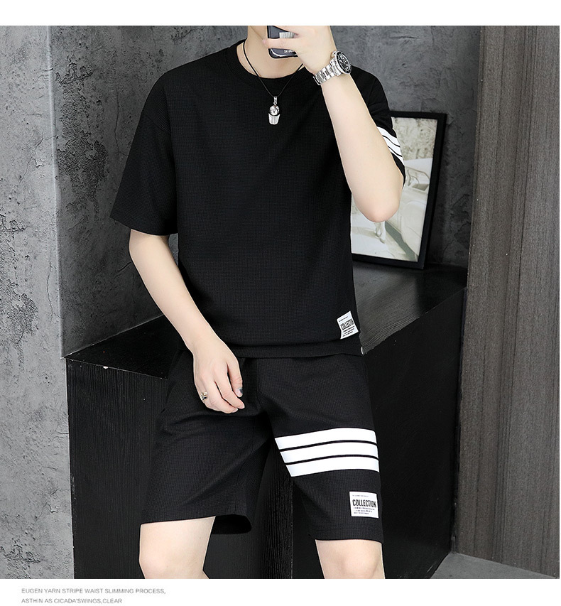 Waffle traje de camiseta de manga corta para hombre 2024 verano de tres barras pantalones cortos casuales de manga corta de dos piezas al por mayor