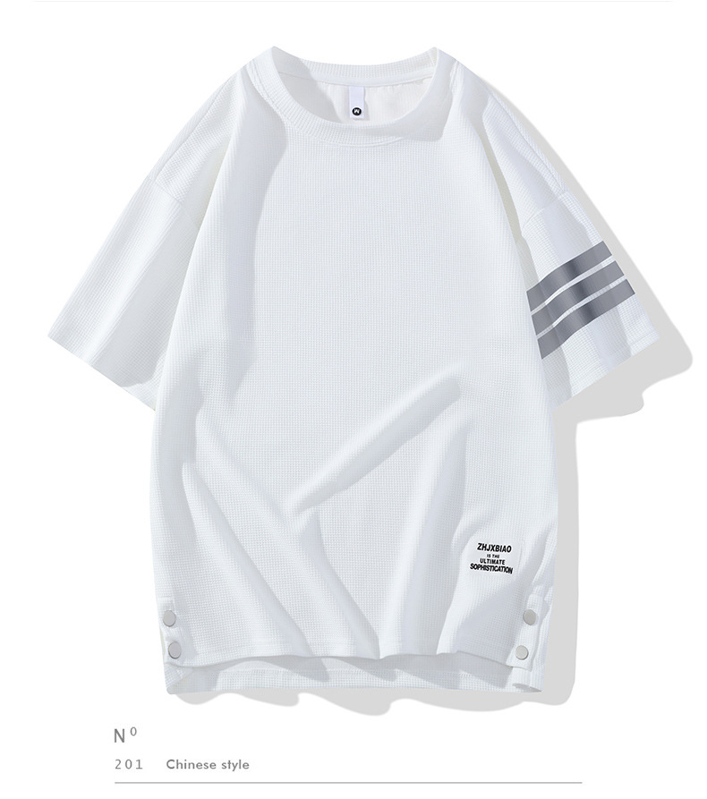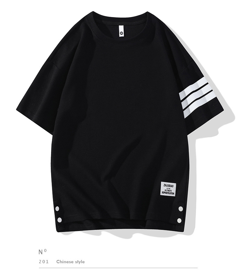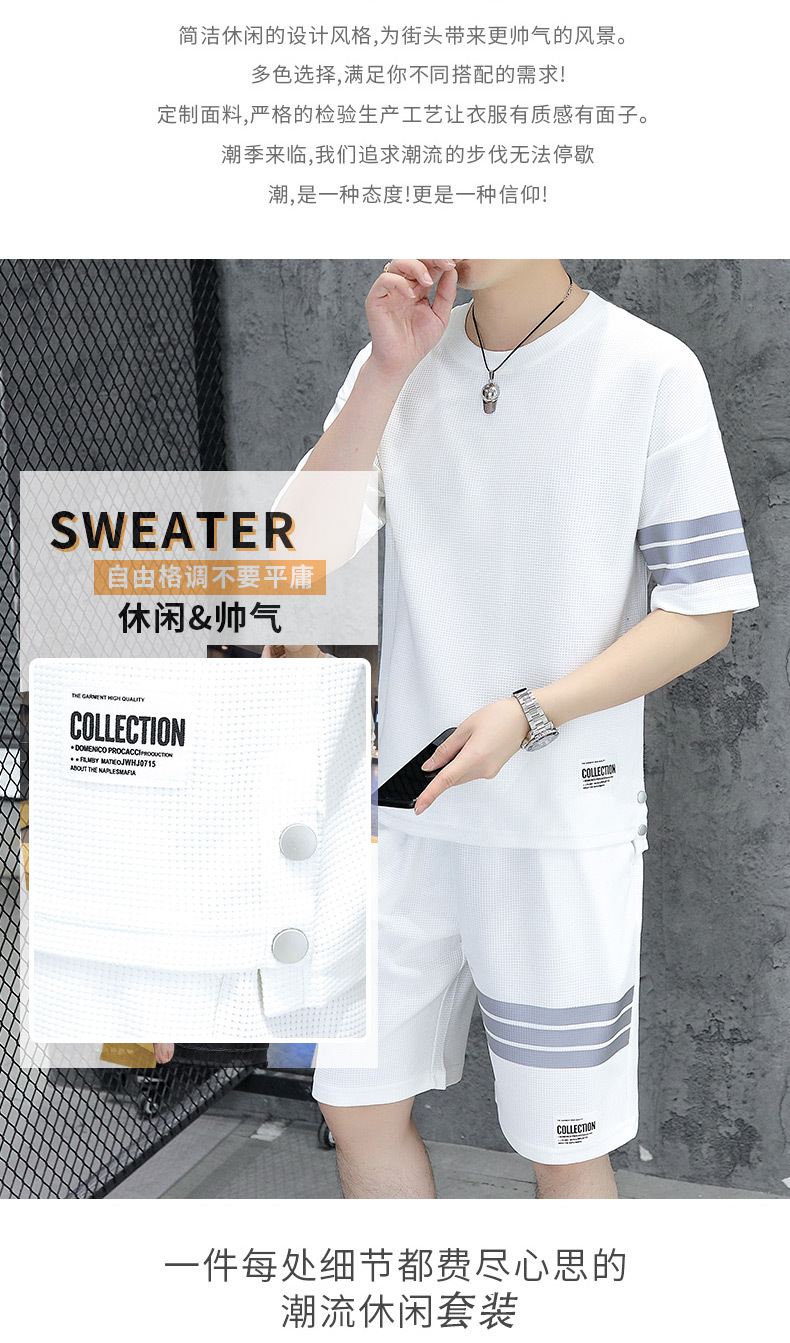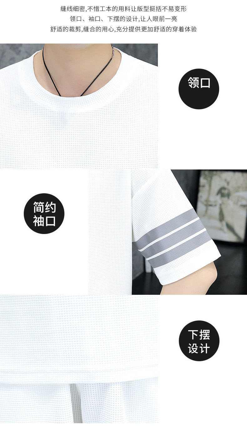 Waffle traje de camiseta de manga corta para hombre 2024 verano de tres barras pantalones cortos casuales de manga corta de dos piezas al por mayor