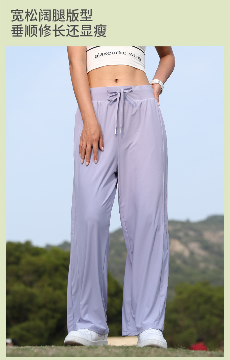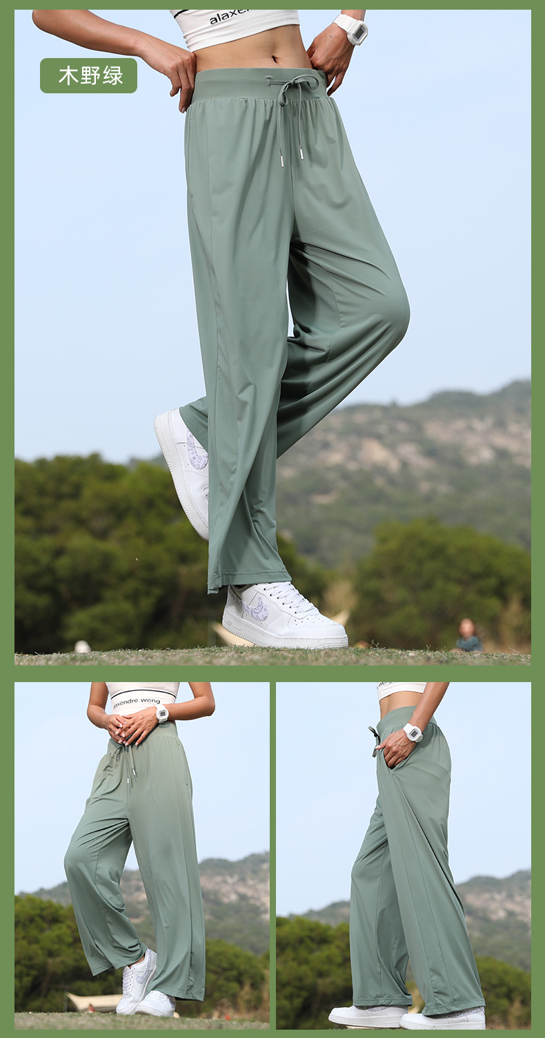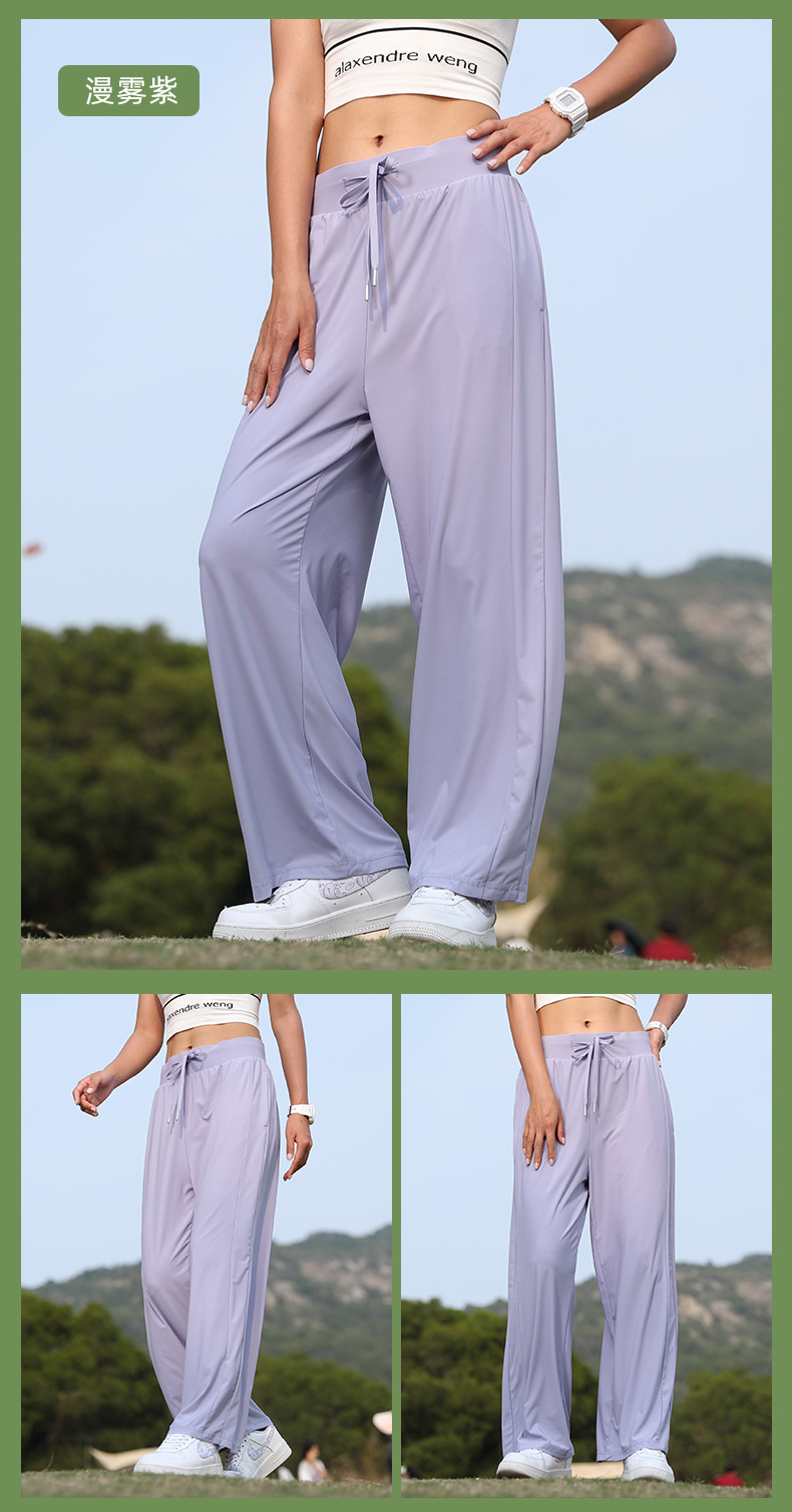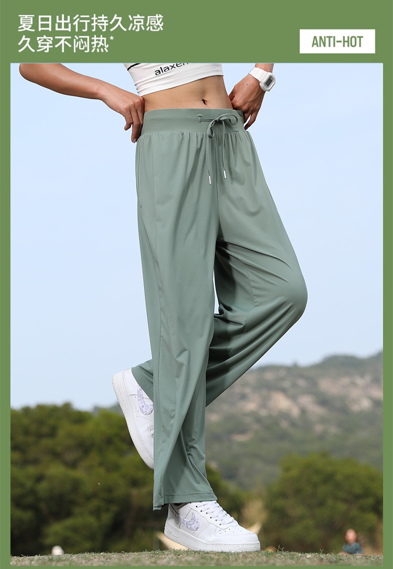 24 años de verano pantalones de seda de hielo para hombres y mujeres de color sólido pareja deportiva de secado rápido frío de alta elasticidad de urdimbre caída pantalones casuales