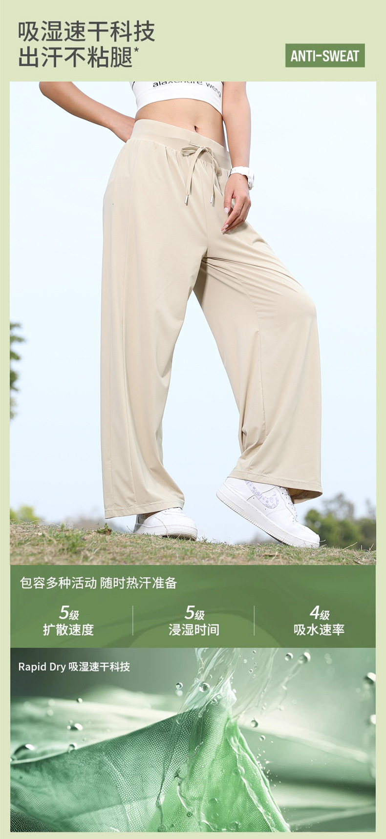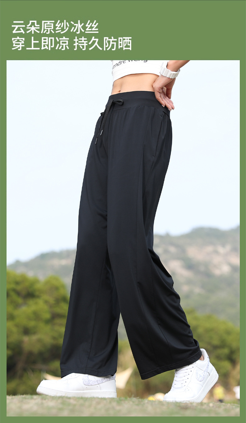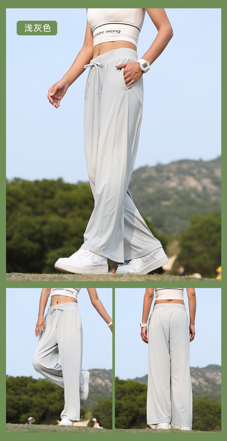 24 años de verano pantalones de seda de hielo para hombres y mujeres de color sólido pareja deportiva de secado rápido frío de alta elasticidad de urdimbre caída pantalones casuales