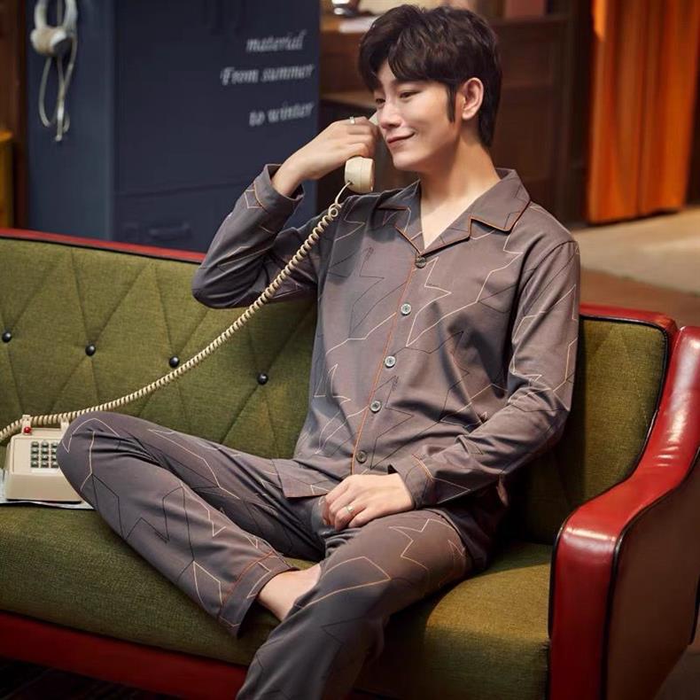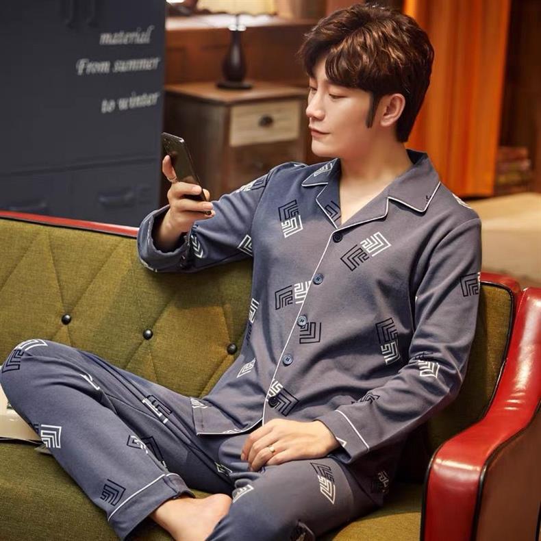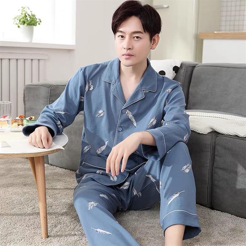Pijamas de algodón para hombres primavera y otoño nuevos pantalones de manga larga primavera y otoño para hombres pijamas de tamaño grande set de ropa de casa para salir