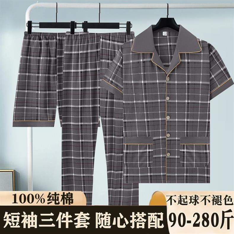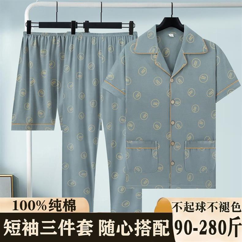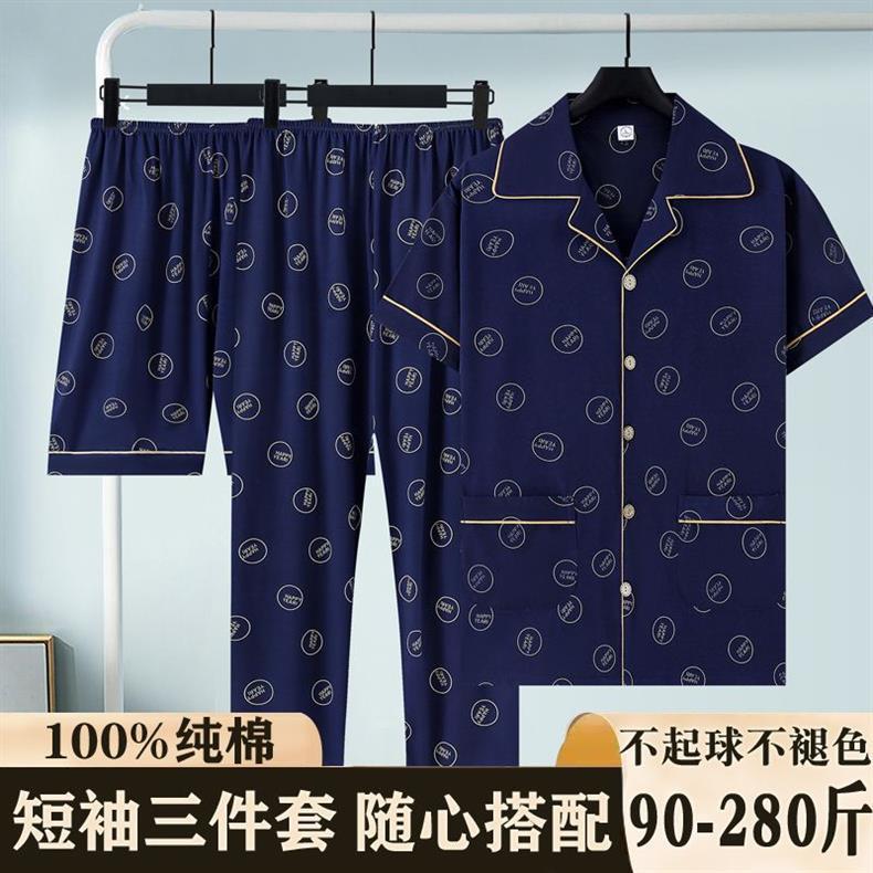 Primavera y verano de algodón de tres piezas, pijamas para hombres, pantalones cortos de mangas cortas, pantalones cortos
