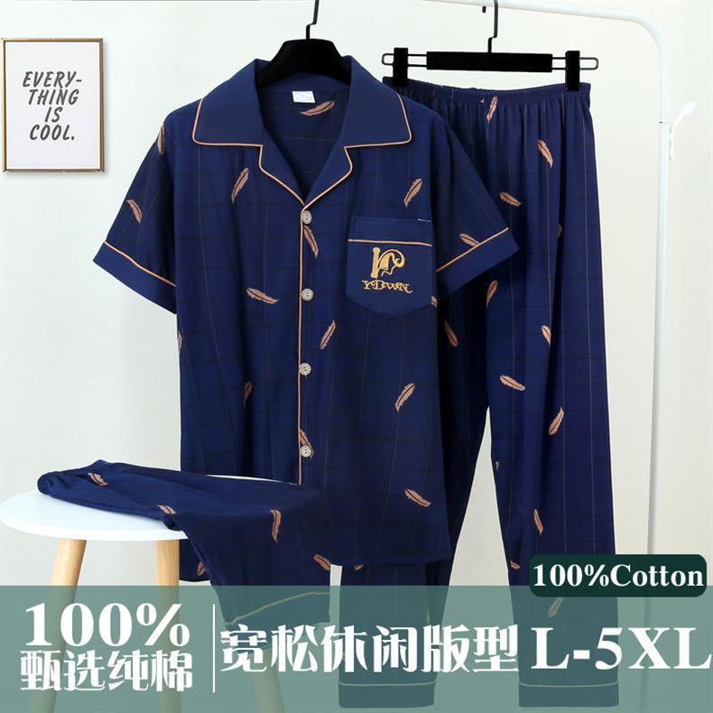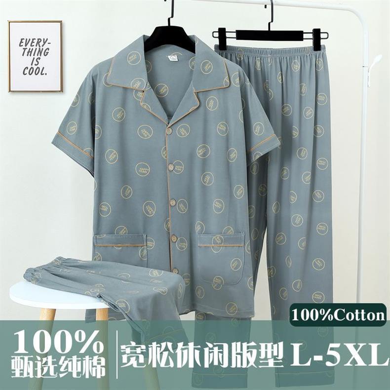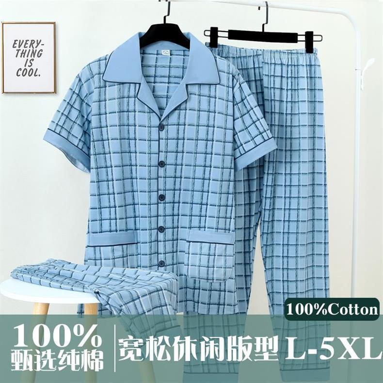 Pajamas de hombre de algodón de tres piezas, pantalones largos de manga corta de verano, ropa casera para hombres, set delgado casual