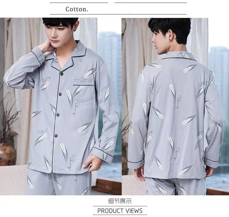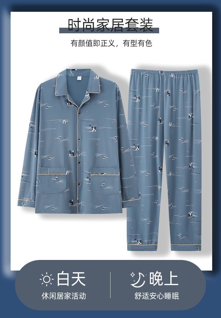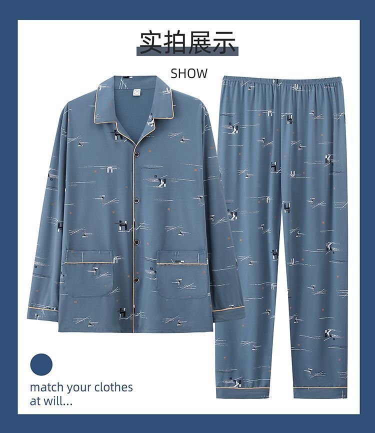 Pijamas de algodón masculinos primavera y otoño delgados pantalones de manga larga, jóvenes de mediana edad y ancianos, cardigans casuales, set de ropa para el hogar, cuatro temporadas