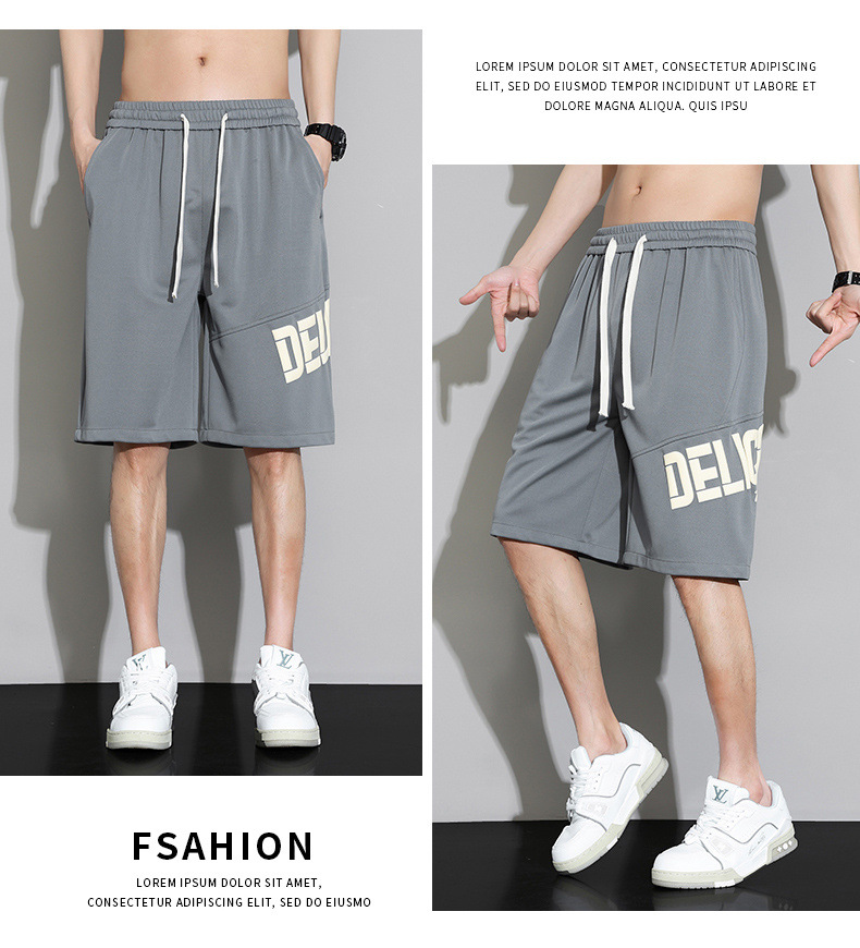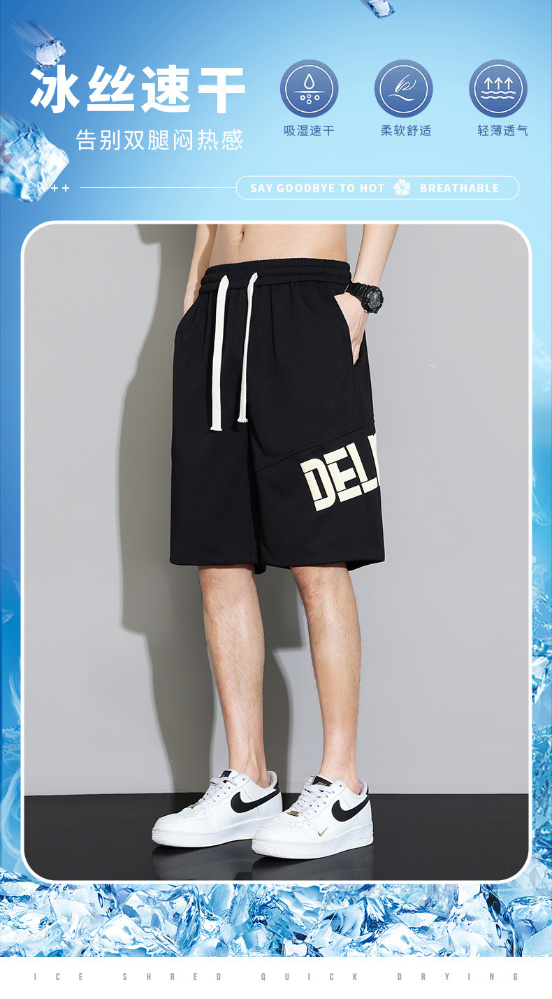 Pantalones cortos casuales para hombres de verano nuevo estilo de moda seda de hielo secado rápido relajado letras rectas deportivas pantalones casuales para hombres