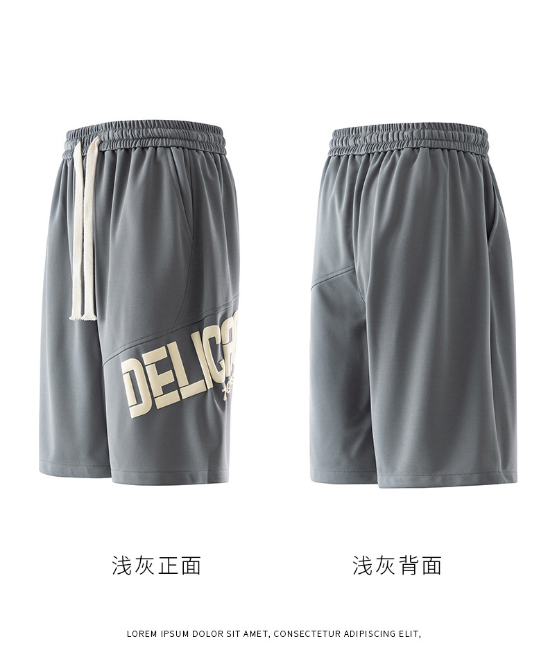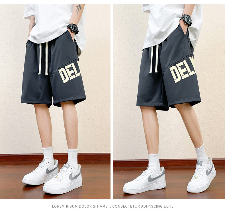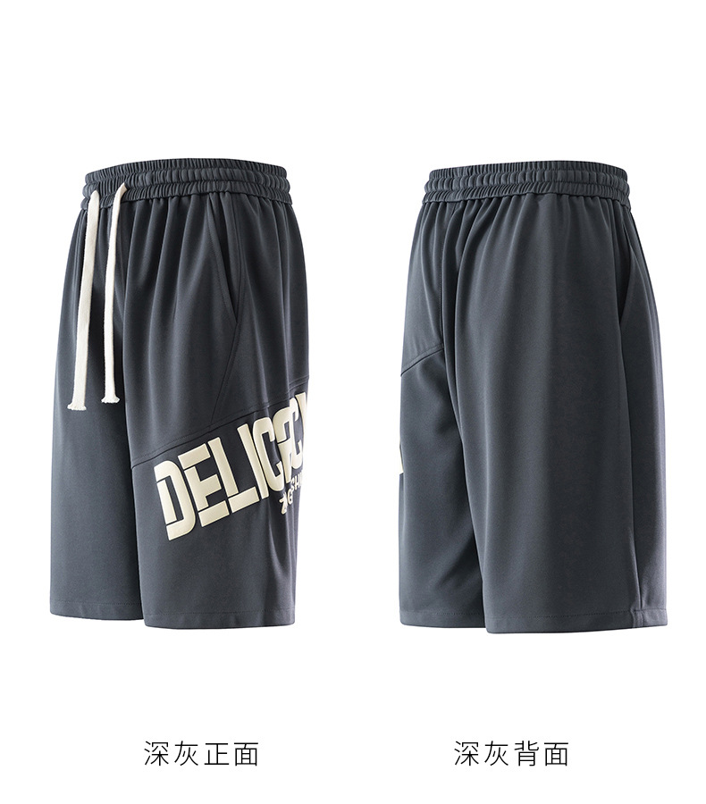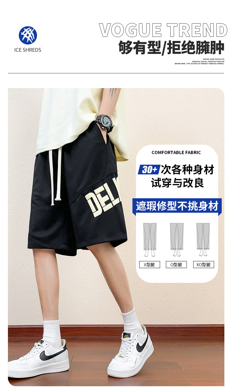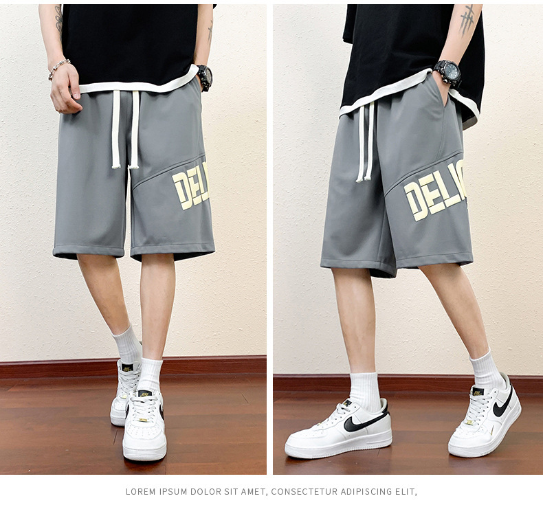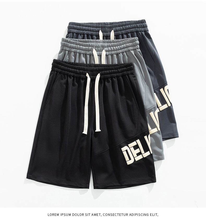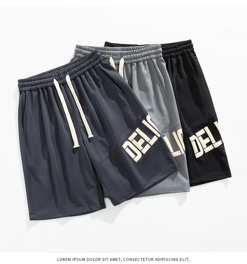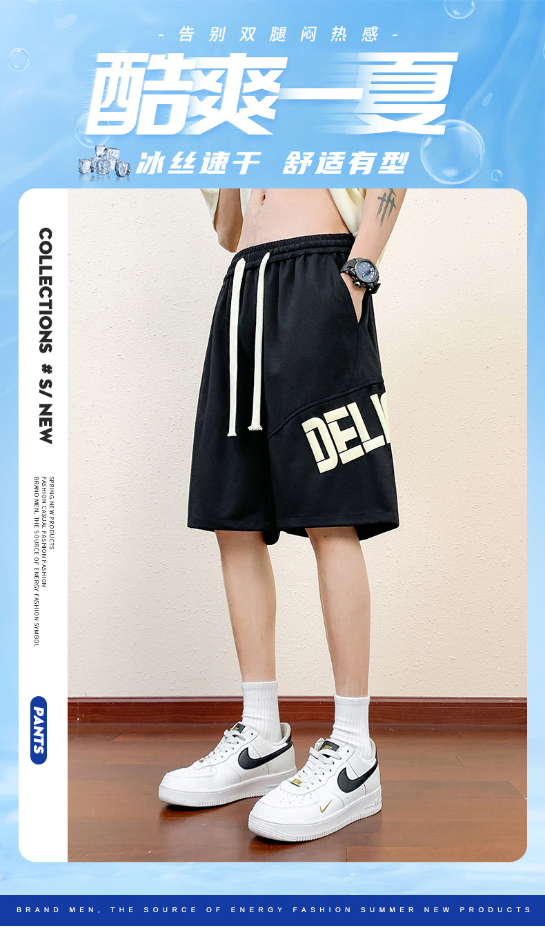 Pantalones cortos deportivos de hielo negro para hombres verano 2024 nueva marca de moda americana suelta rápida secado recto pantalones casuales de cinco puntos