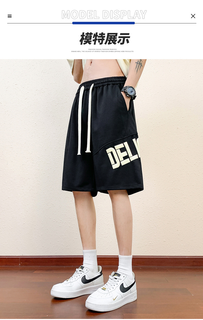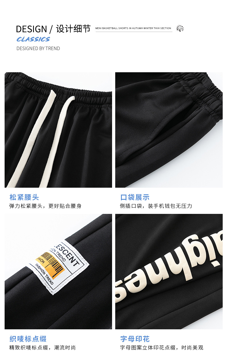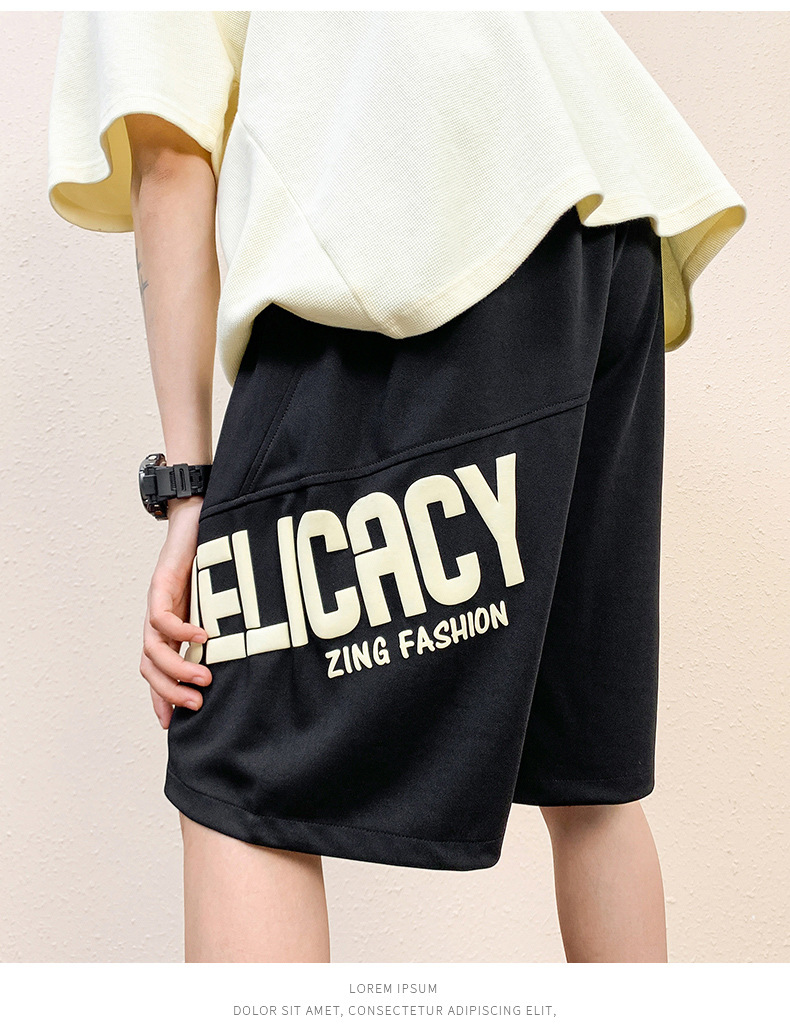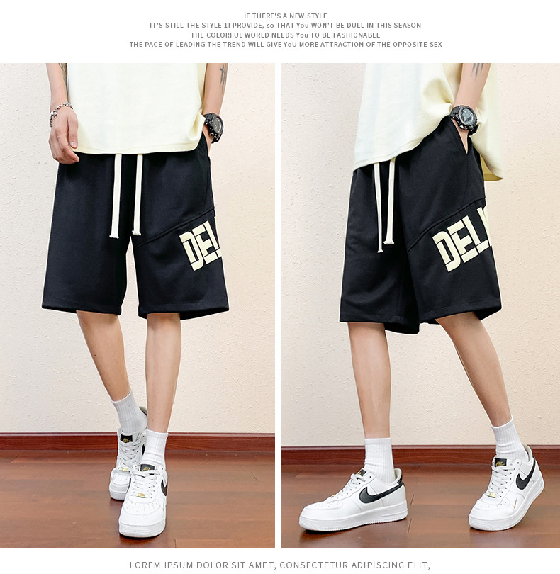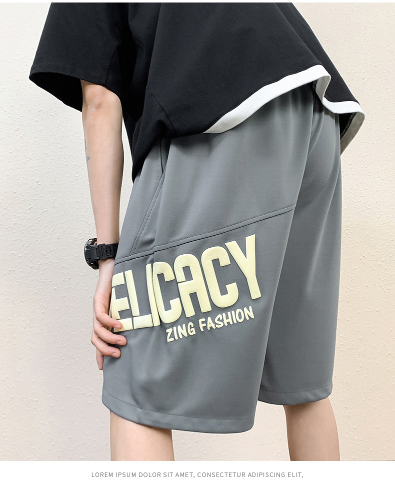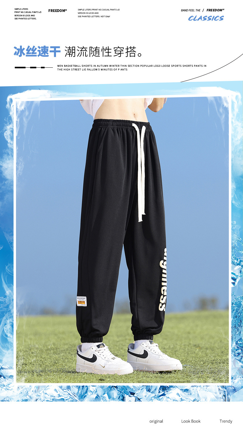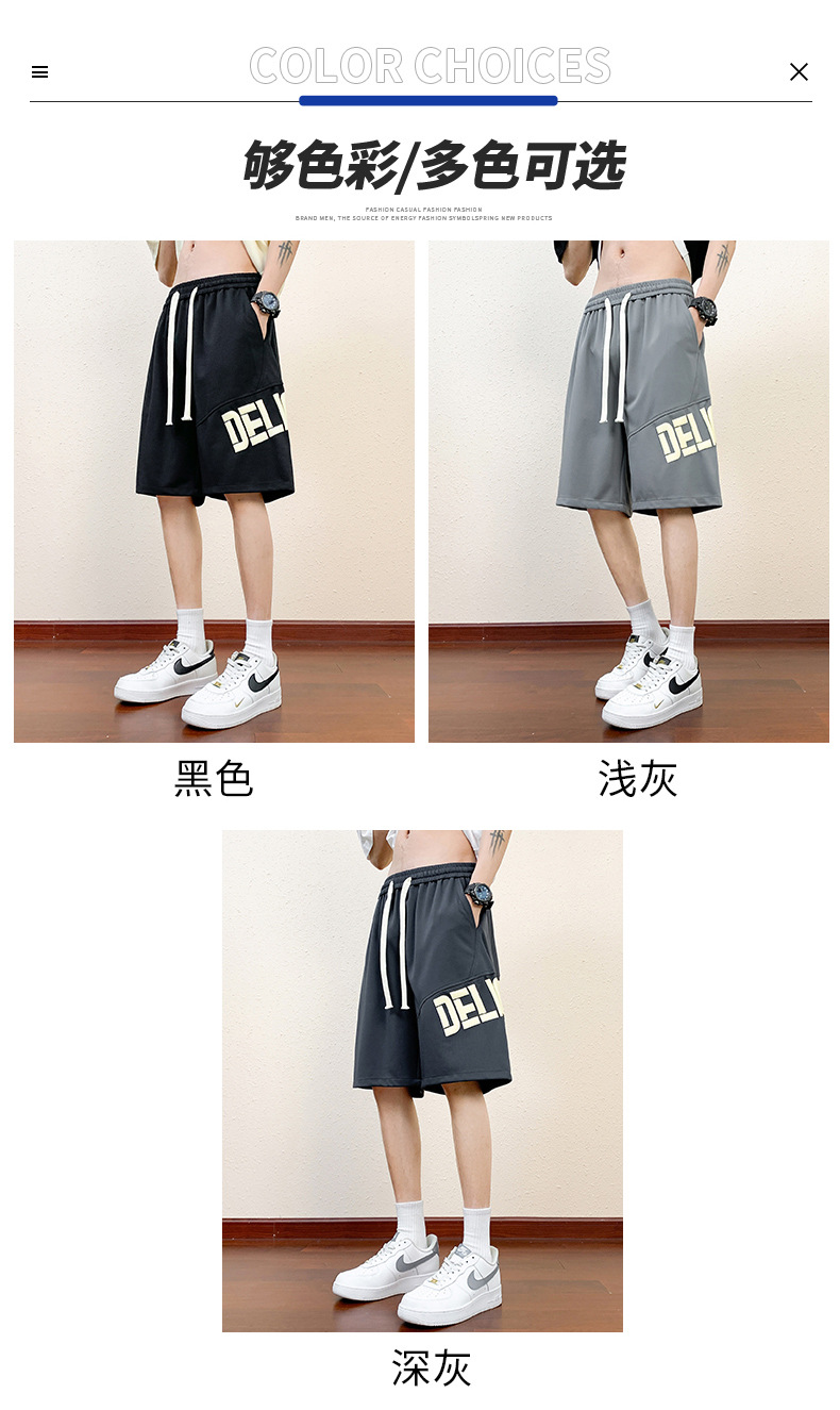 Pantalones cortos deportivos de hielo negro para hombres verano 2024 nueva marca de moda americana suelta rápida secado recto pantalones casuales de cinco puntos